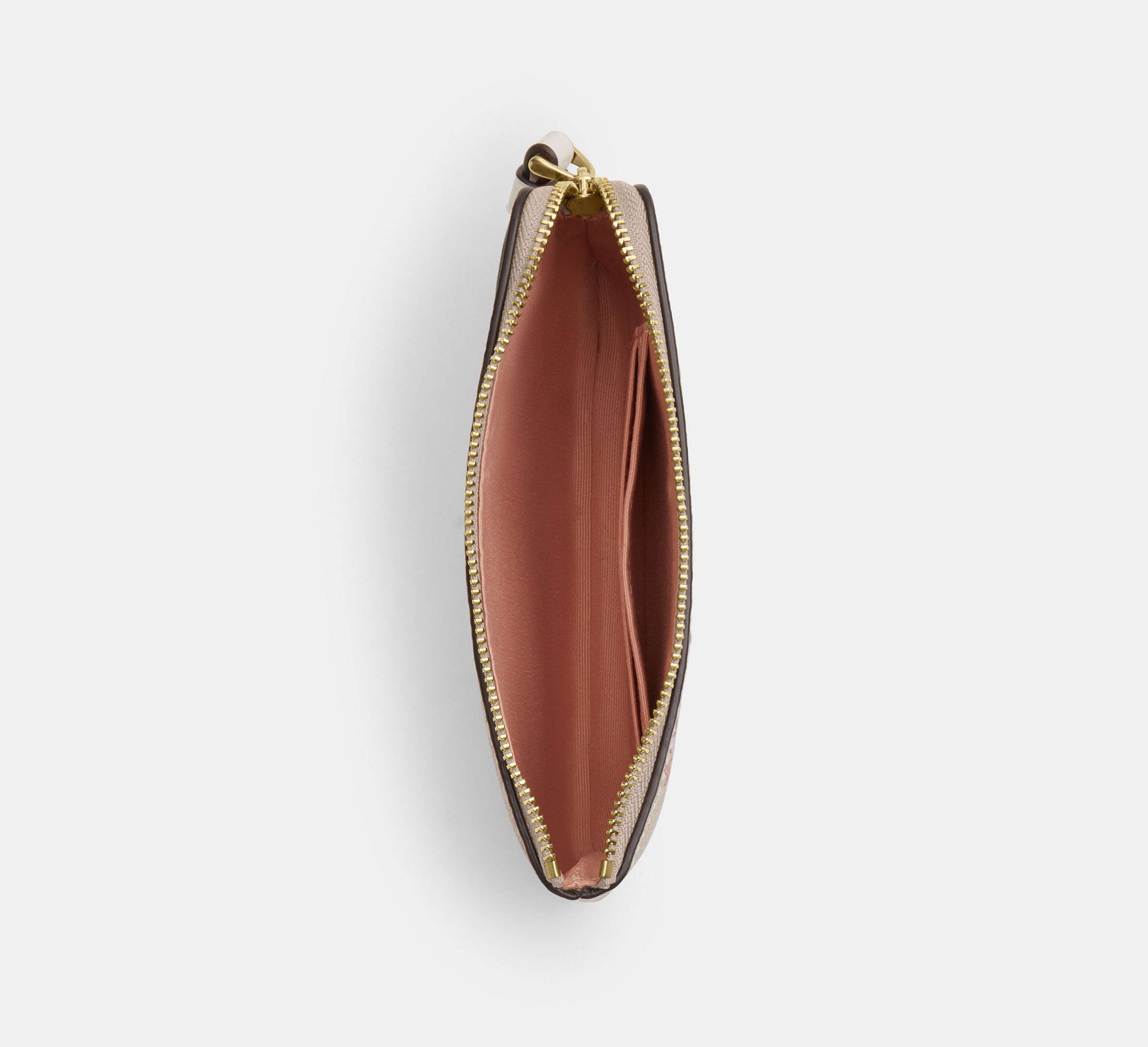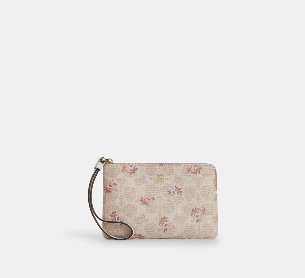 Coach Corner Zip Wristlet In Signature With Floral Print - Gold/Sand Multi