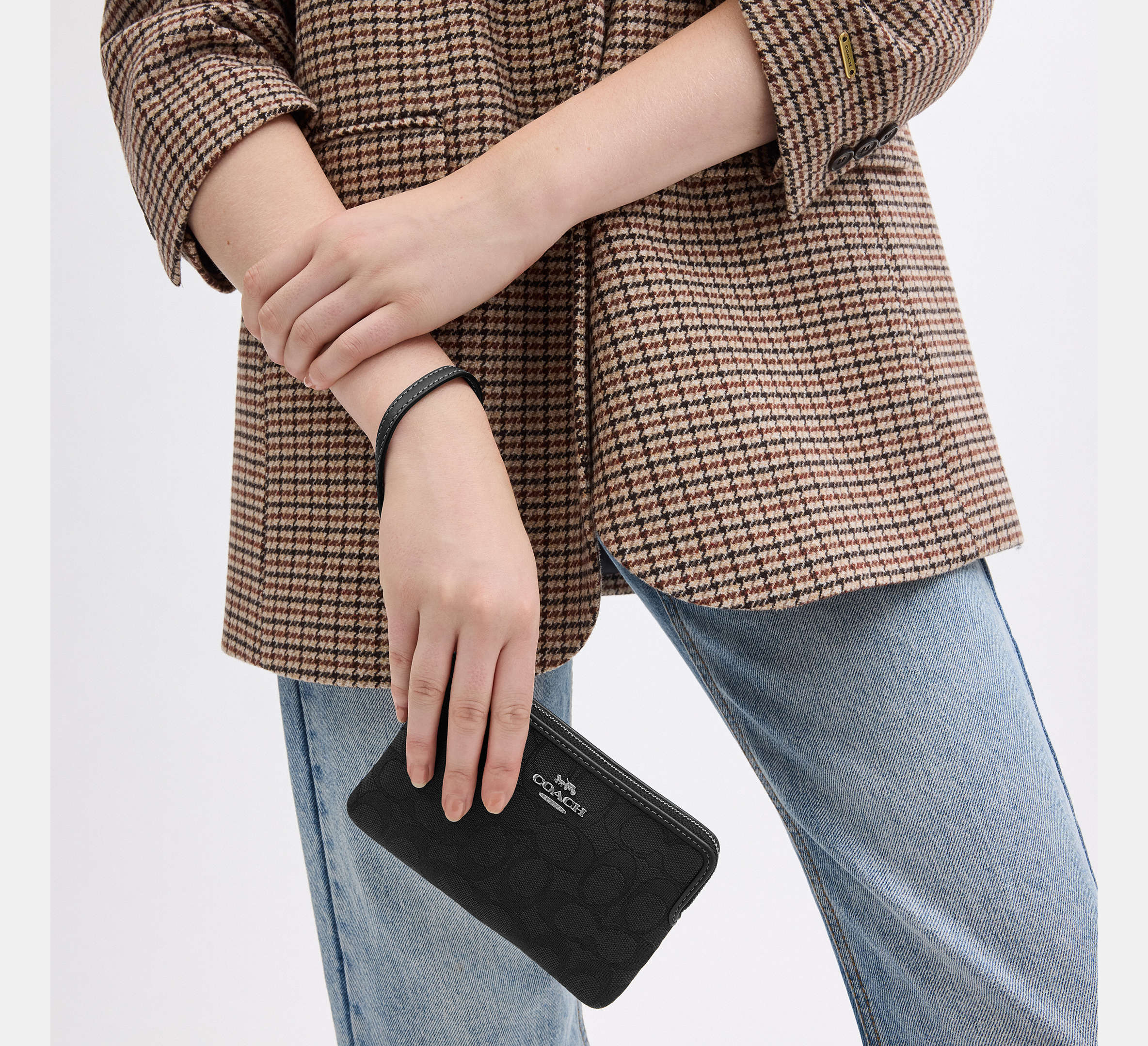 Coach Corner Zip Wristlet In Signature Jacquard - Silver/Black