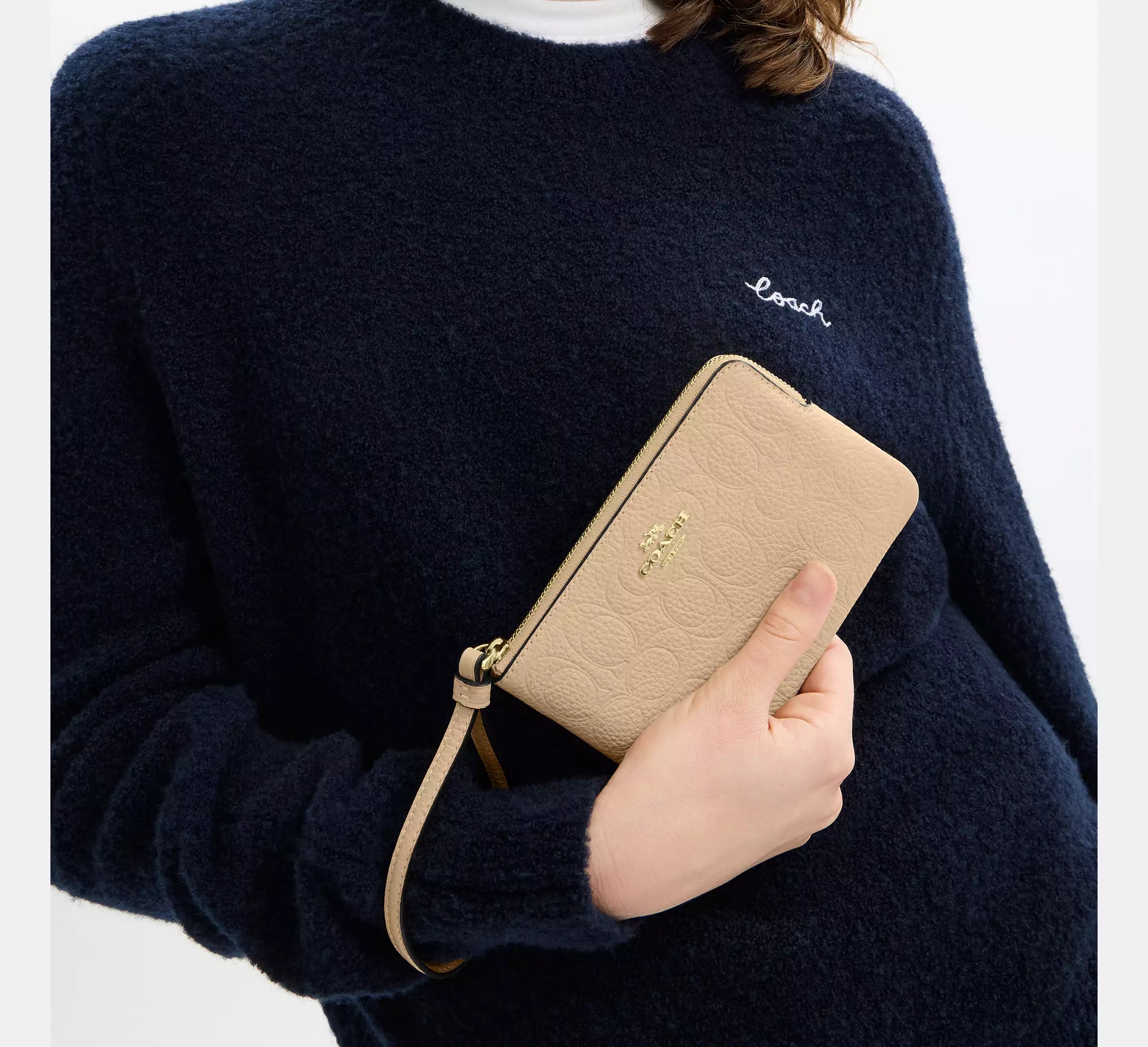 Coach Corner Zip Wristlet In Signature Leather - Im/Oat