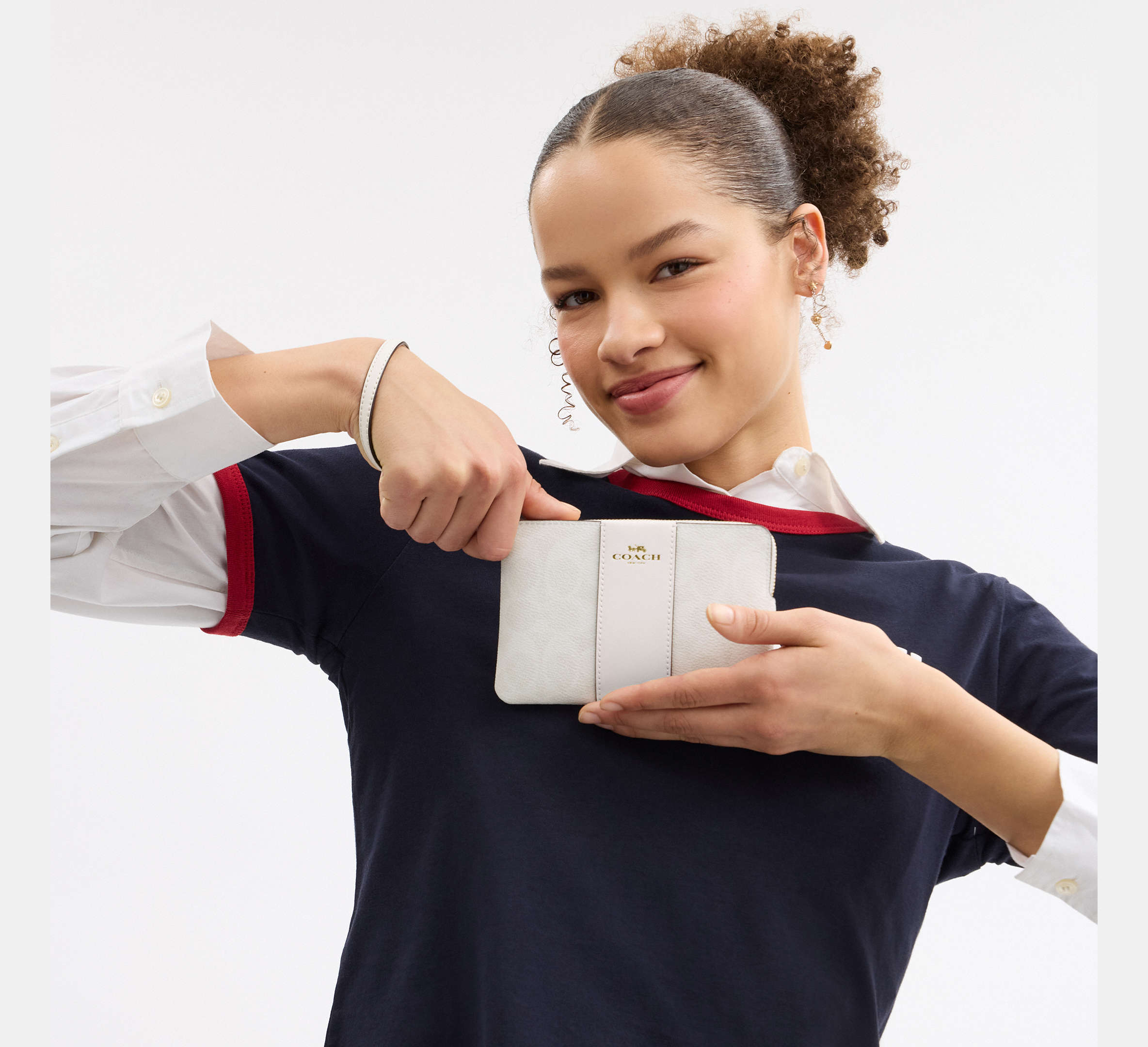 Coach Corner Zip Wristlet In Signature With Stripe - Gold/White/Chalk