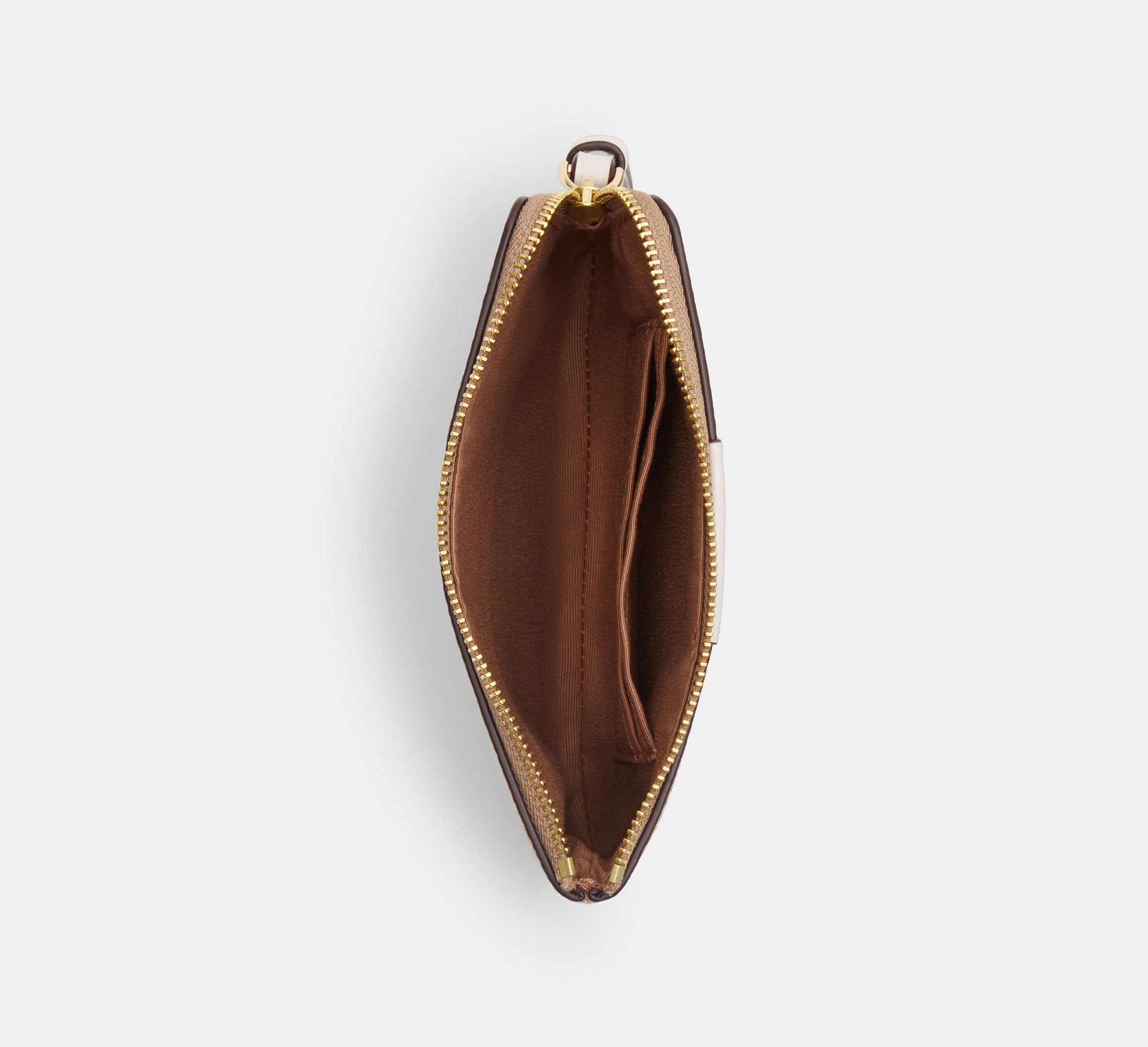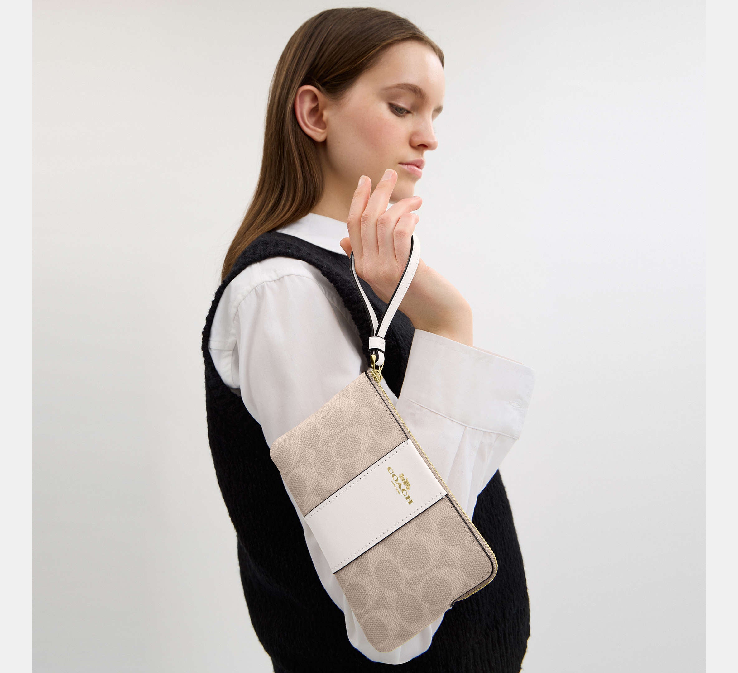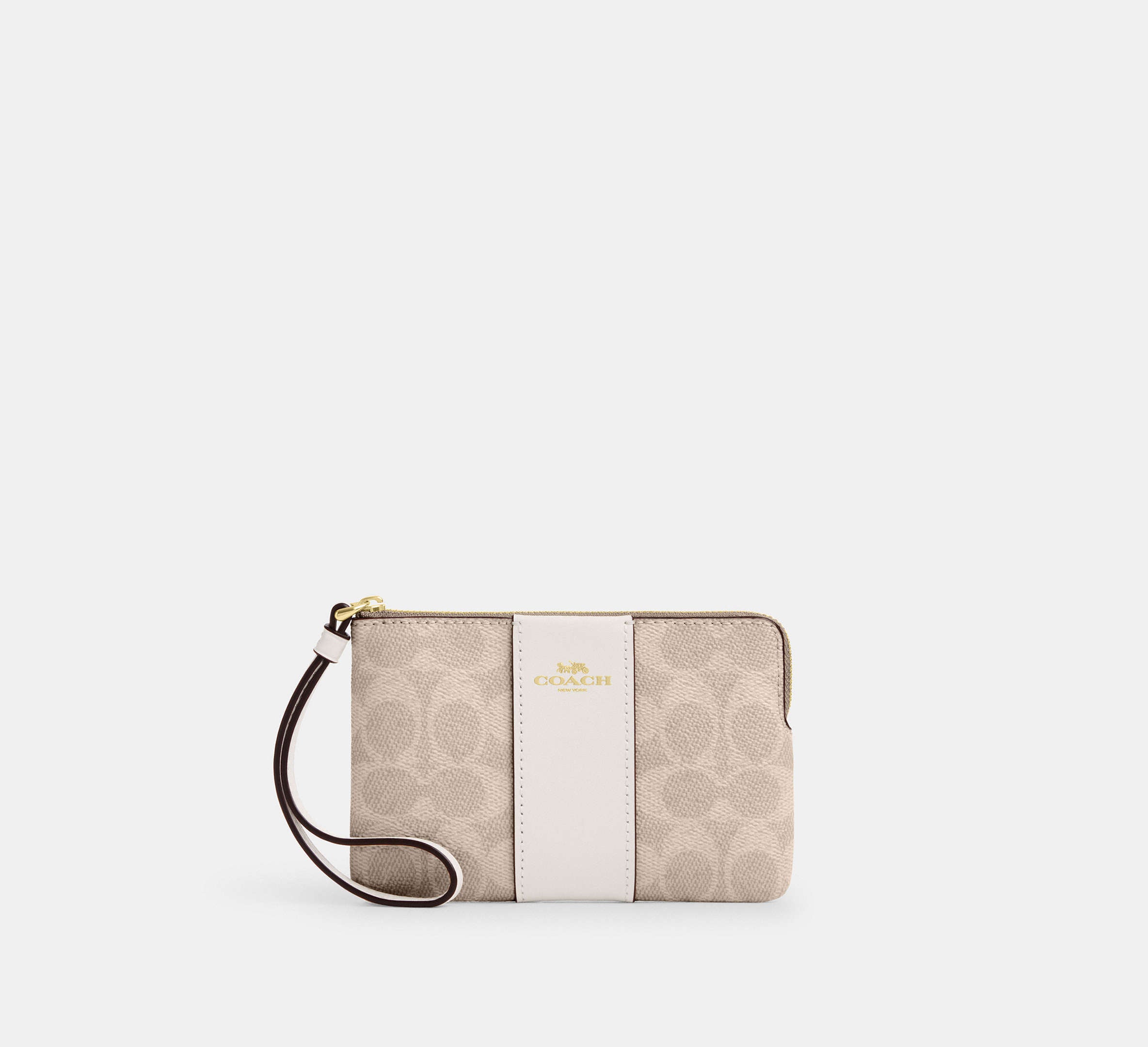 Coach Corner Zip Wristlet In Signature With Stripe - Gold/Sand/Chalk