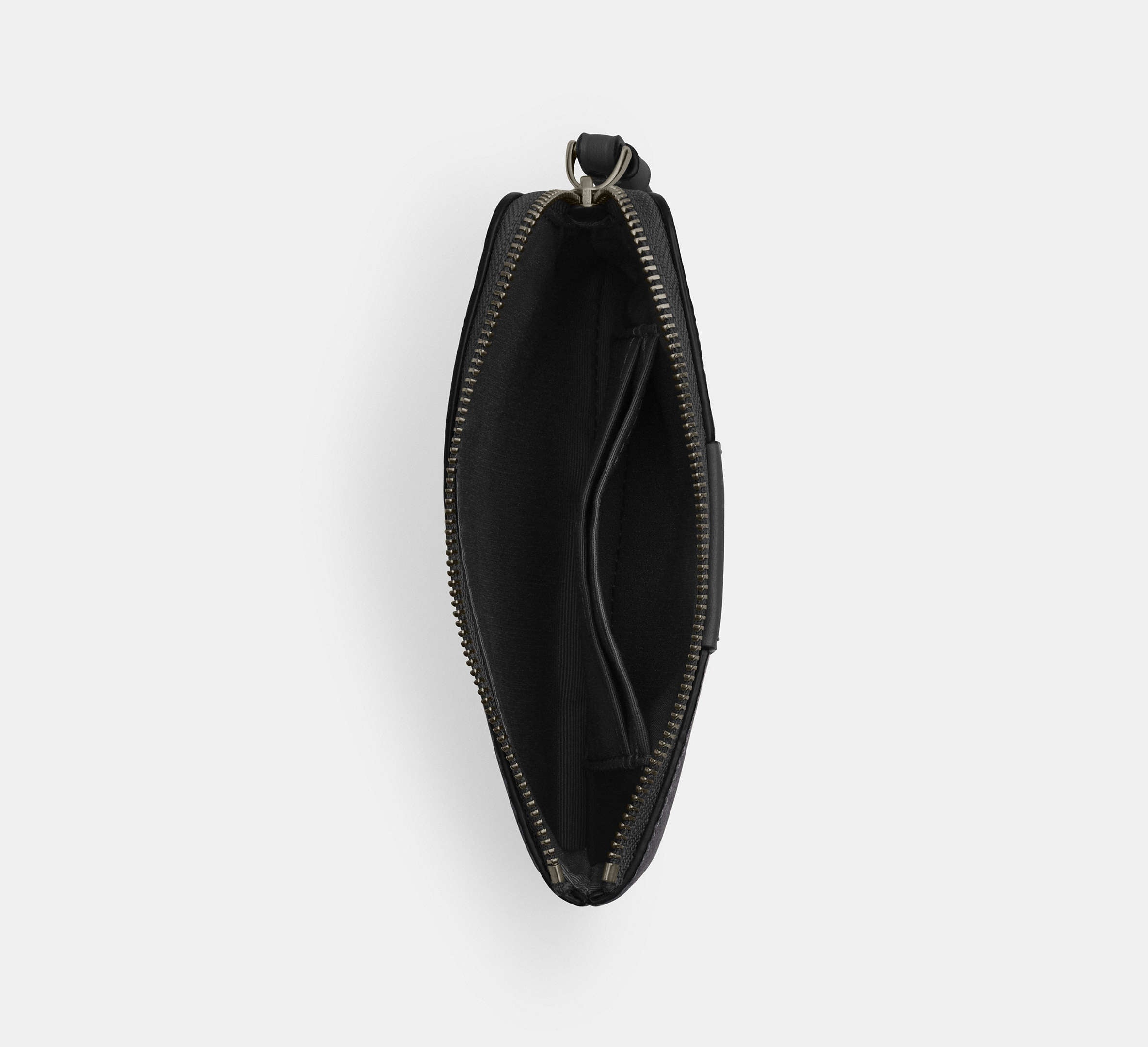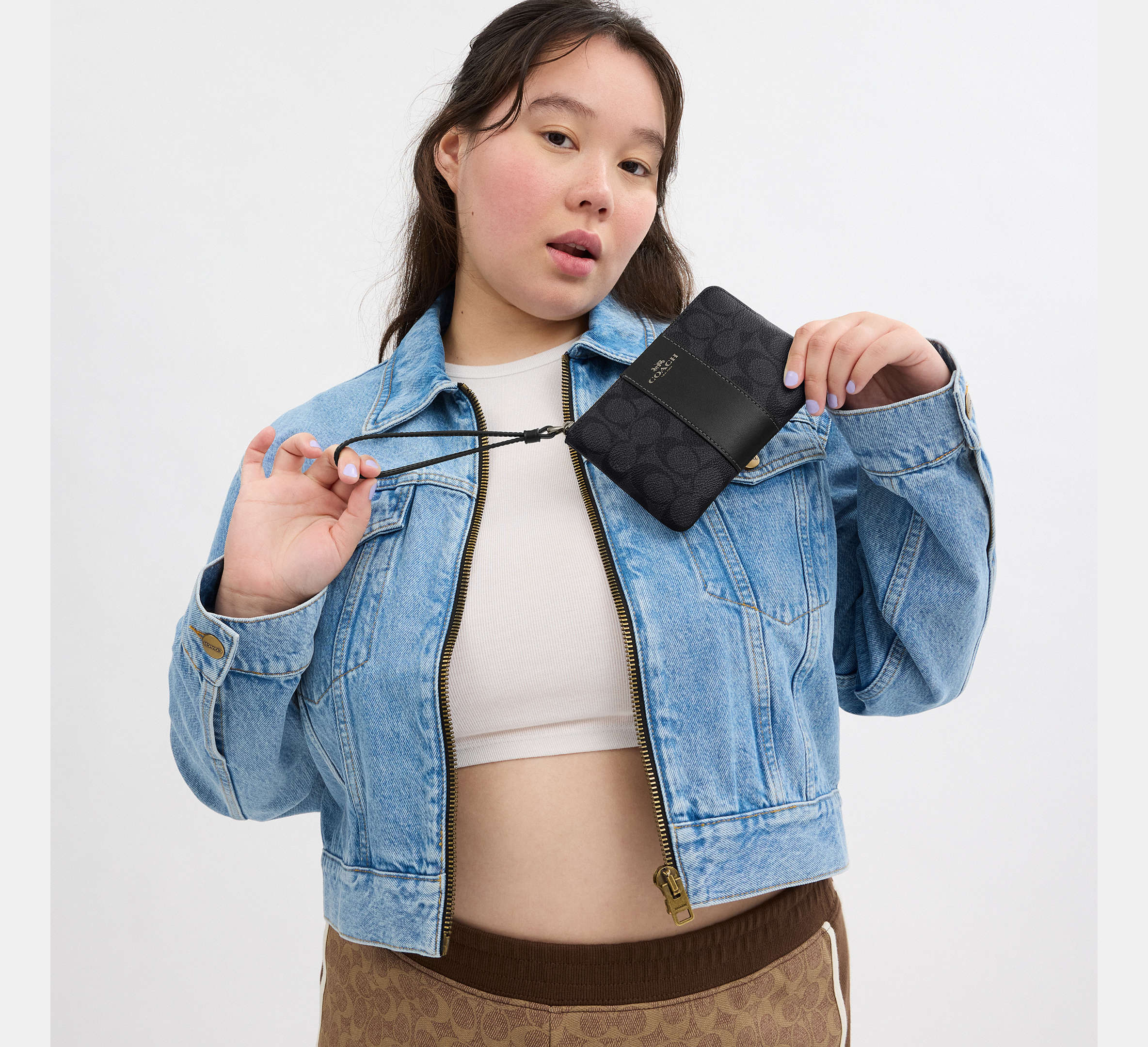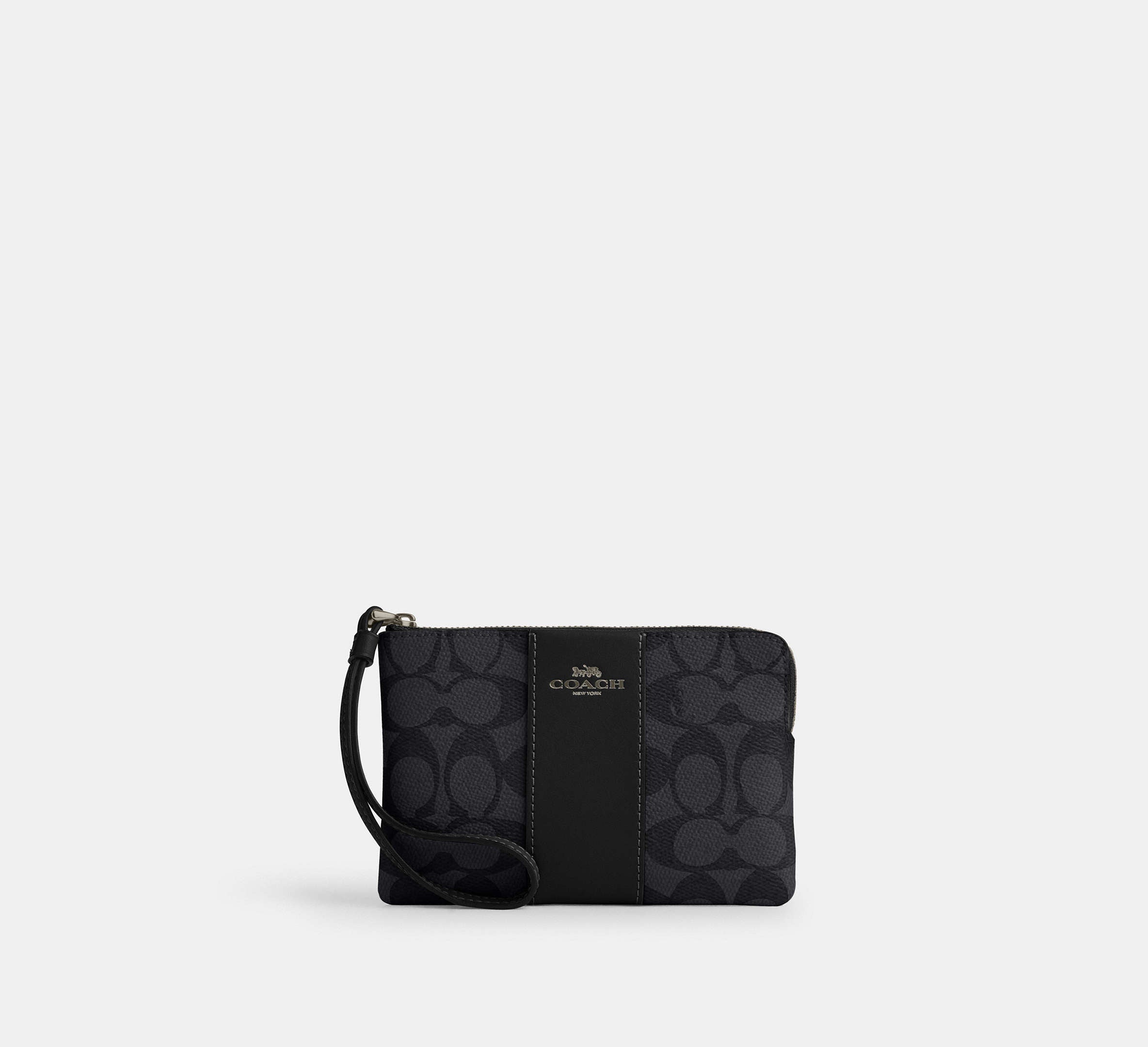 Coach Corner Zip Wristlet In Signature With Stripe - Gunmetal/Charcoal/Black