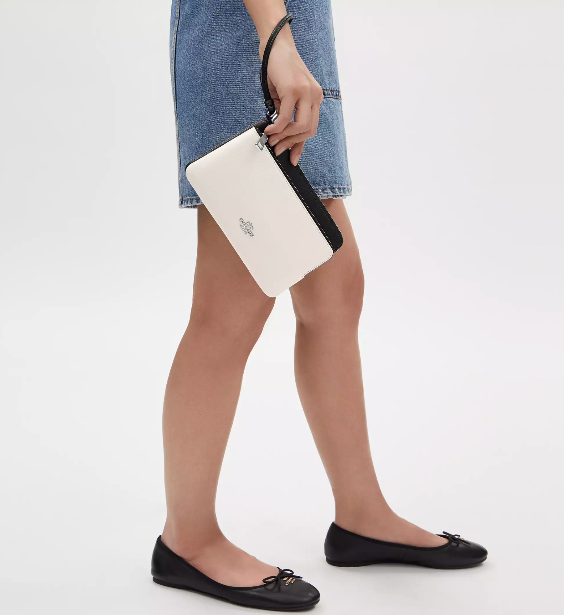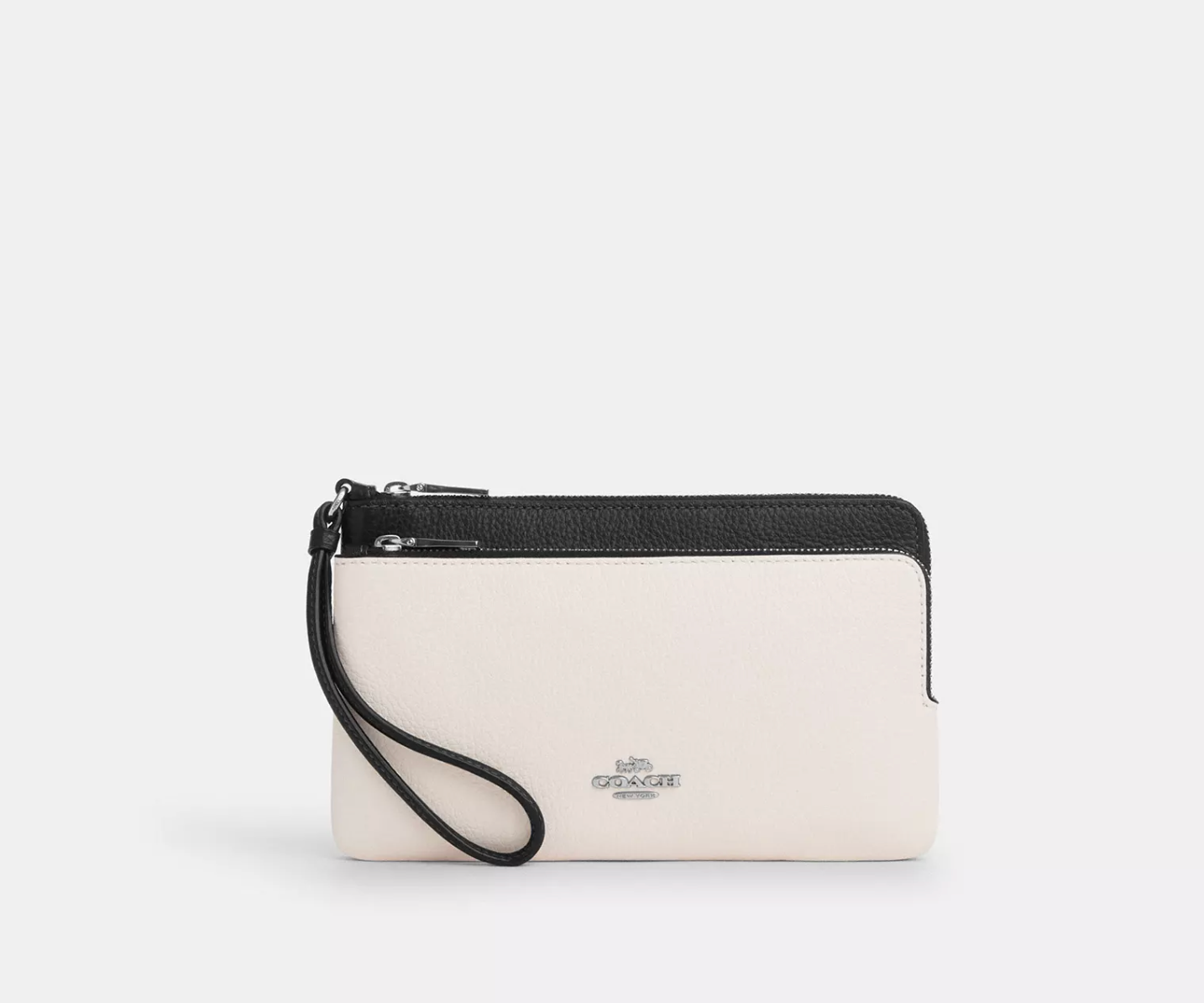 Coach Double Zip Wallet - Silver/Chalk Black Multi