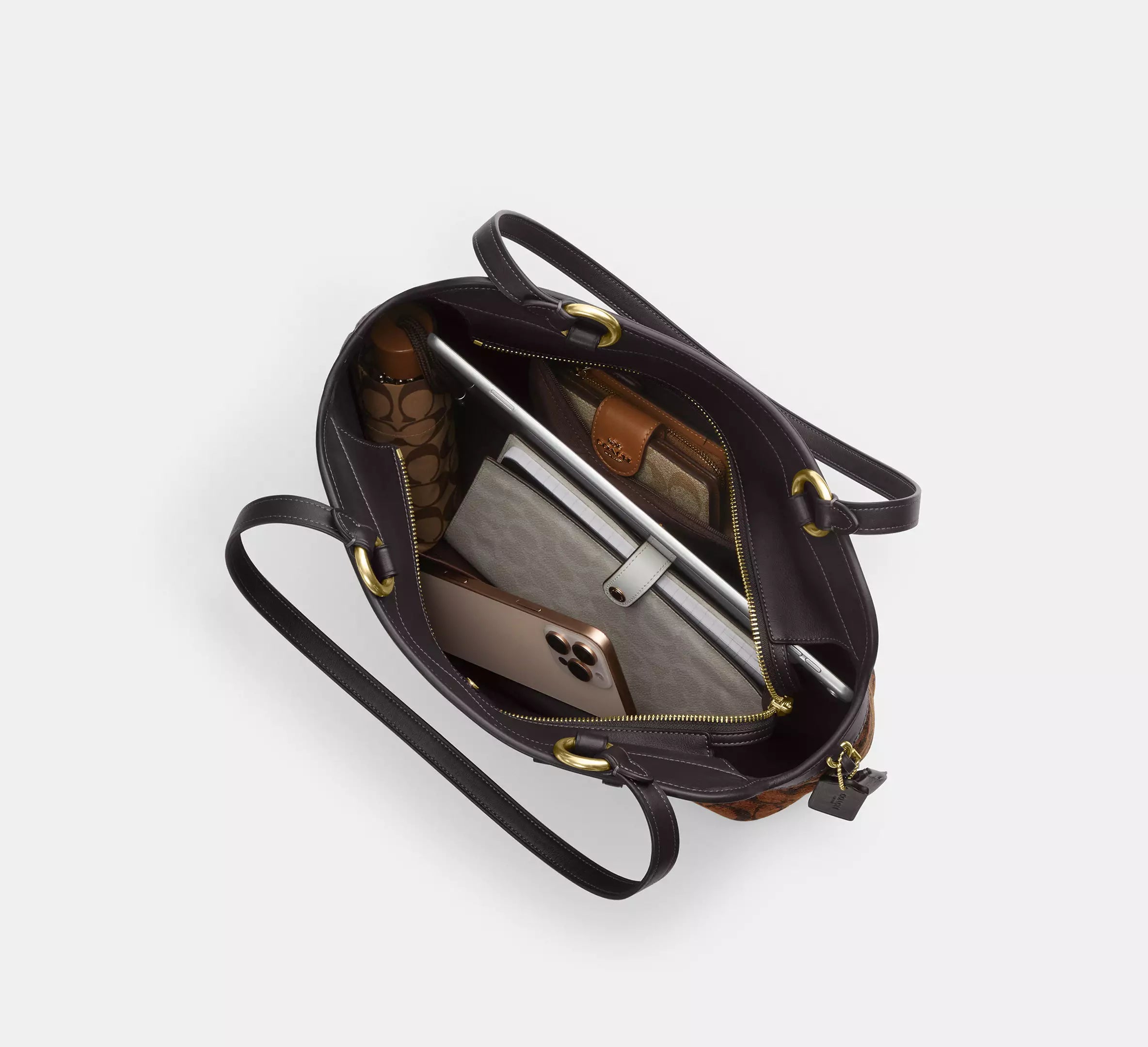 Coach Easton Tote Bag In Signature Chenille - Gold/Truffle