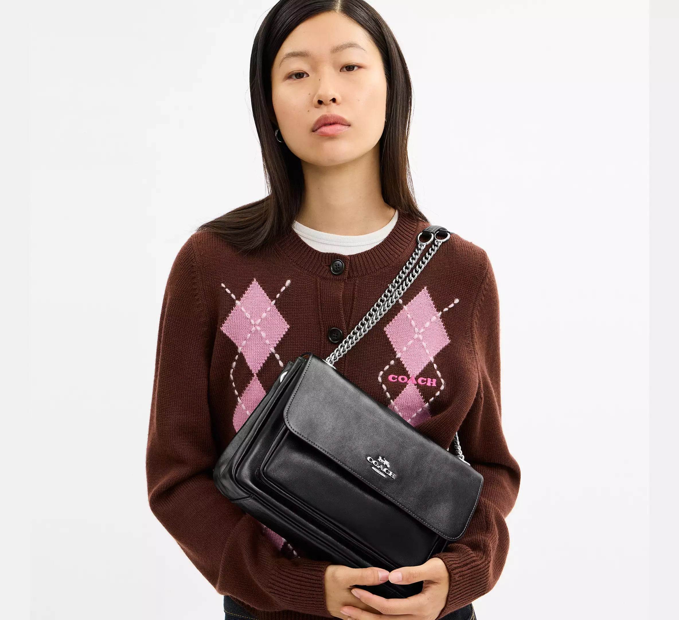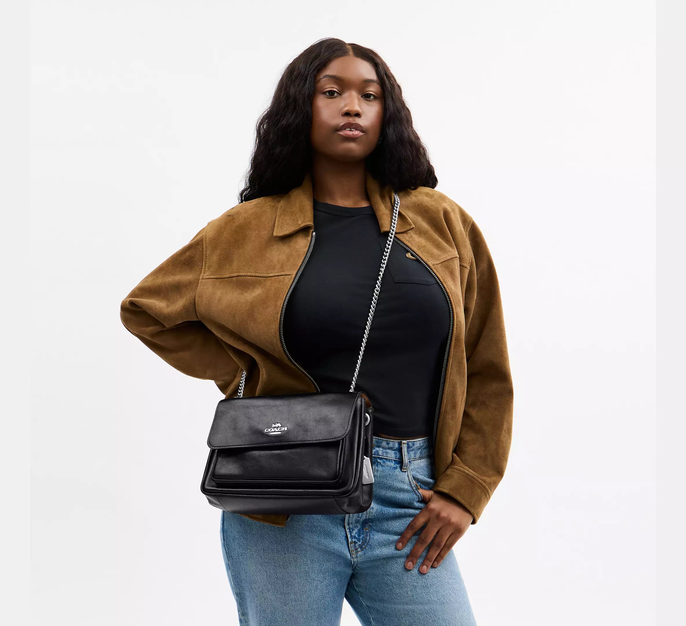 • Zincir askı, omuzda veya çapraz kullanım için 52.71 cm uzunluğunda (askı düşüşü)
