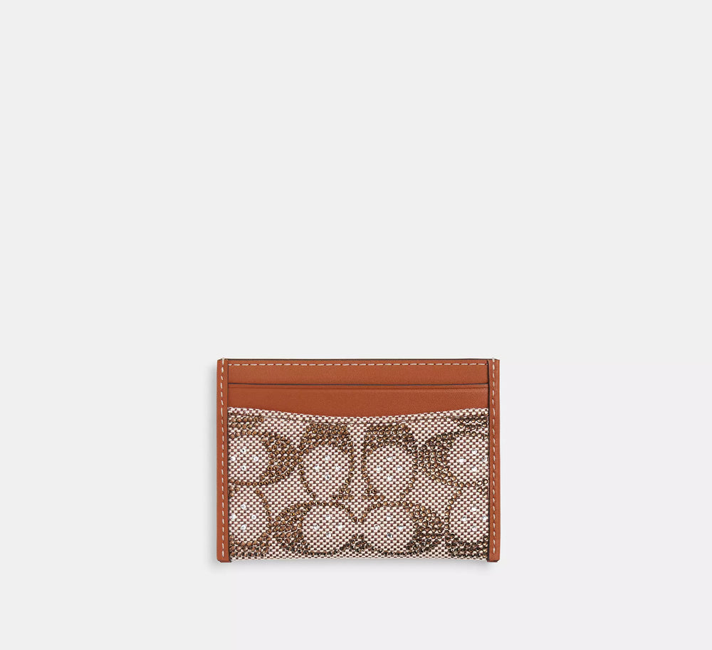 Coach Essential Card Case In Crystal Signature Jacquard - Silver/Burnished Amber