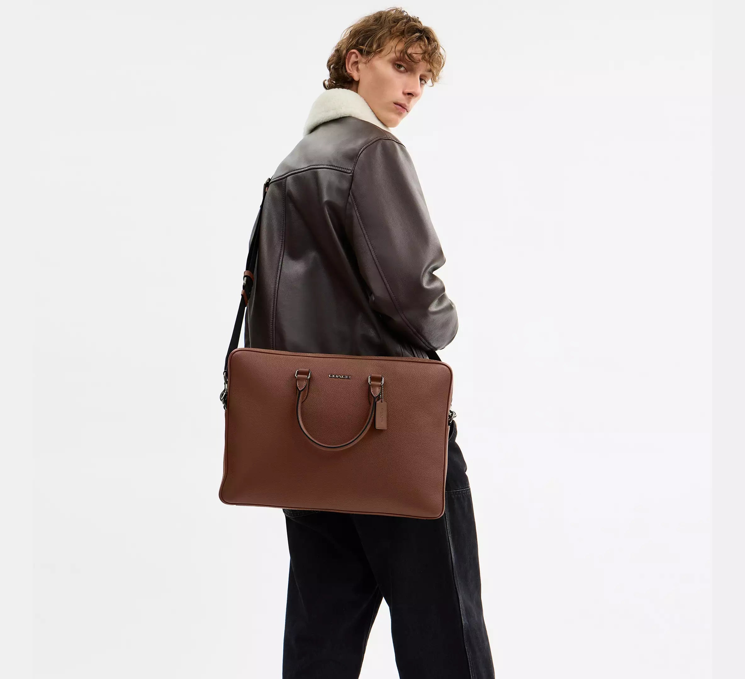 Coach Ethan Large Brief - Gunmetal/Saddle