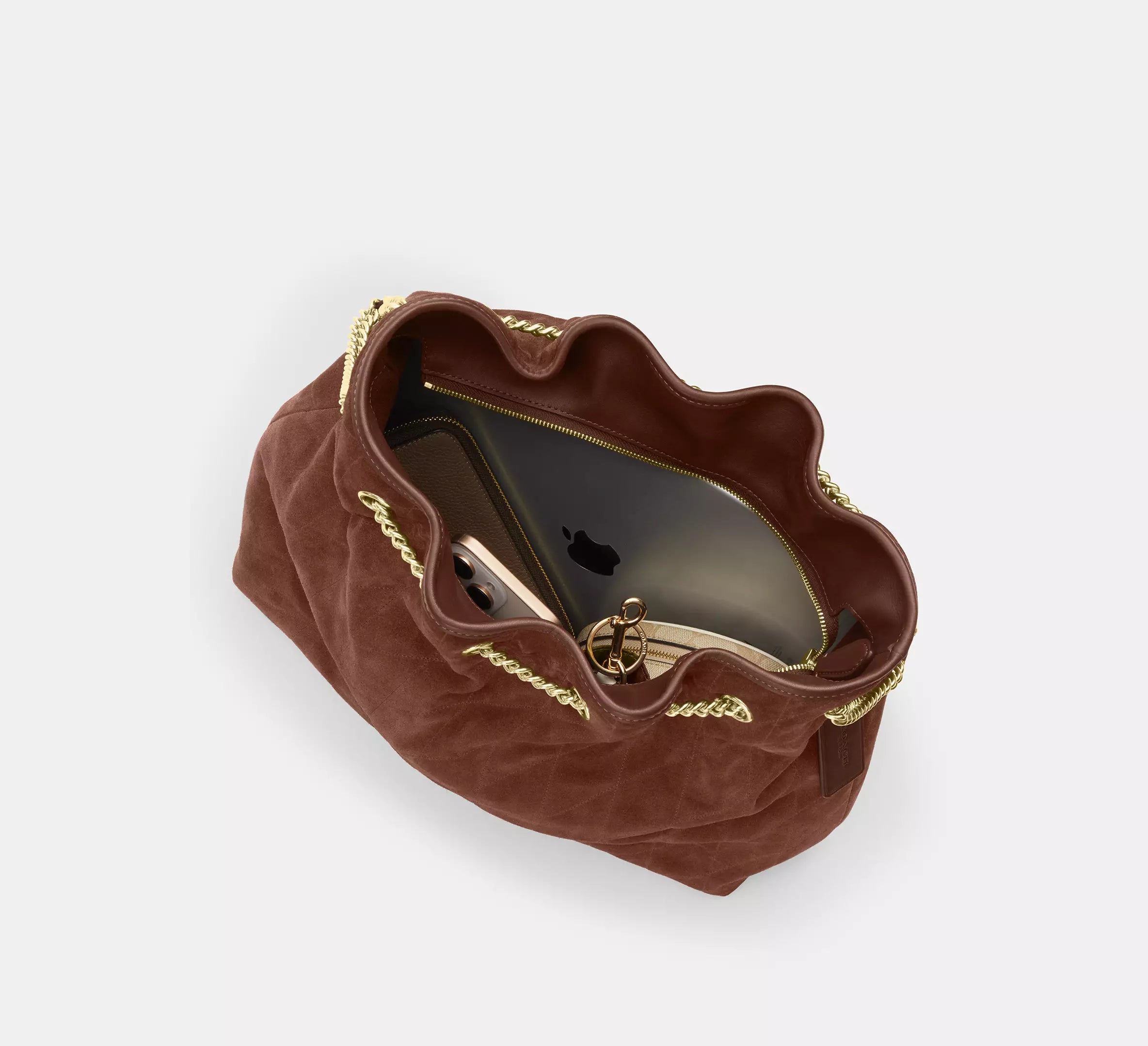 Coach Evelyn Large Shoulder Bag With Quilting - Gold/Vintage Brown/Maple