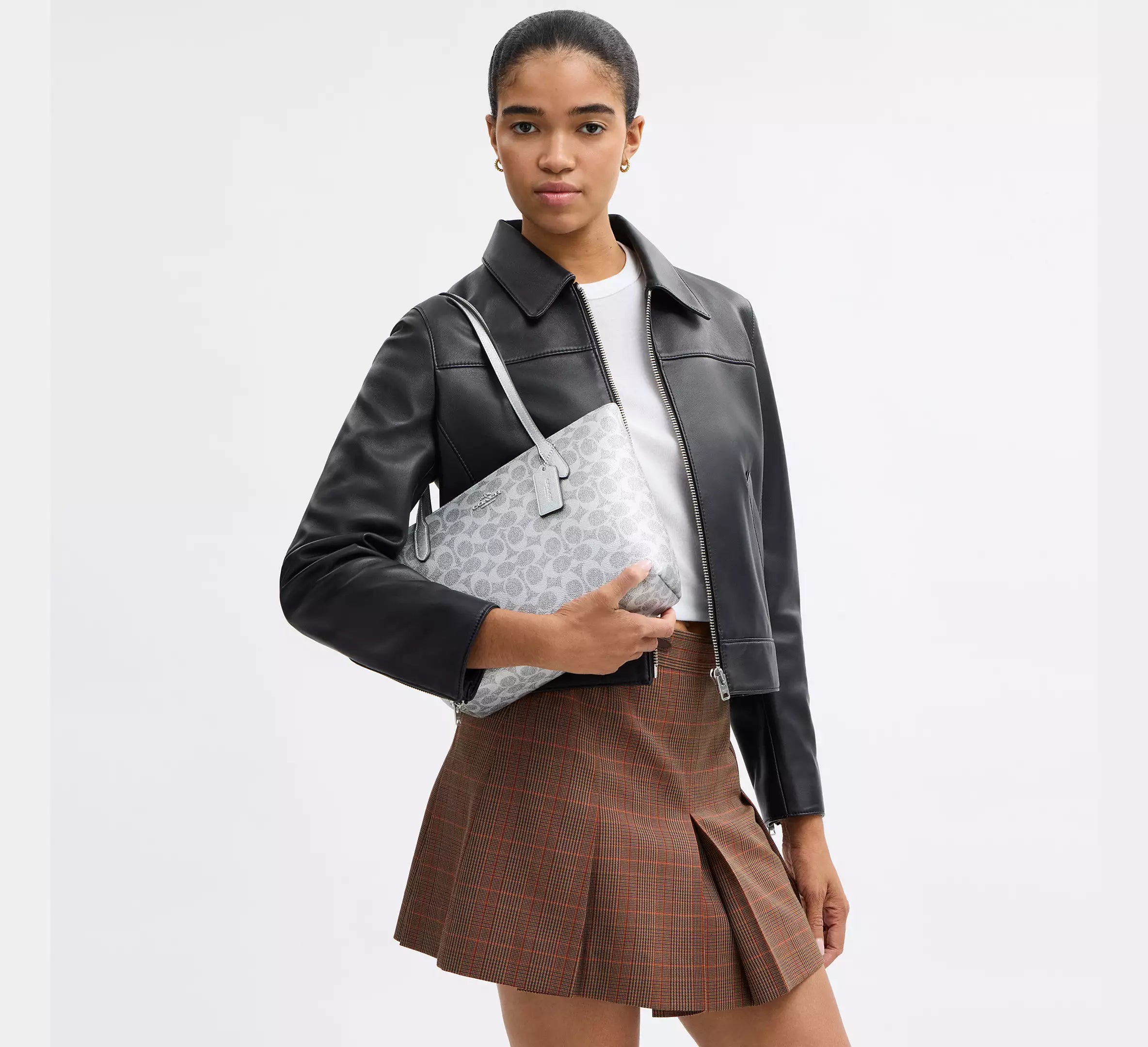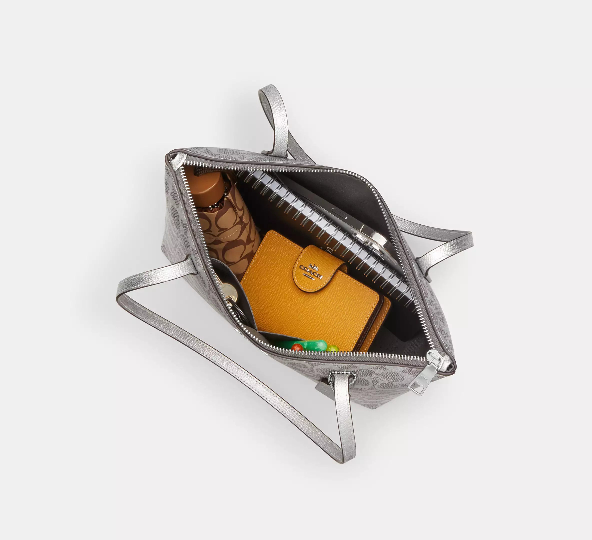 Coach Fiona Zip Tote Bag In Signature - Sv/Gray/Silver