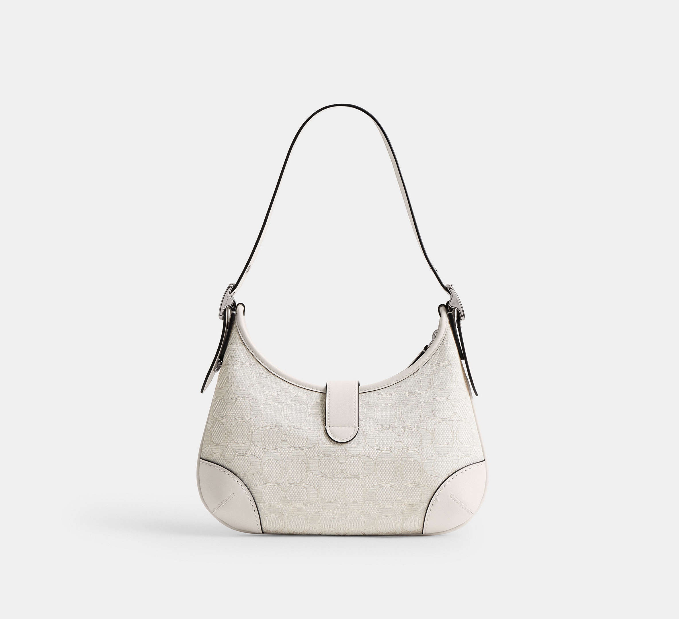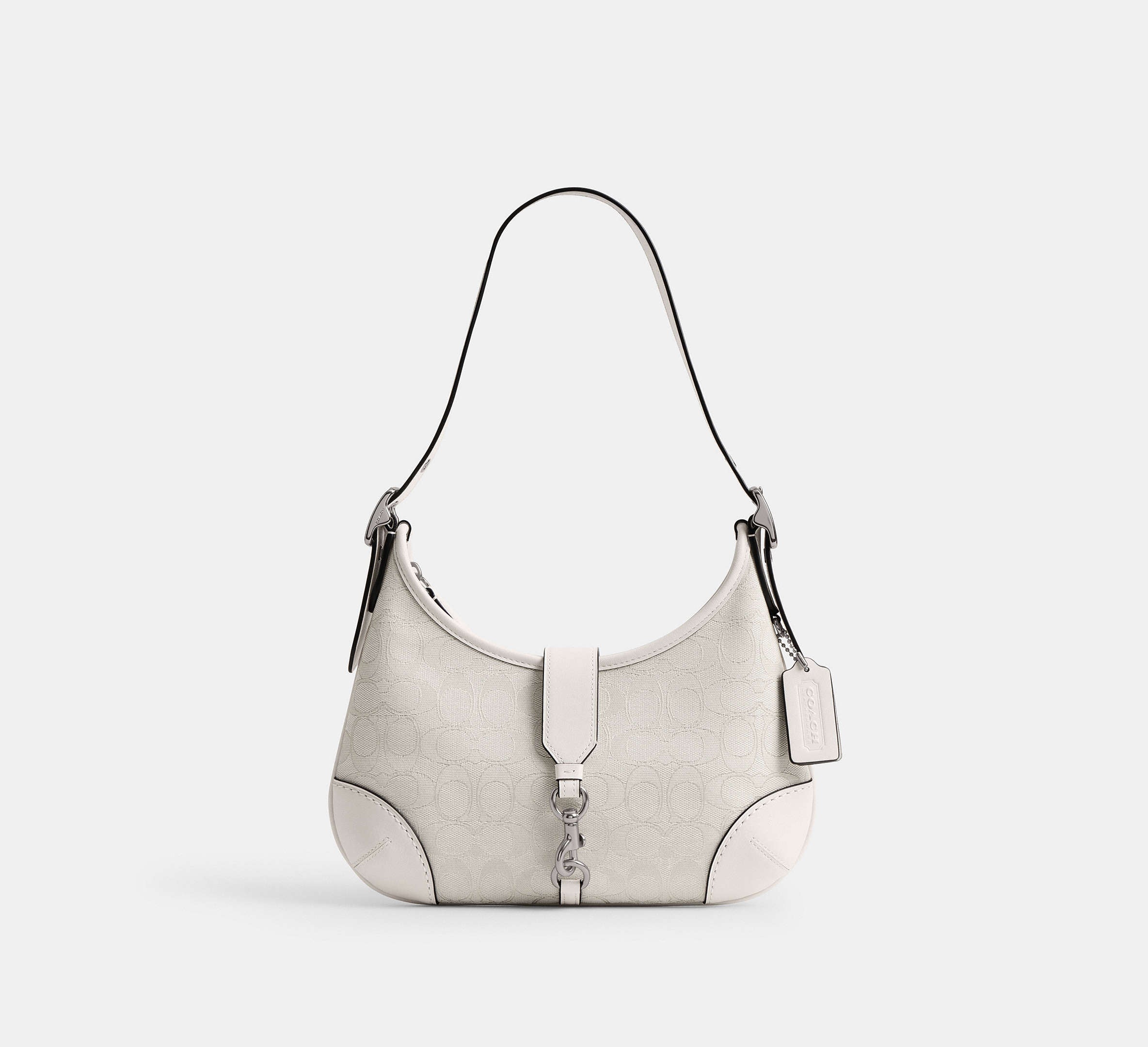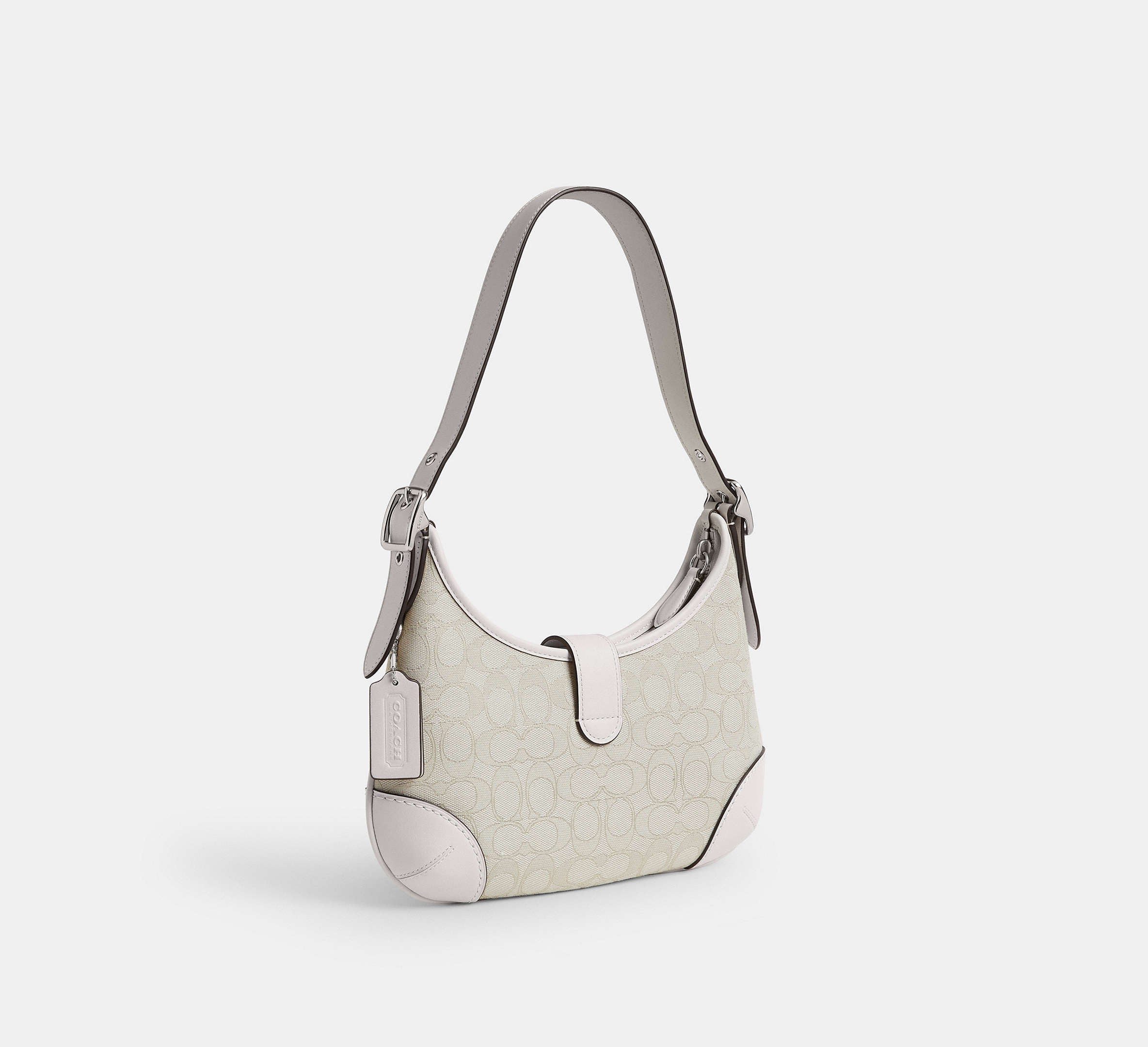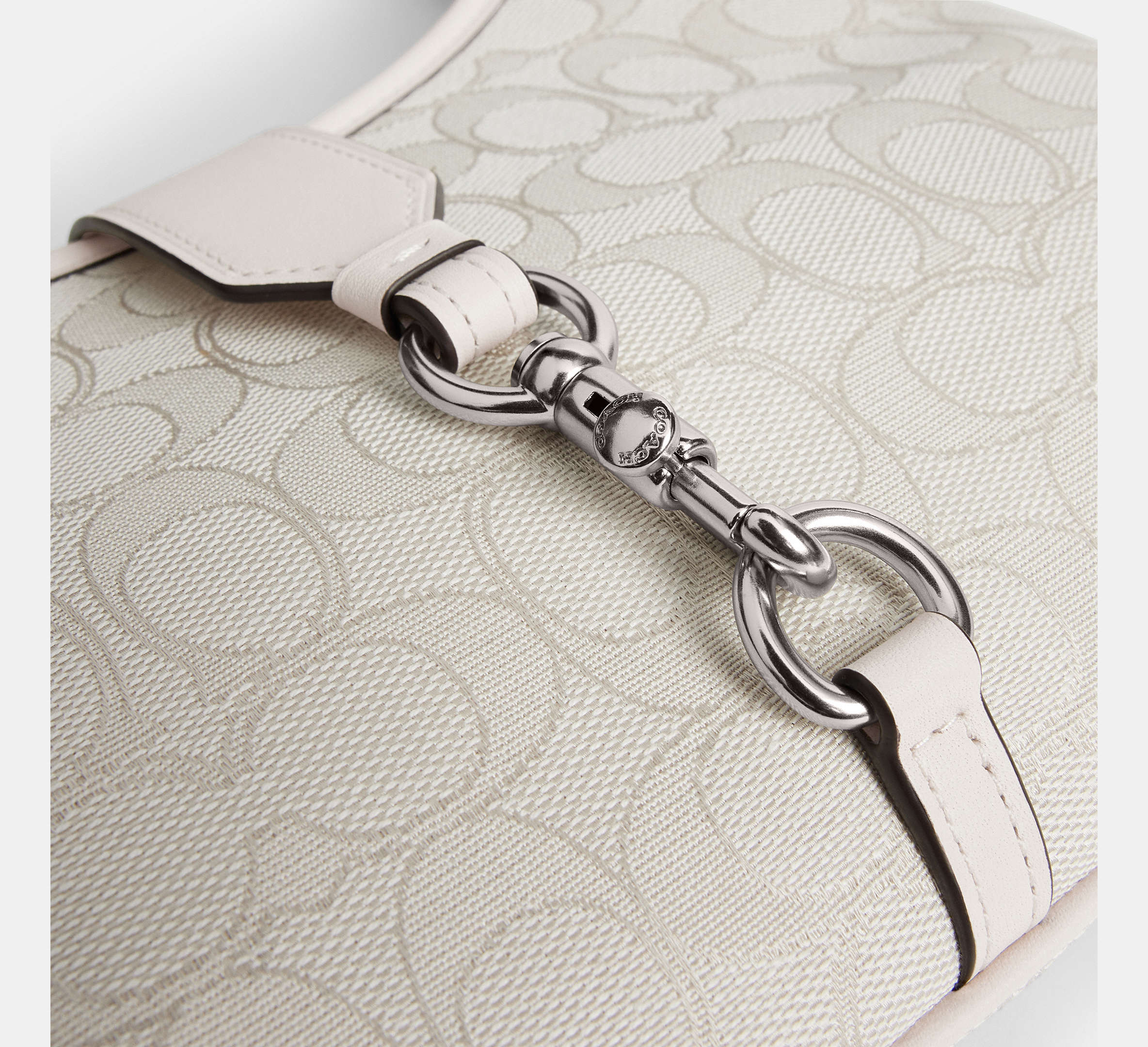 Coach Hamptons Hobo Bag In Signature Jacquard - Silver/Cloud Chalk