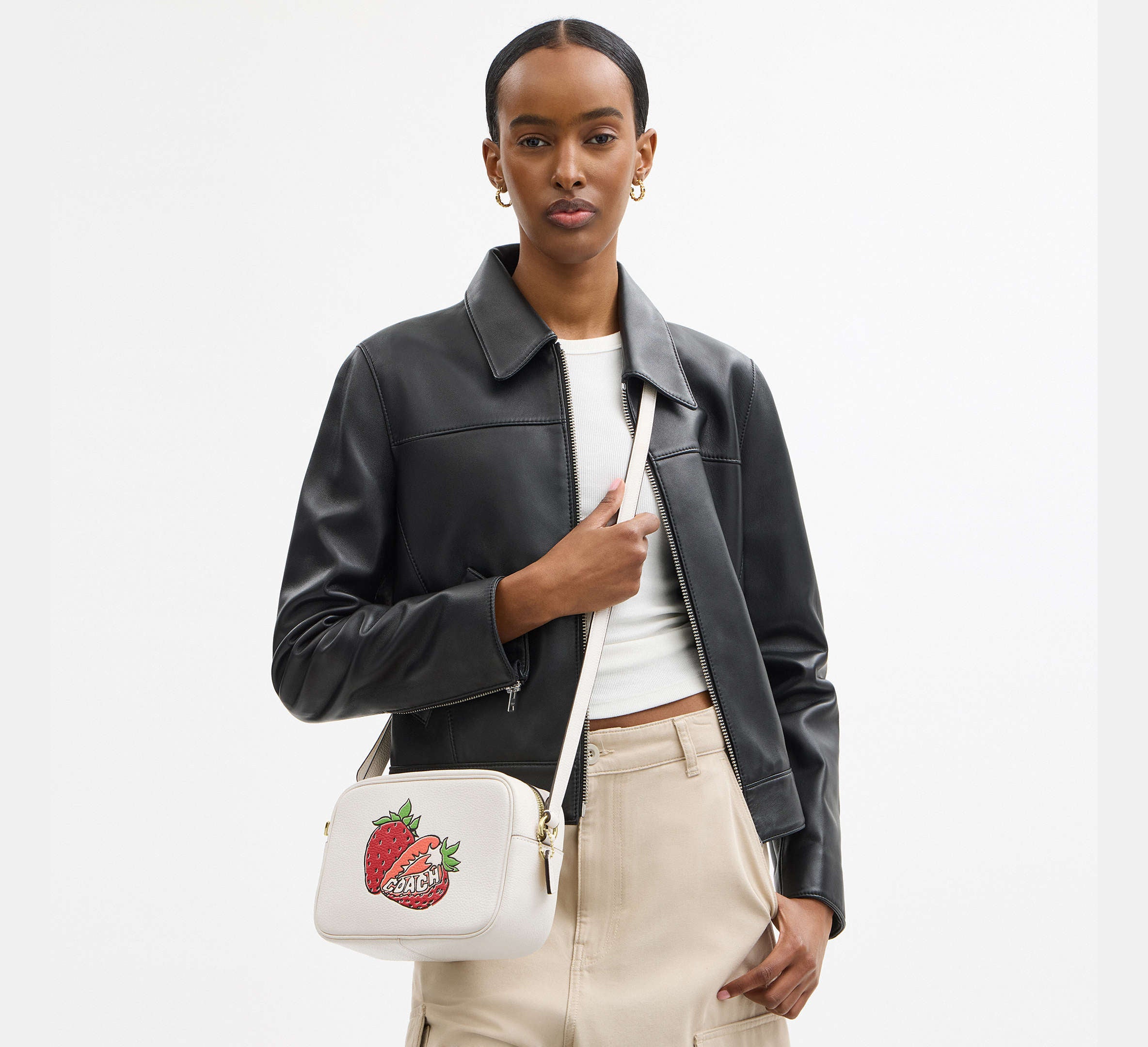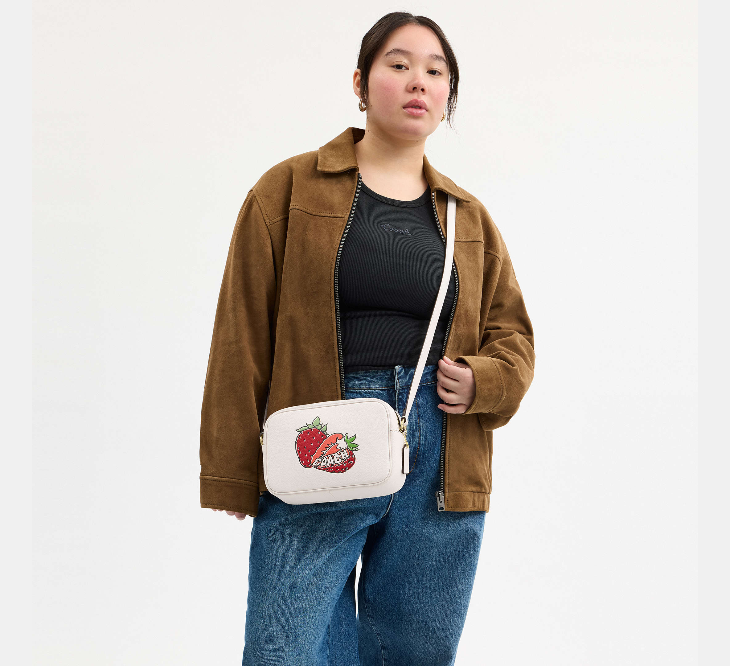 Coach Jamie Camera Bag With Strawberry Graphic - Gold/Chalk Multi
