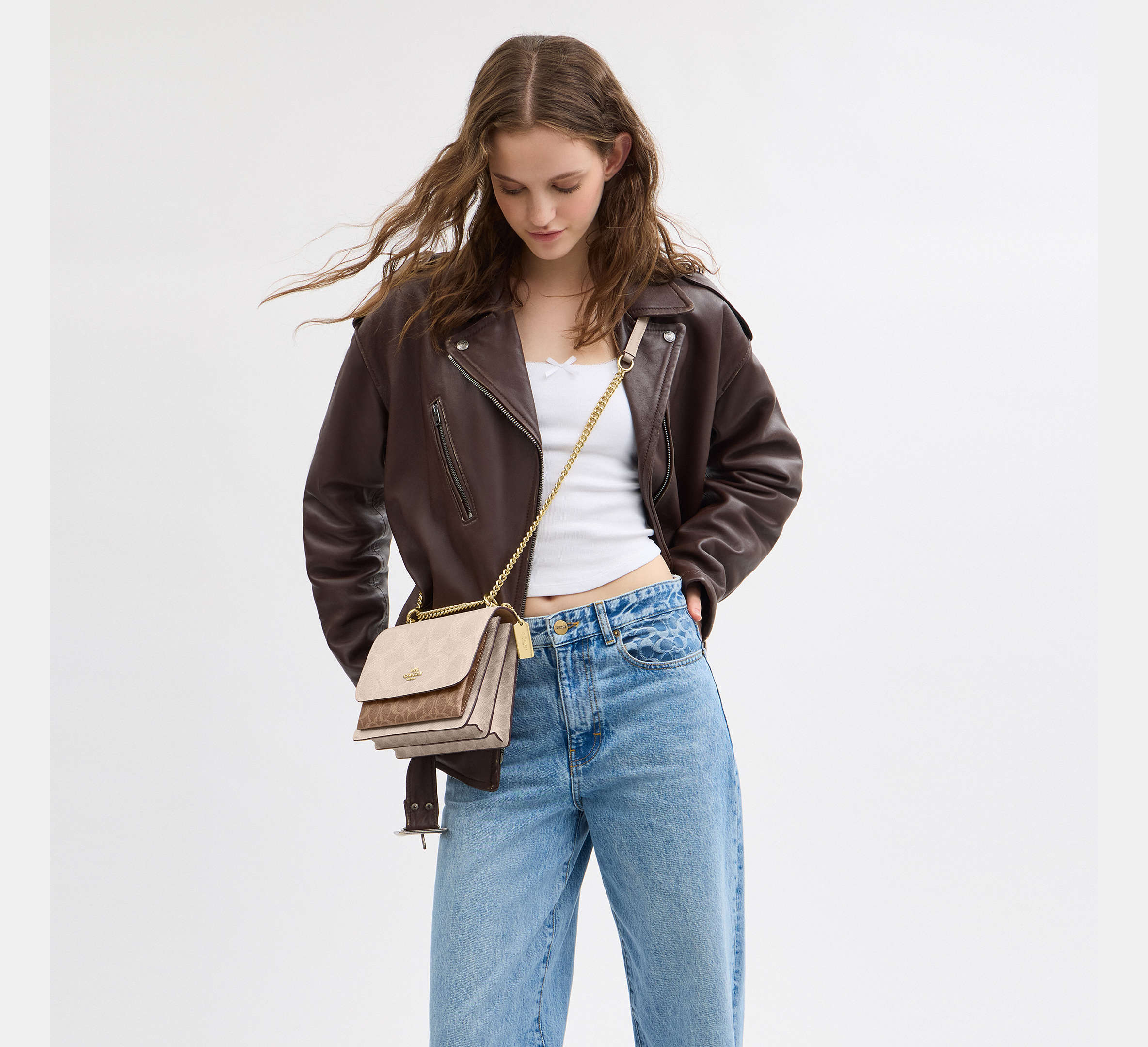 Coach Klare Crossbody Bag In Blocked Signature - Gold/Sand/Tan