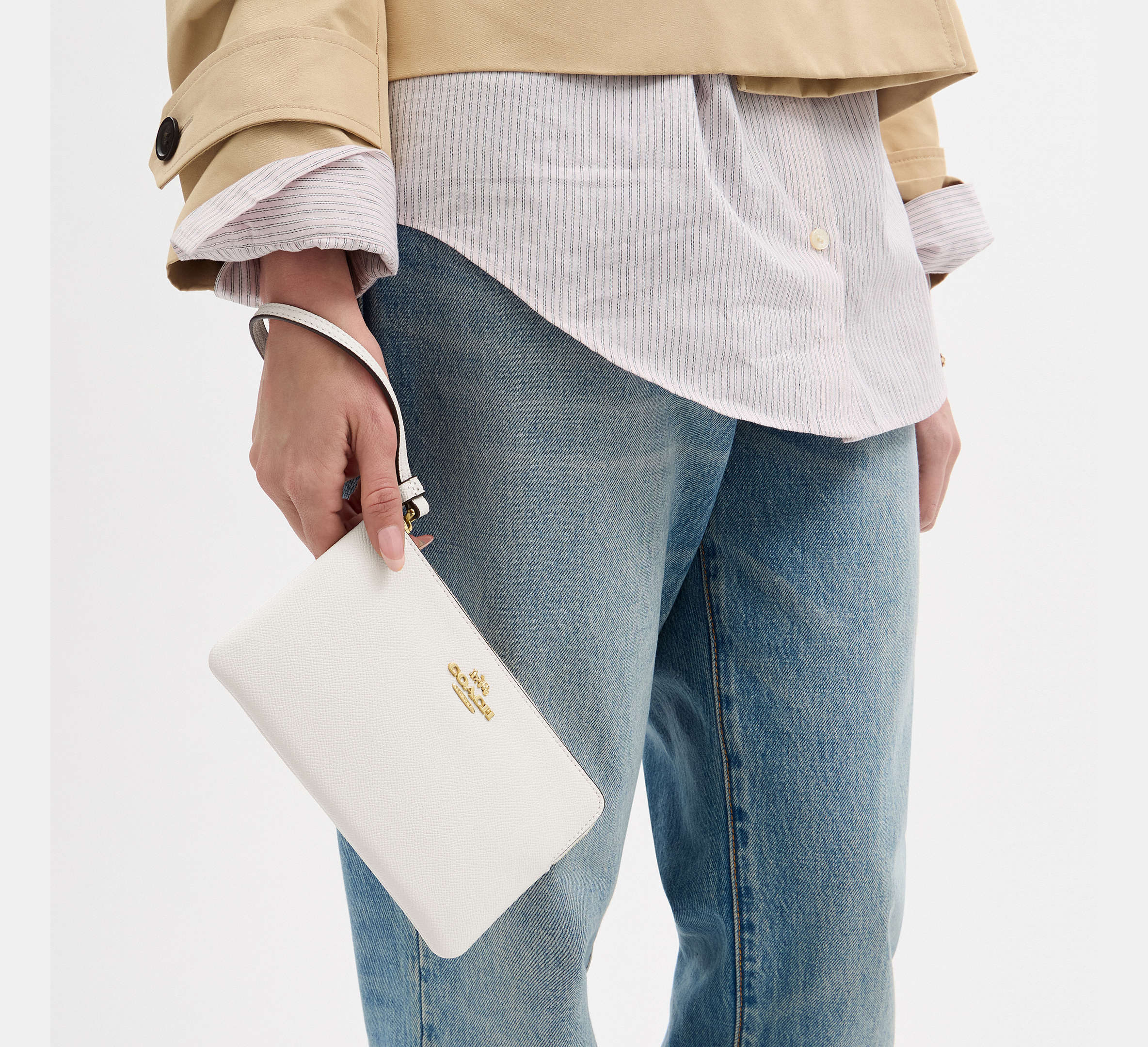 Coach Large Corner Zip Wristlet - Gold/Chalk