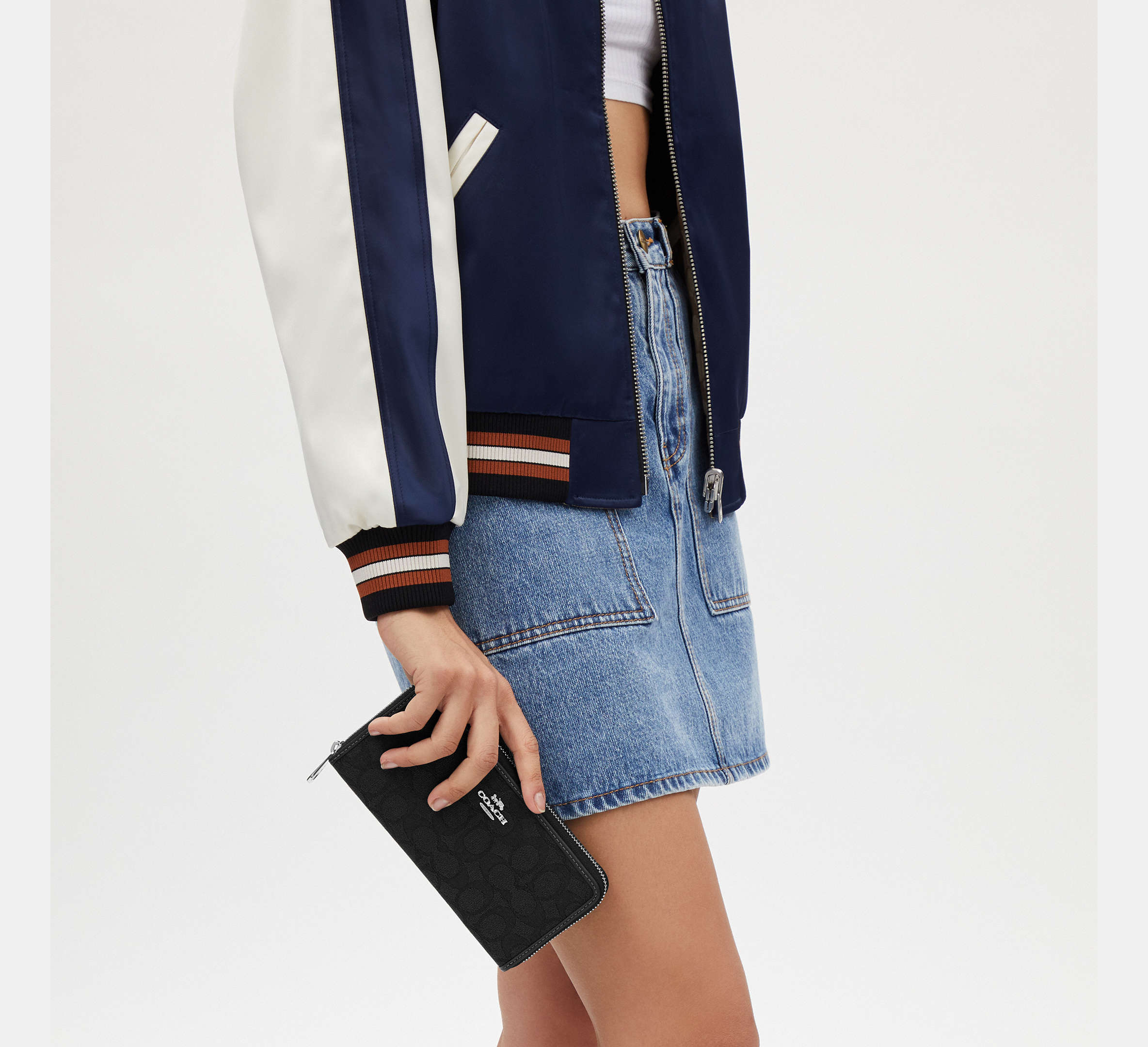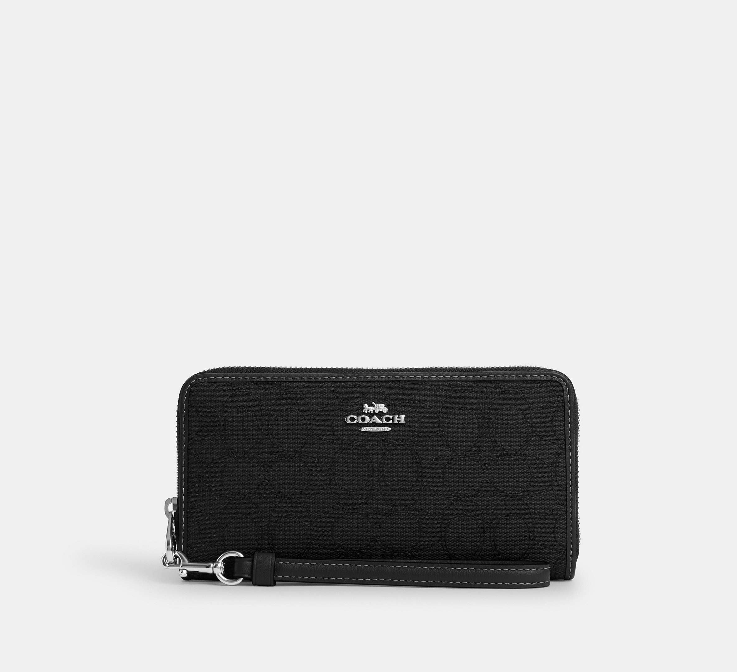 Coach Long Zip Around Wallet In Signature Jacquard - Silver/Black