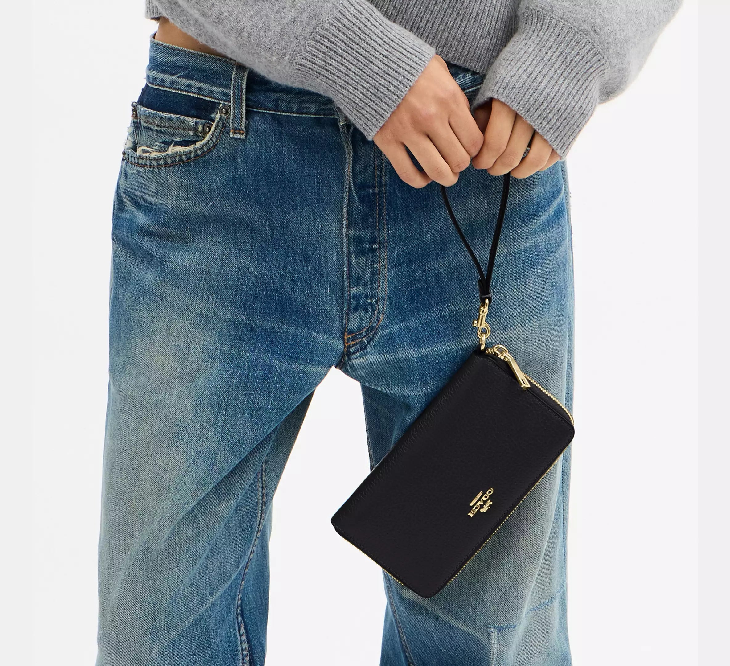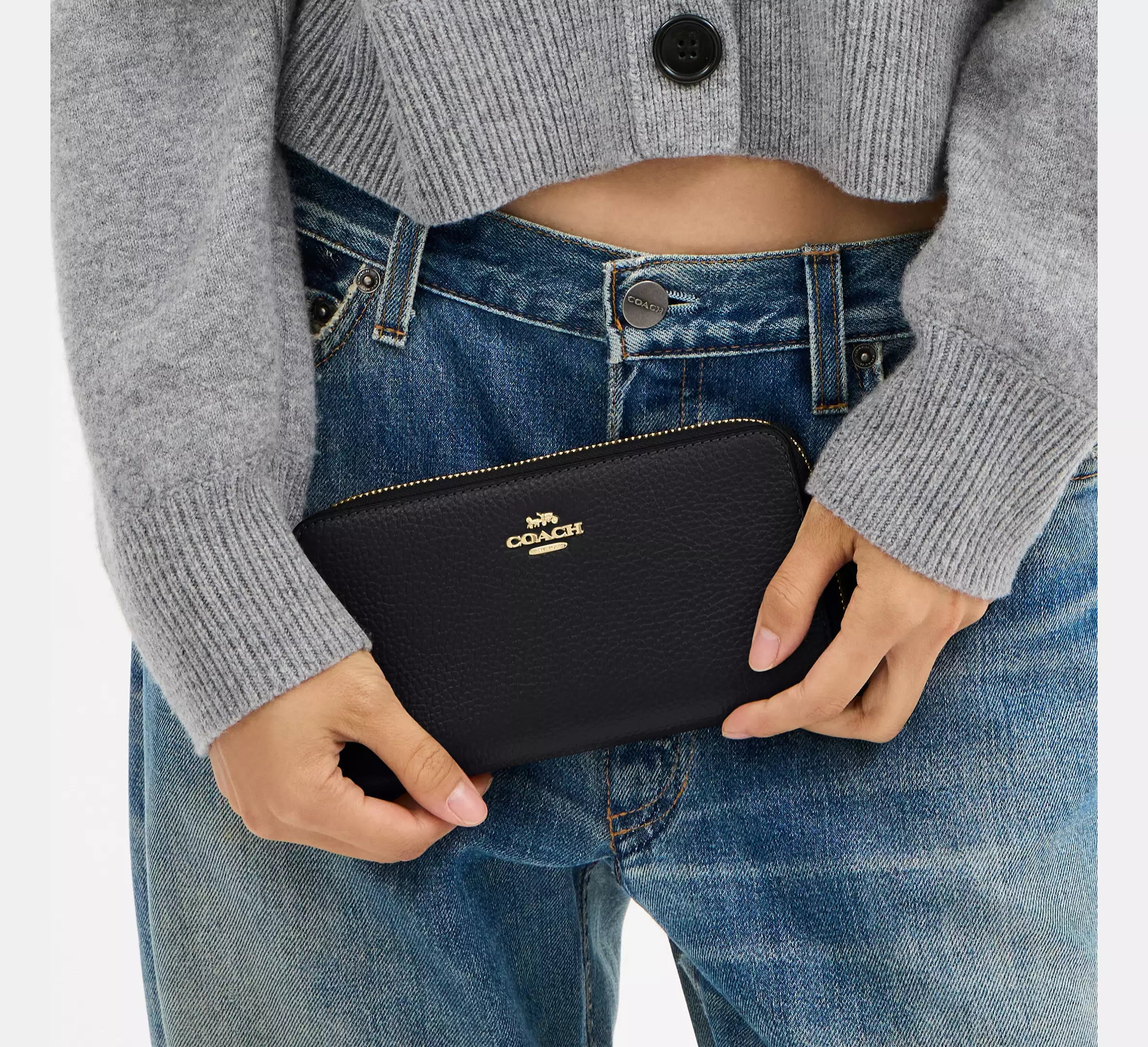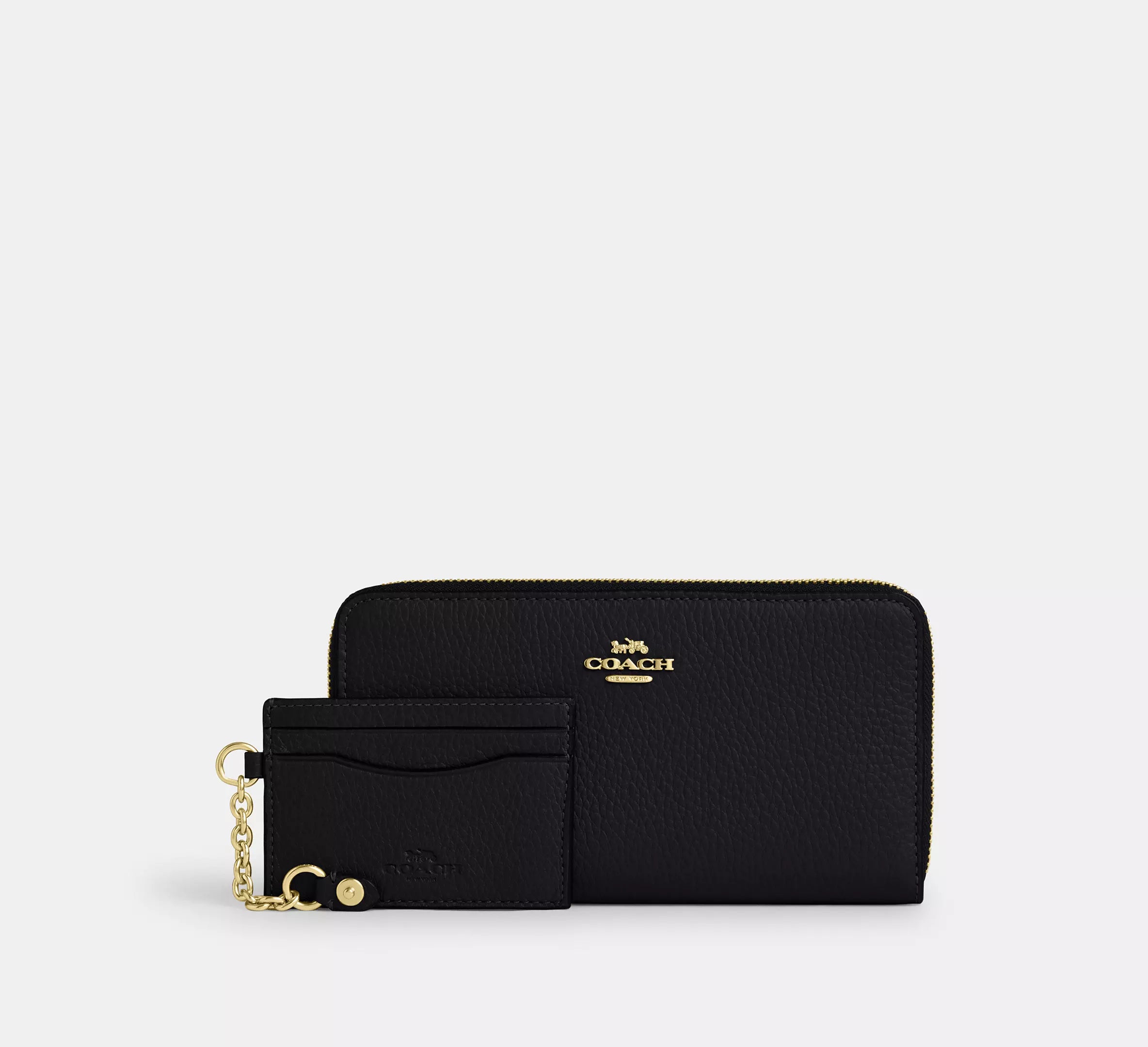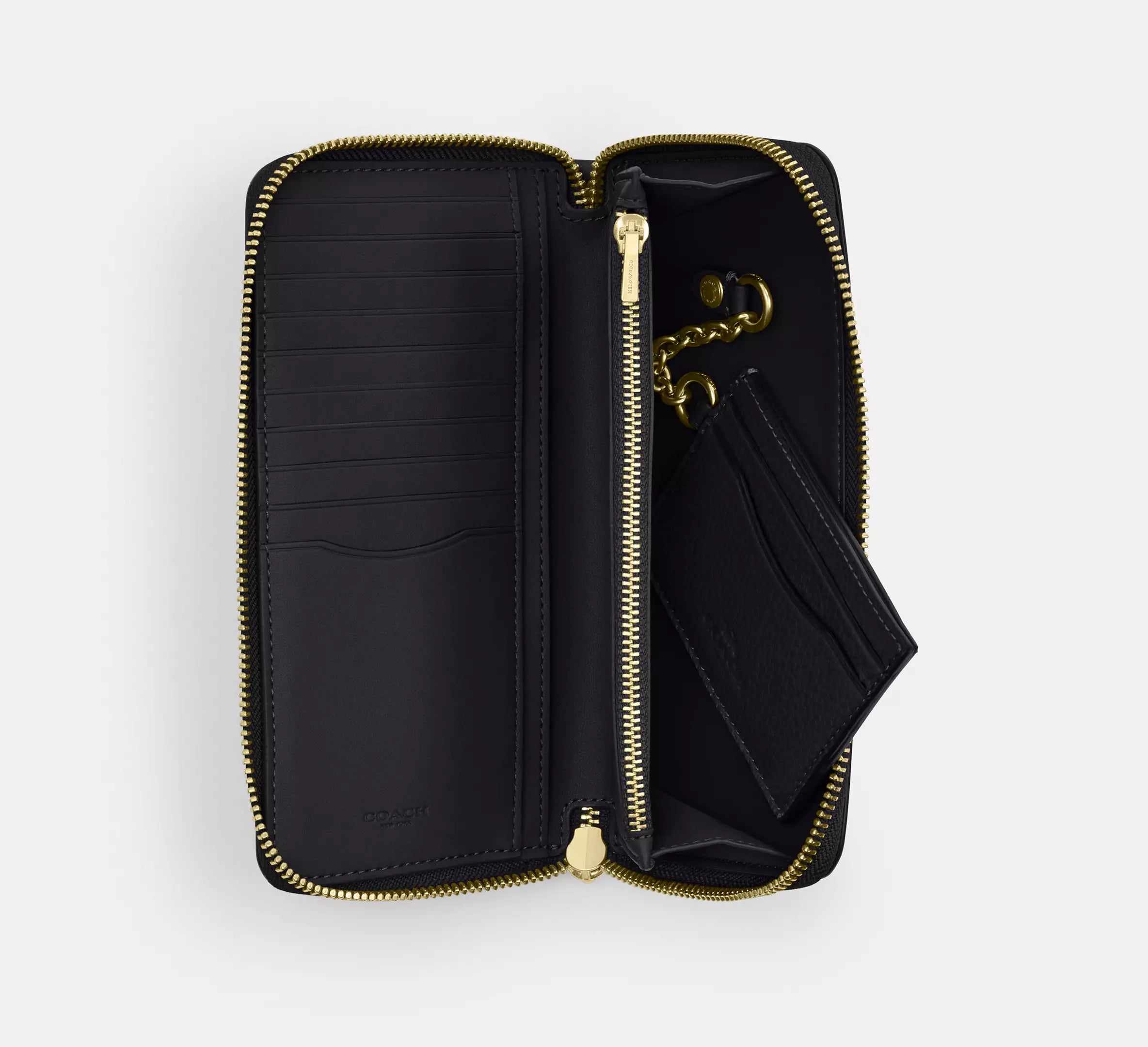 Coach Long Zip Around Wallet With Detachable Card Case - Gold/Black