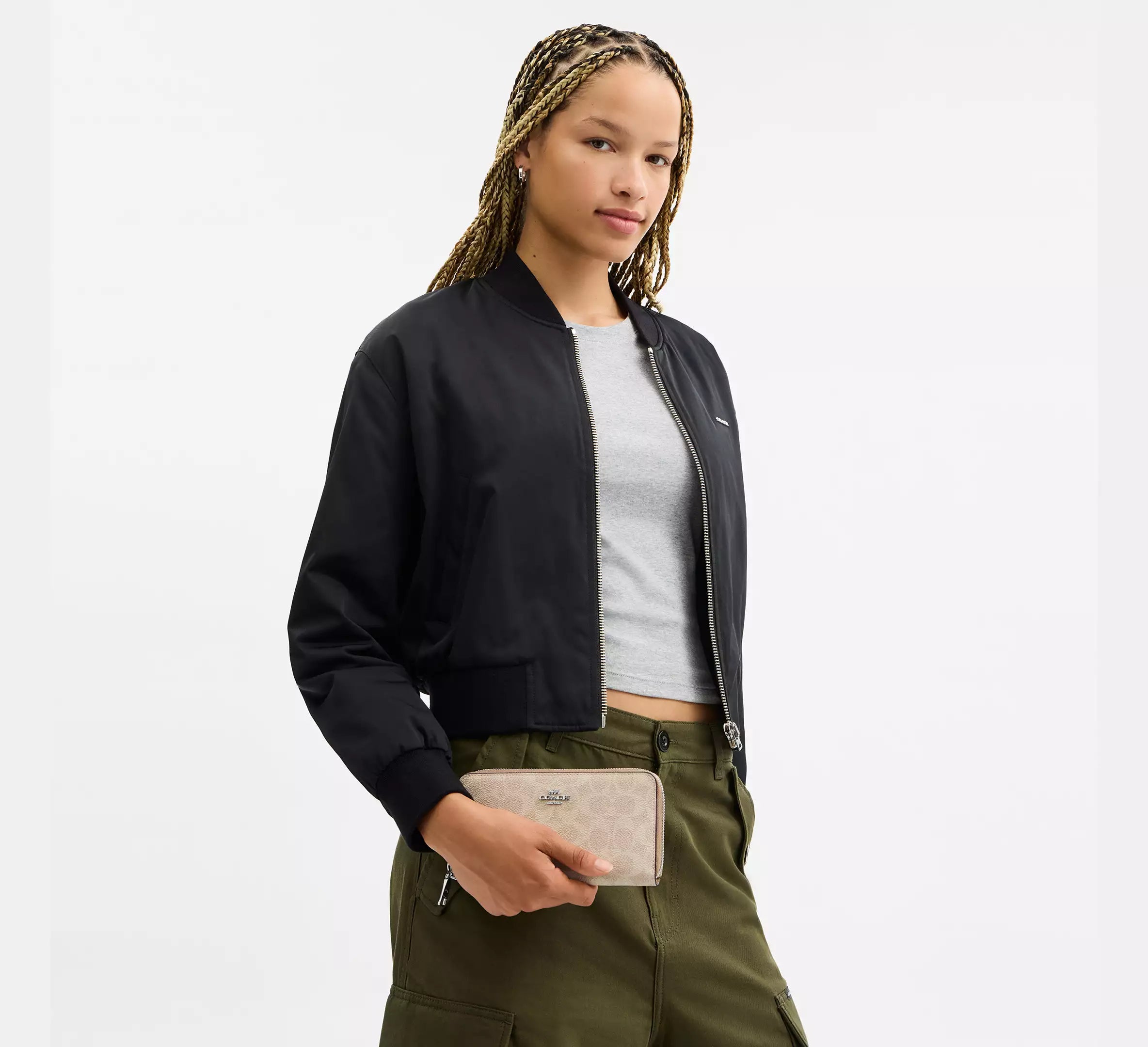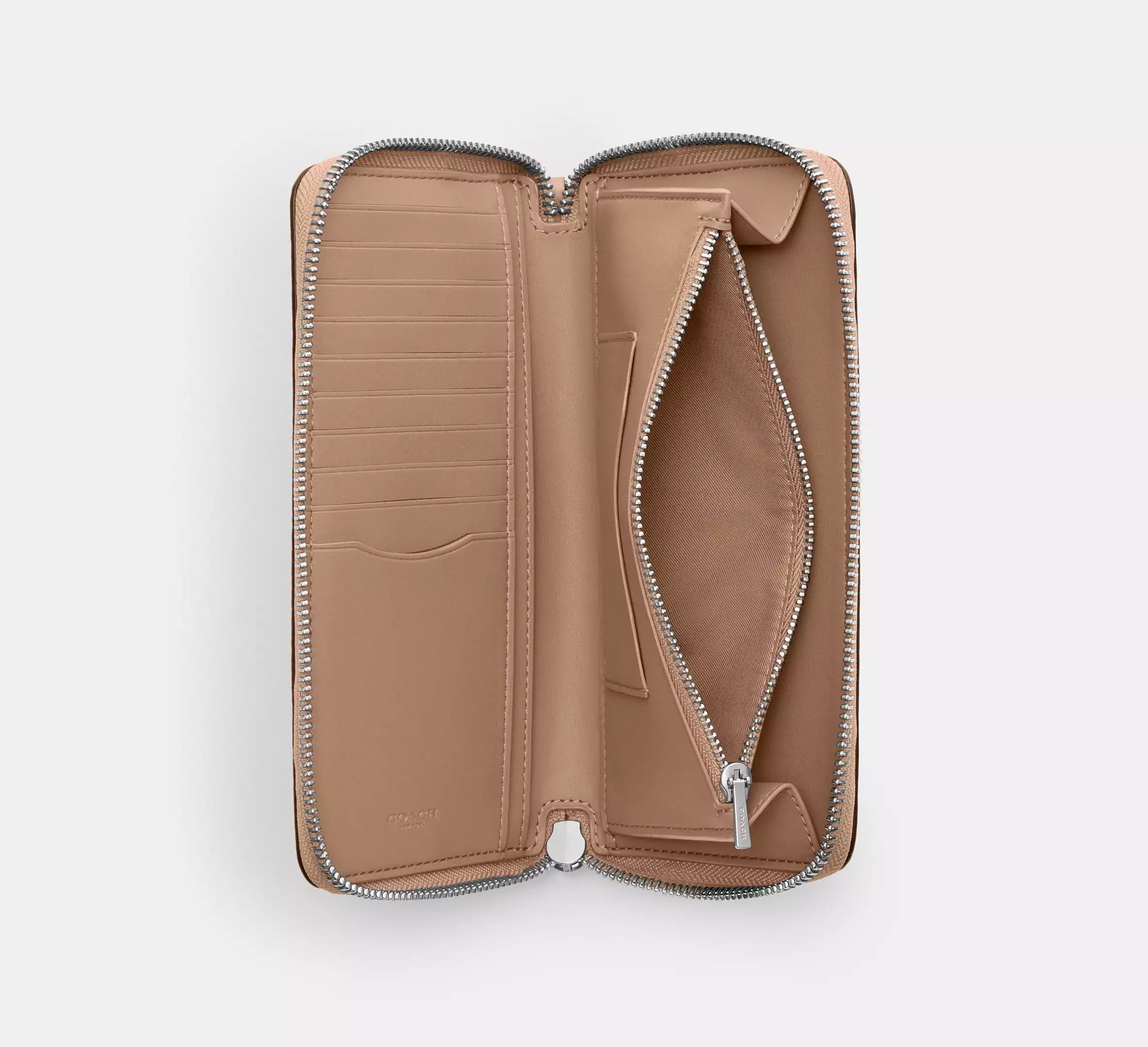 Coach Long Zip Around Wallet With Detachable Card Case In Signature - Silver/Sand/Taupe