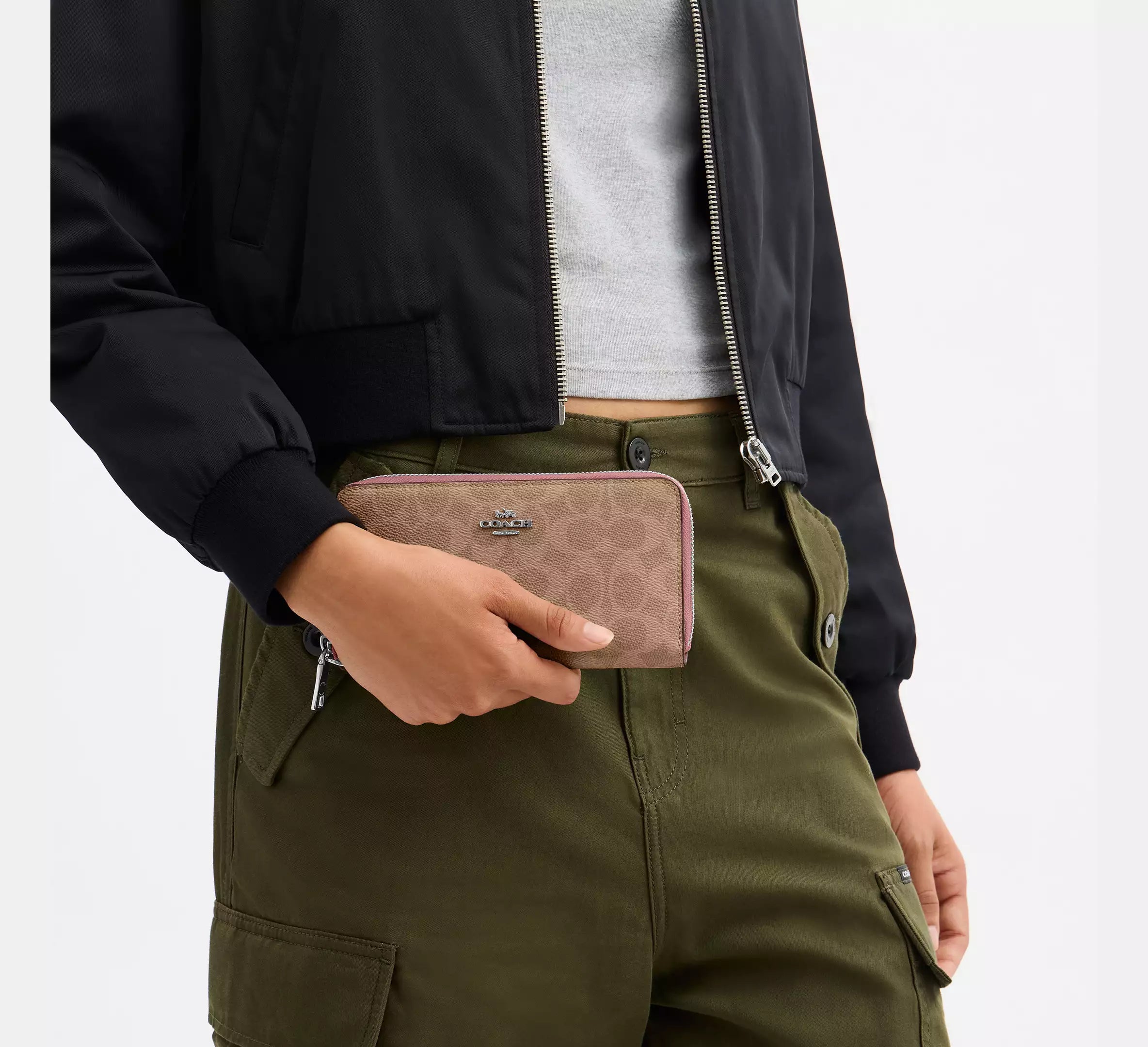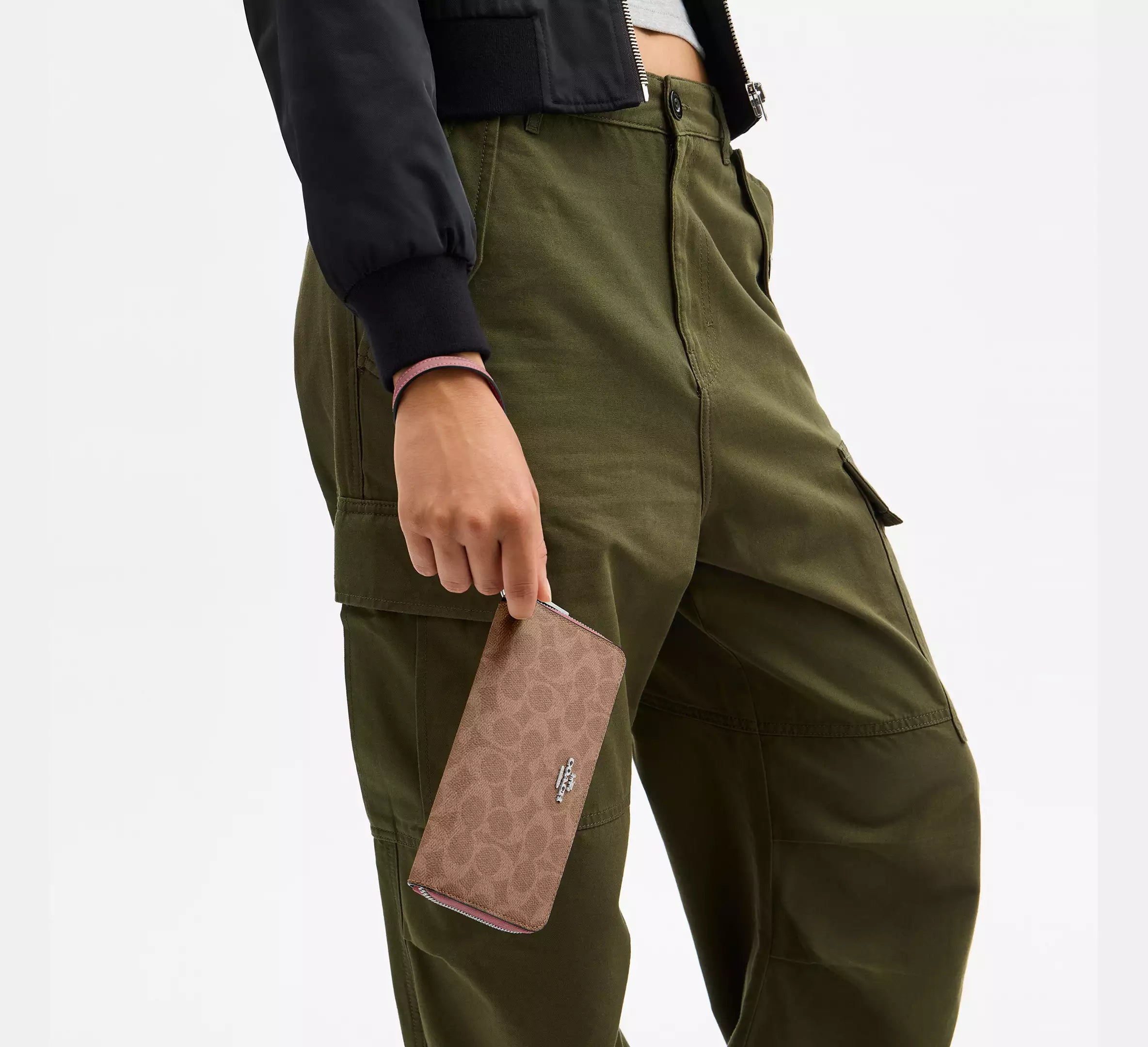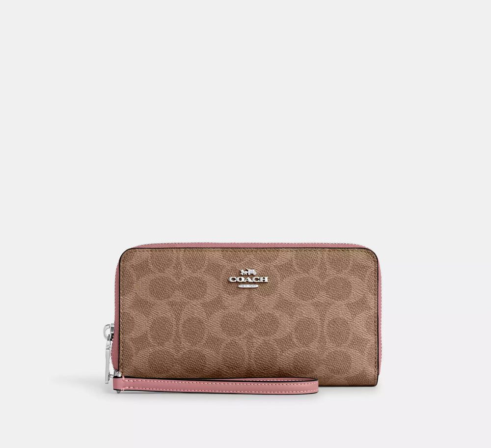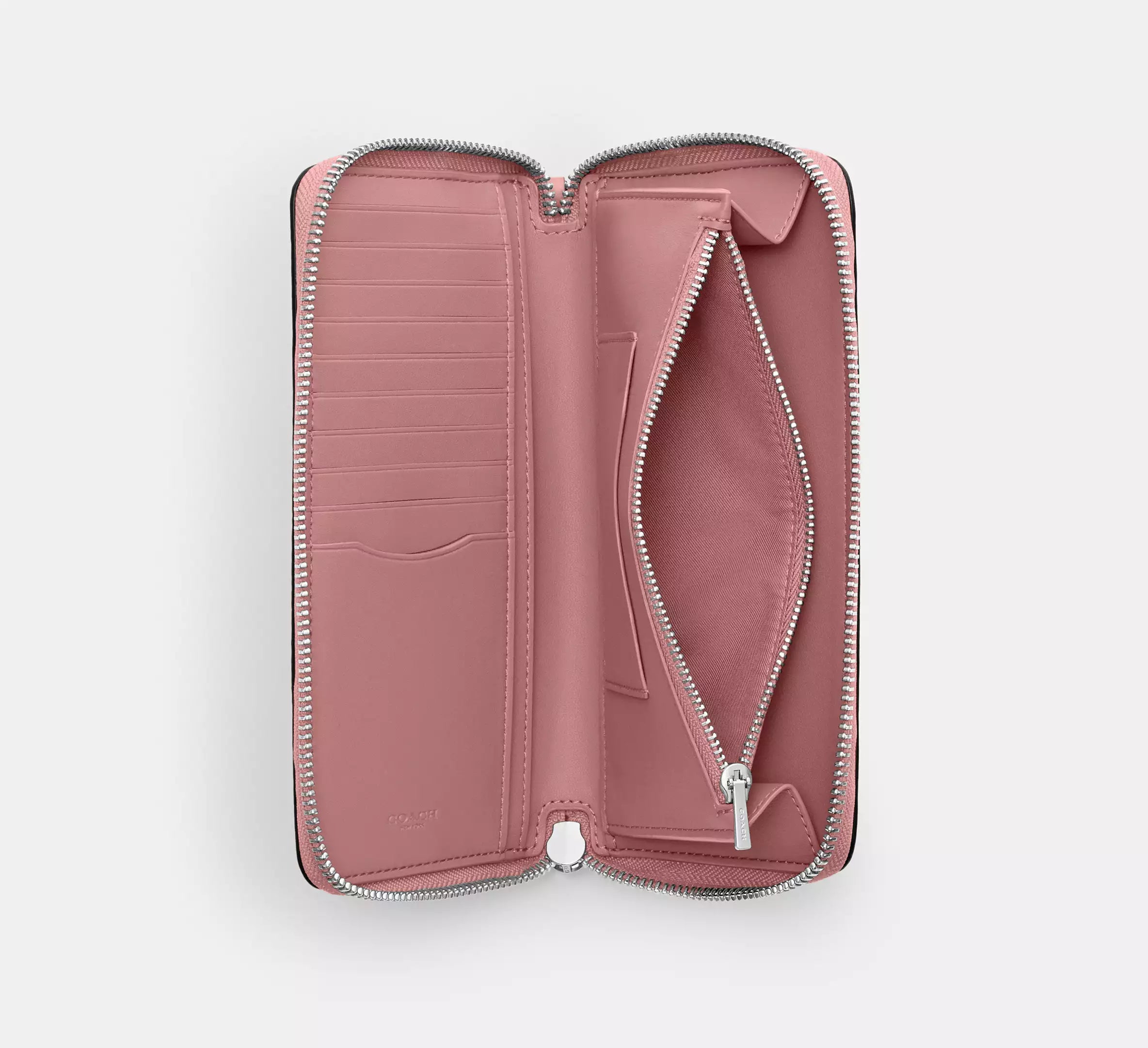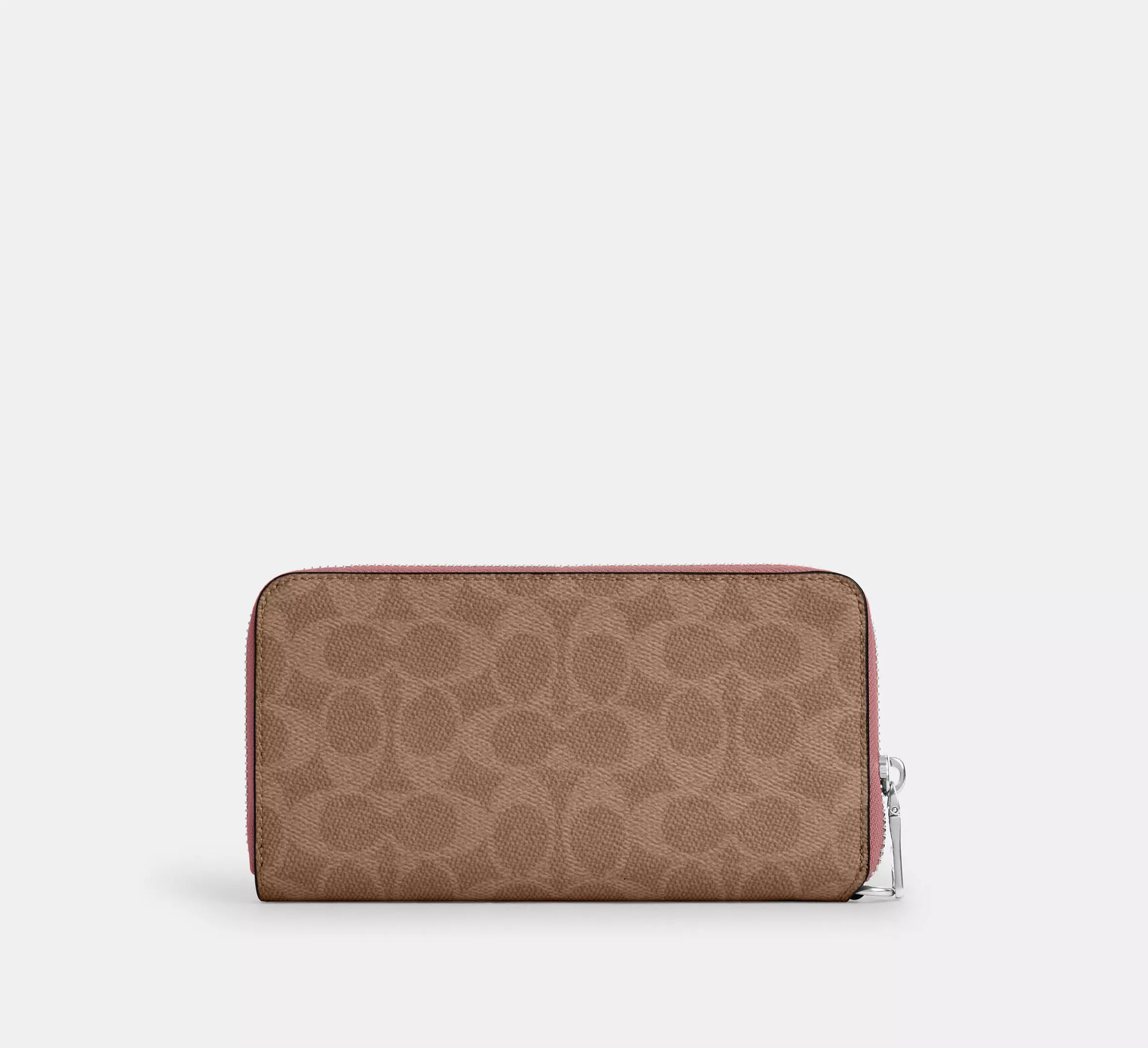 Coach Long Zip Around Wallet With Detachable Card Case In Signature - Sv/Tan/Dusty Pink