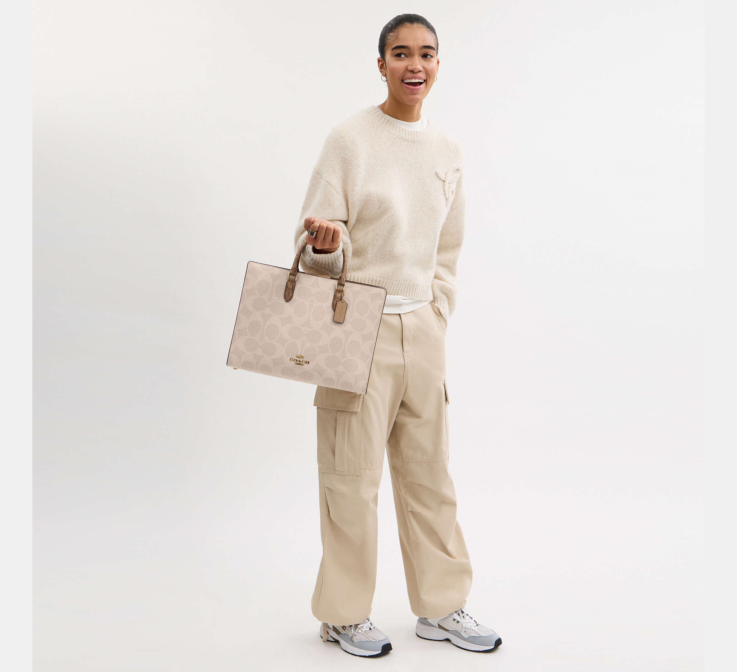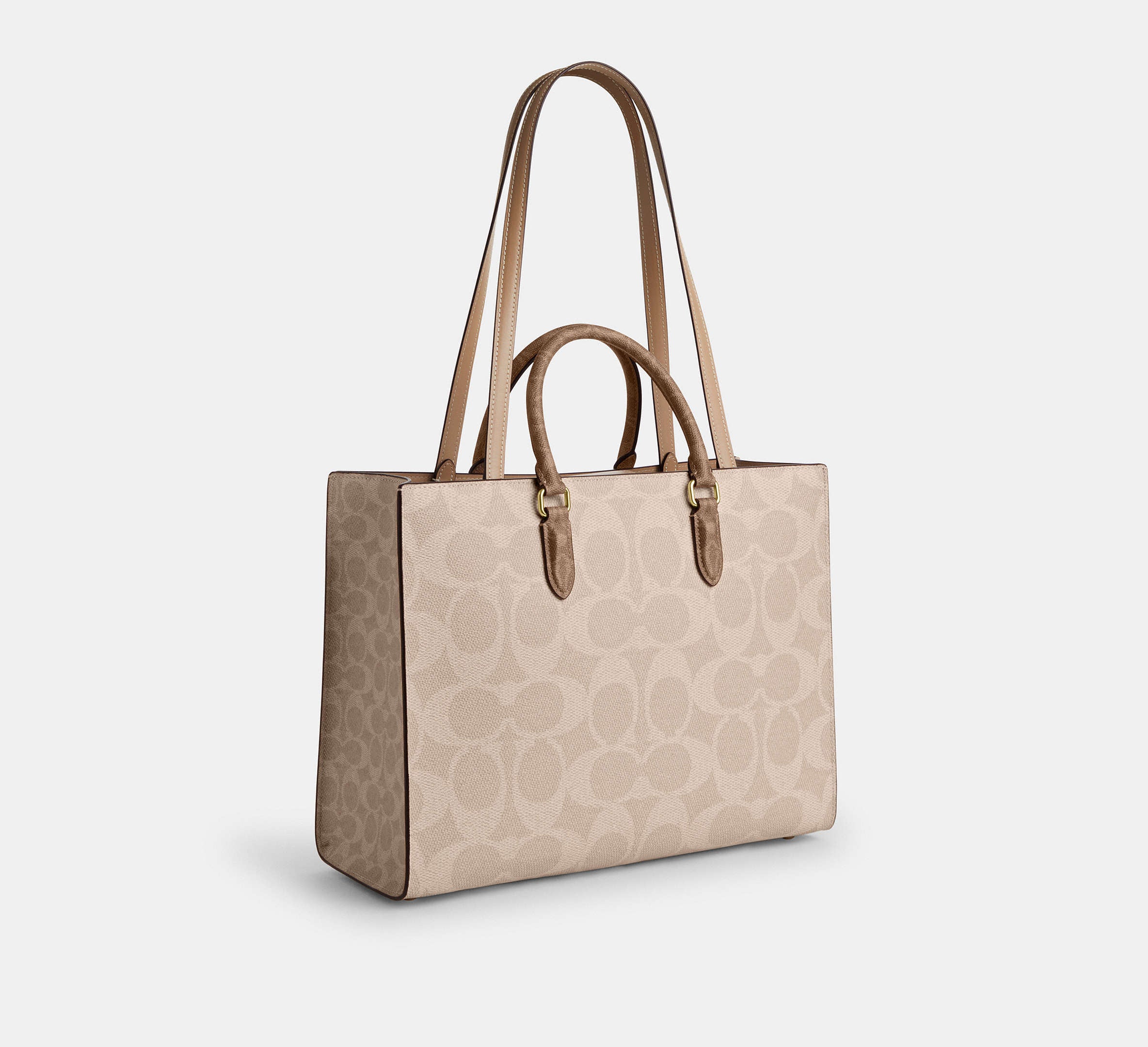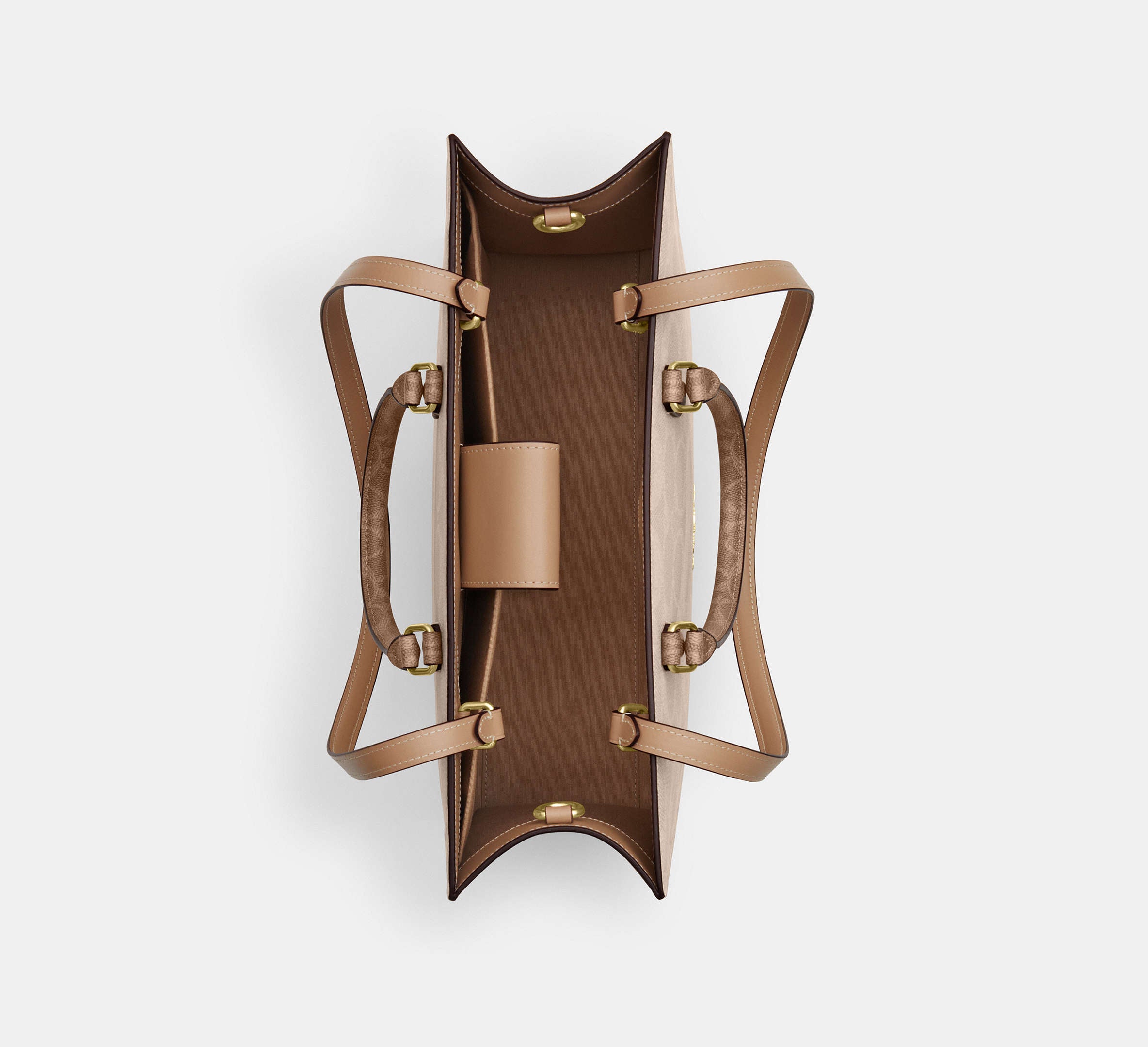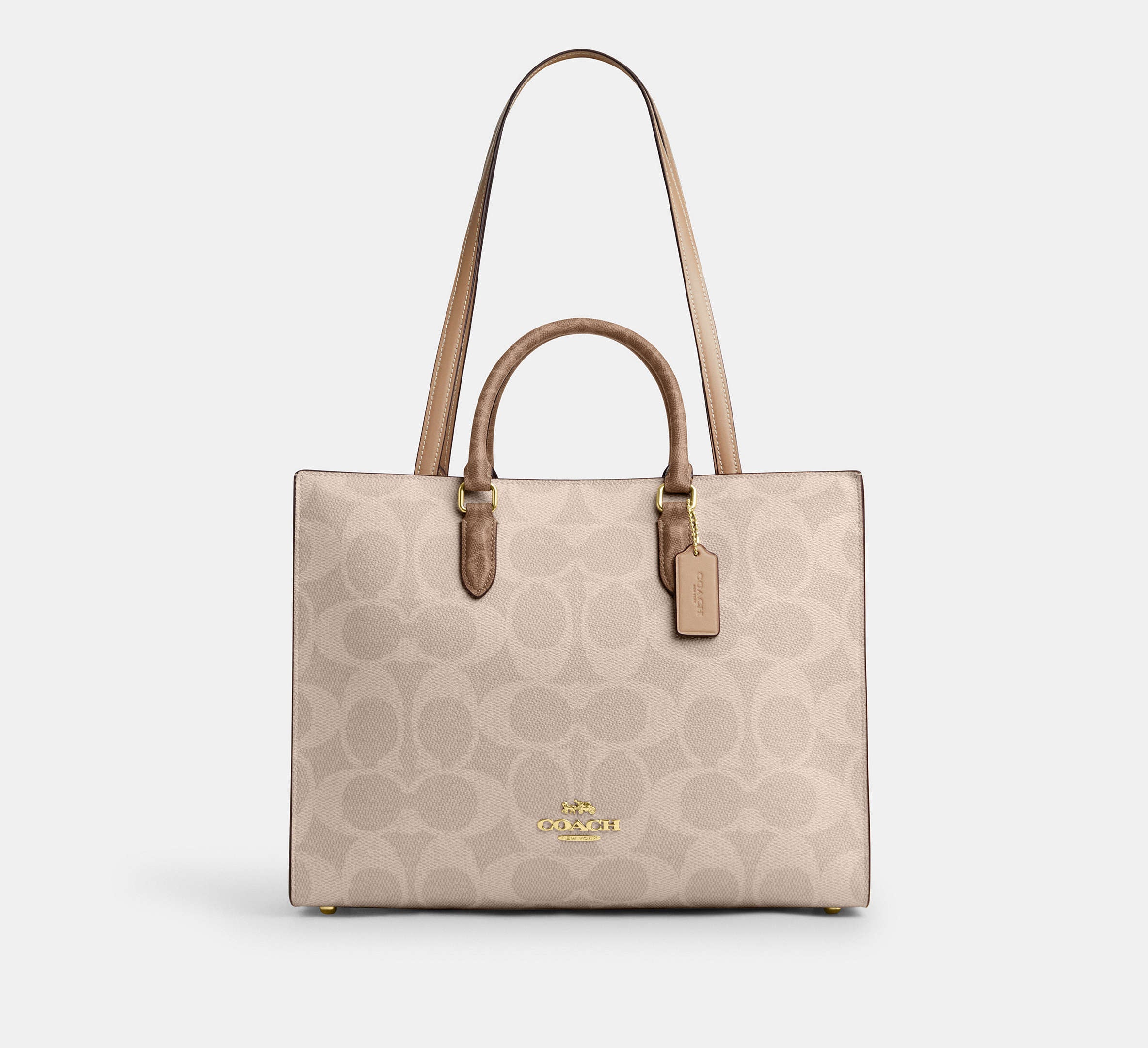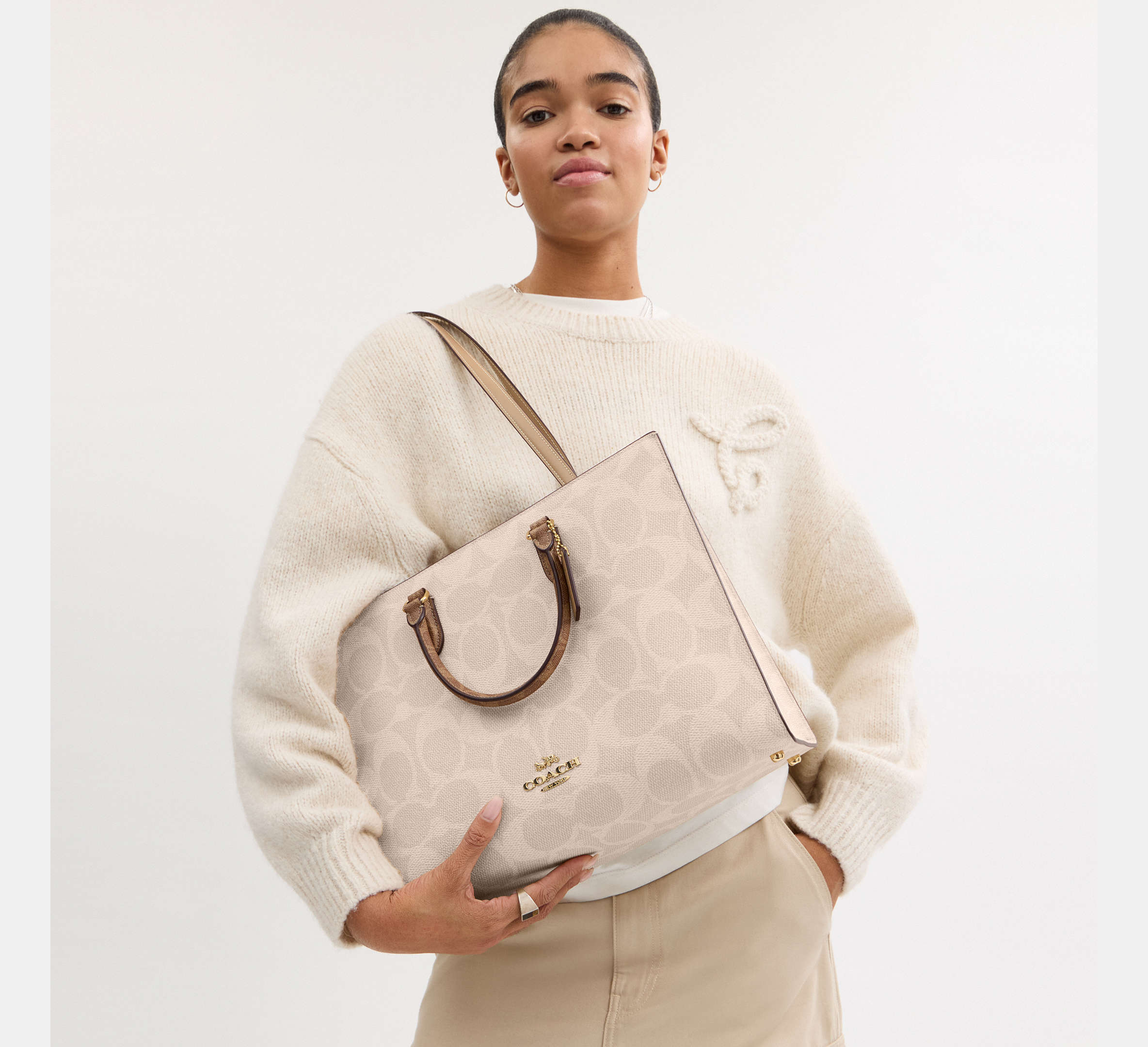 Coach Maggie Tote Bag In Blocked Signature - Gold/Sand/Tan