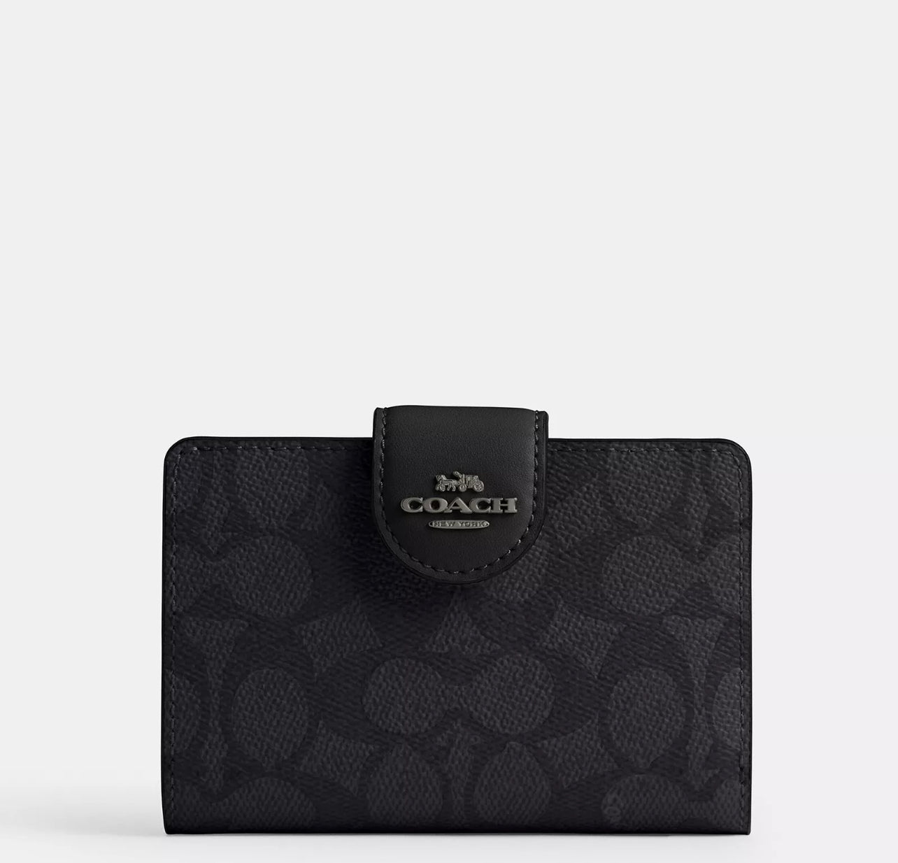 Coach Medium Corner Zip Wallet In Signature - Gunmetal/Charcoal/Black