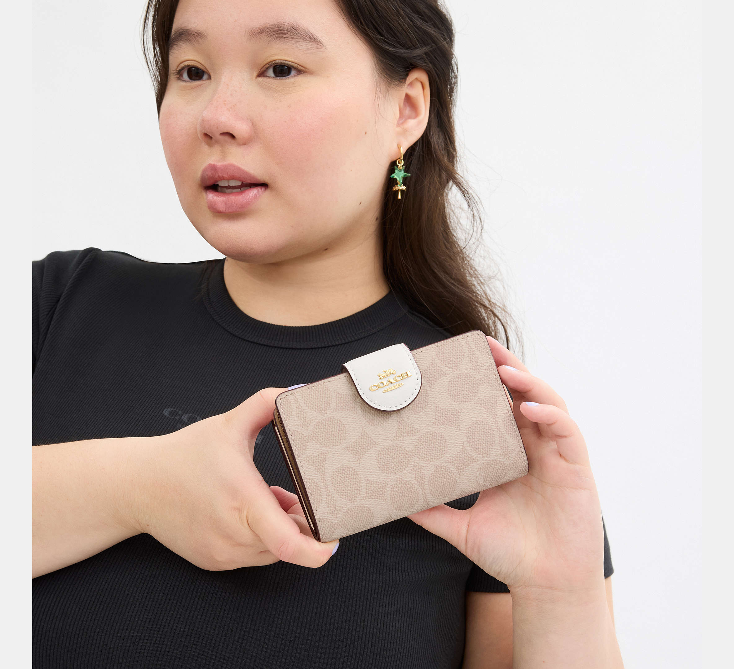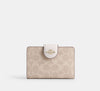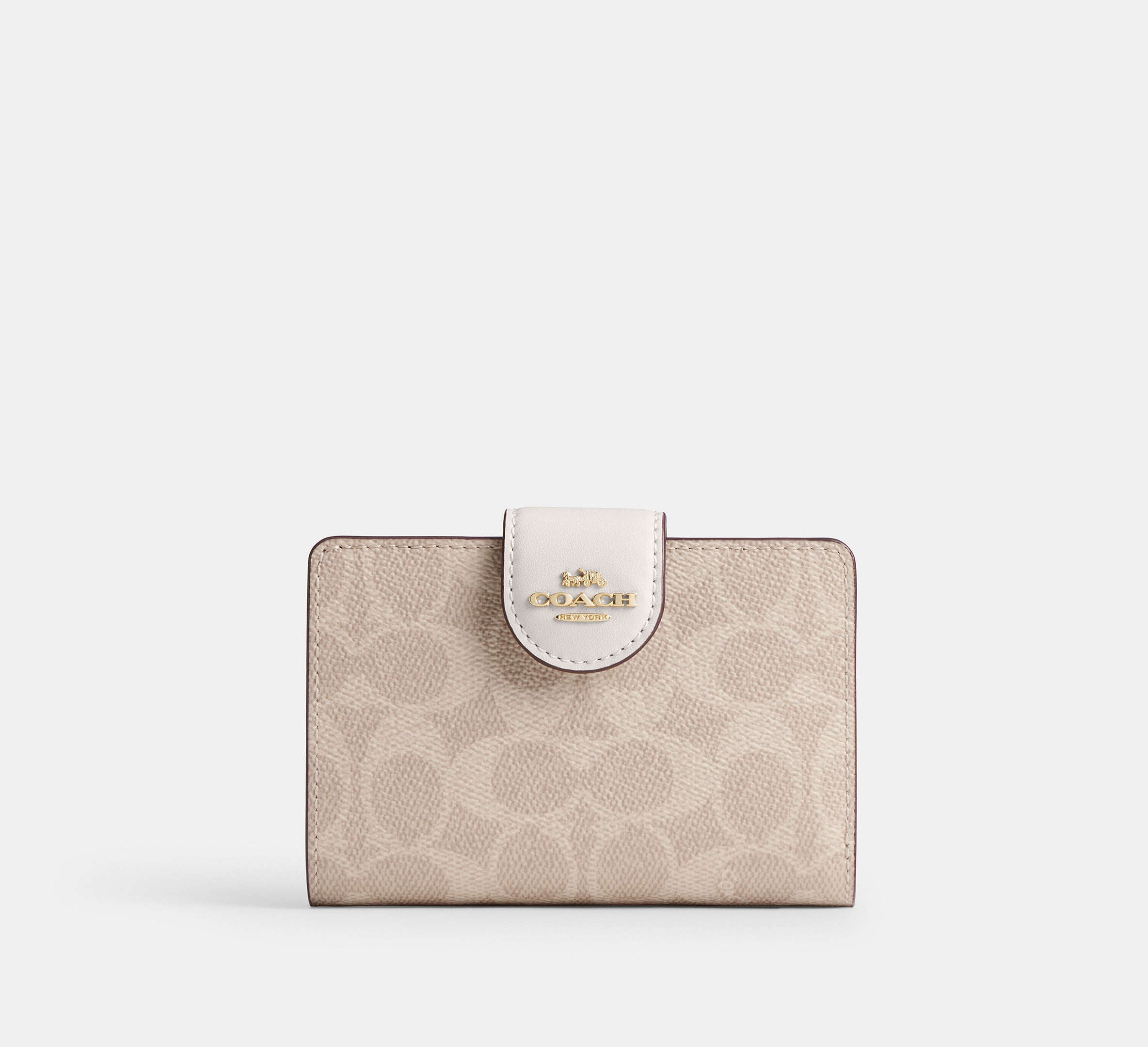 Coach Medium Corner Zip Wallet In Signature - Gold/Sand/Chalk