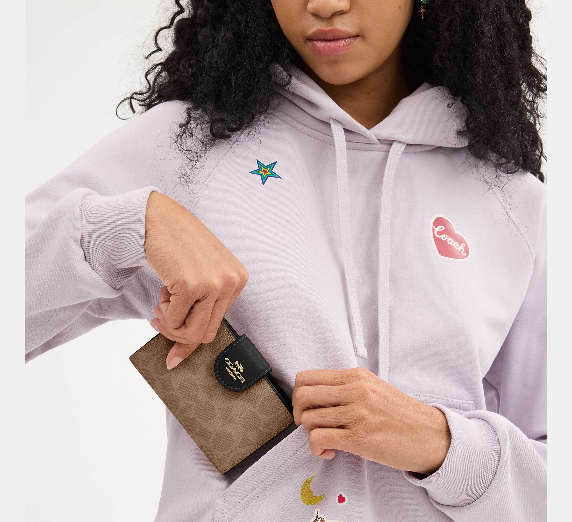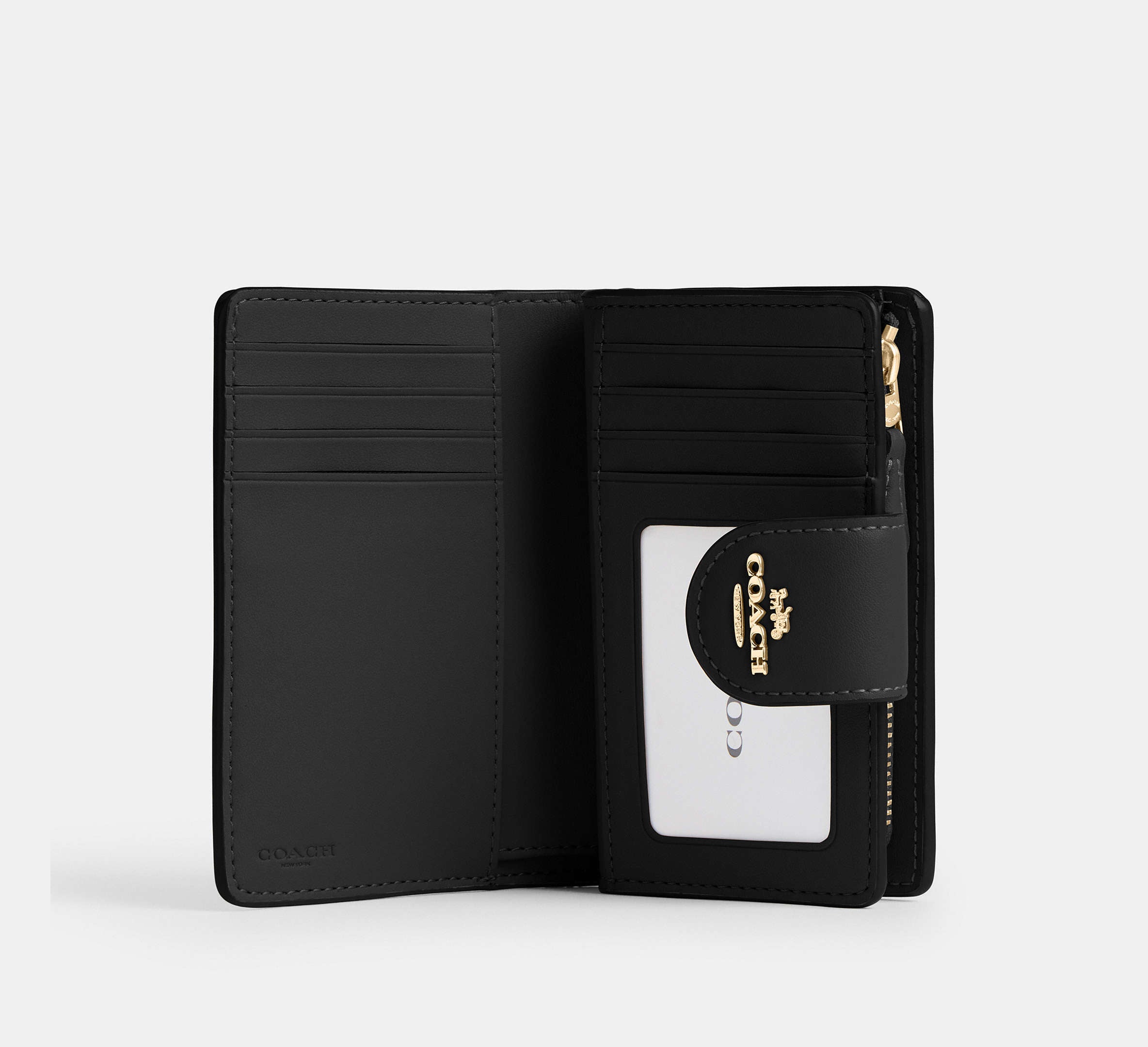 Coach Medium Corner Zip Wallet In Signature - Gold/Tan/Black