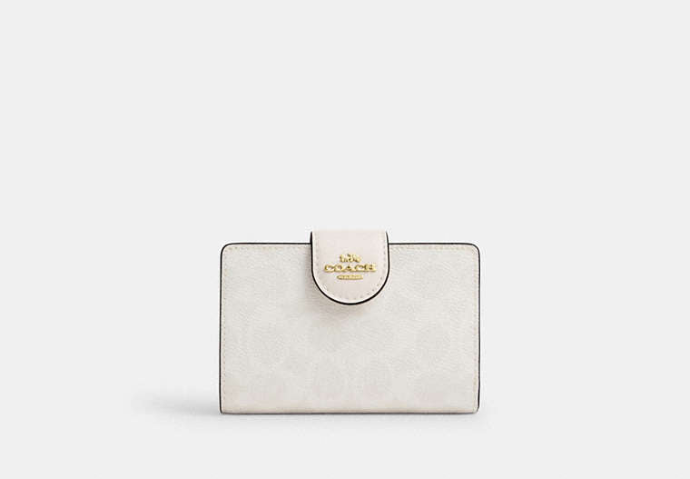 Coach Medium Corner Zip Wallet In Signature - Gold/White/Chalk
