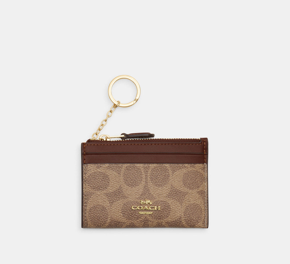 Coach Mini Skinny Id Case In Signature - Gold/Tan/Brown