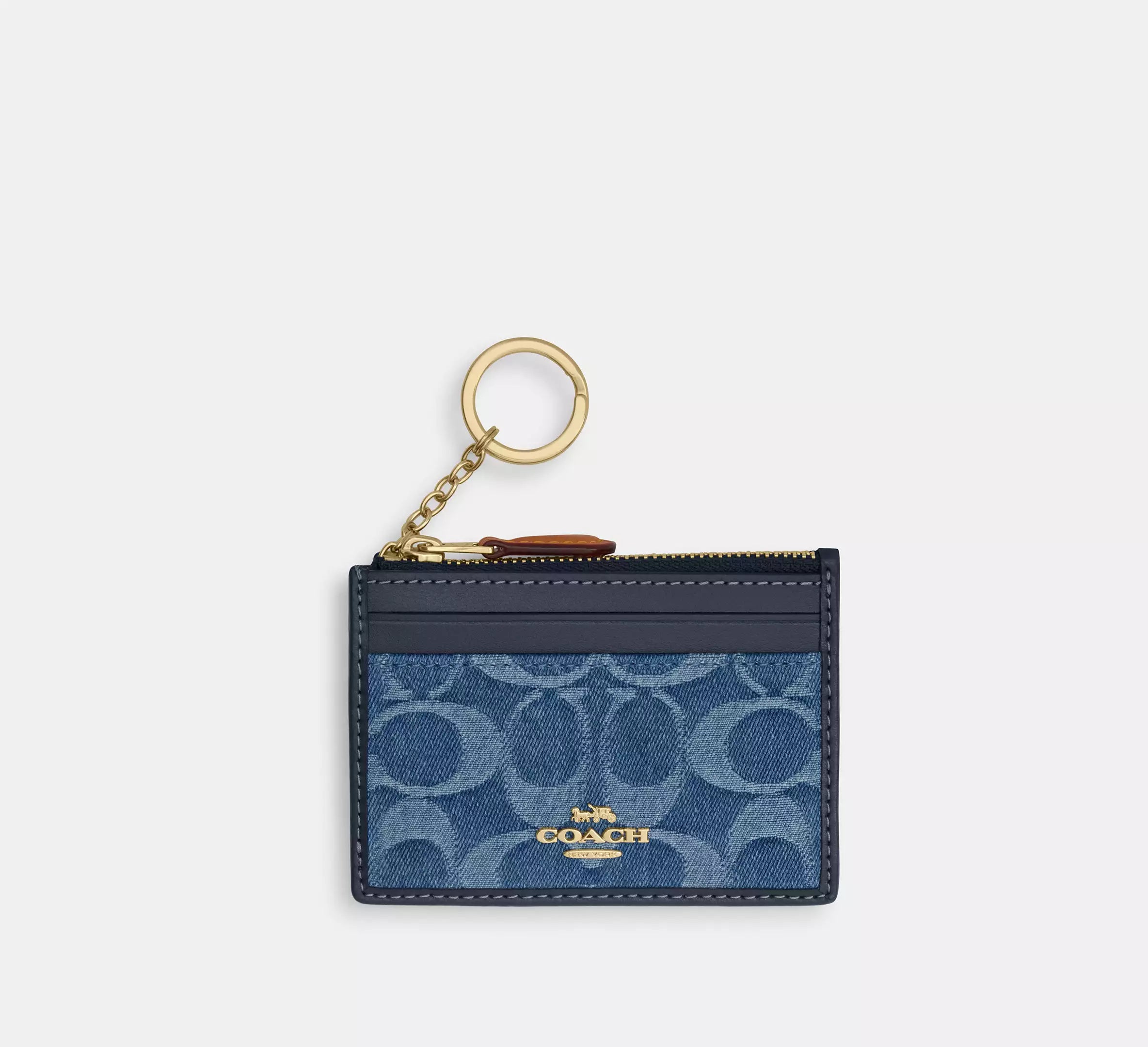 Coach Mini Skinny Id Case In Signature Denim - Gold/Indigo