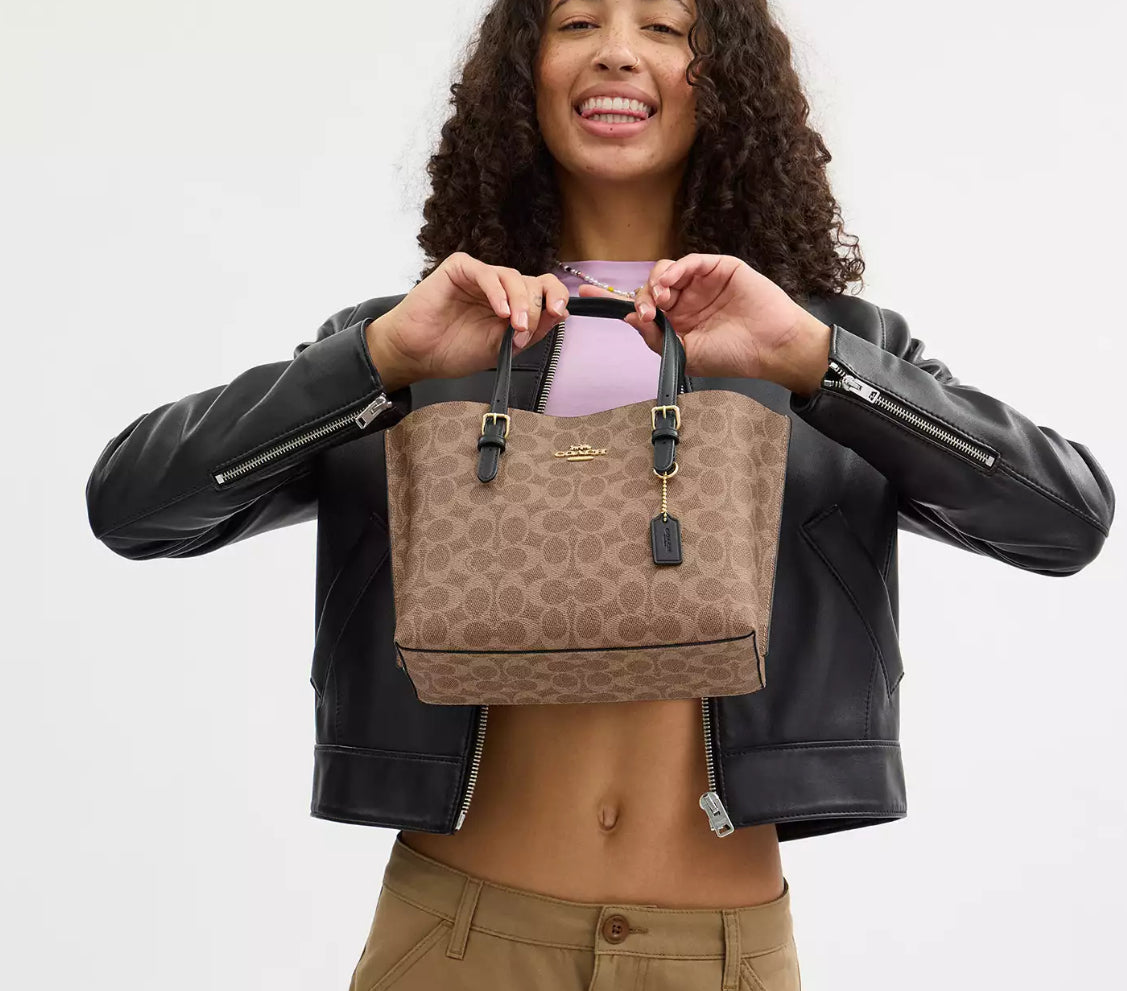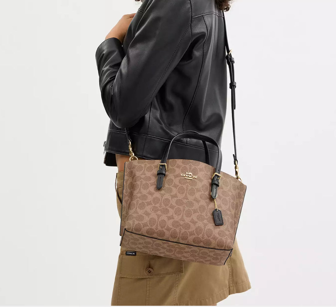 Coach Mollie Tote Bag 25 In Signature - Gold/Tan/Black