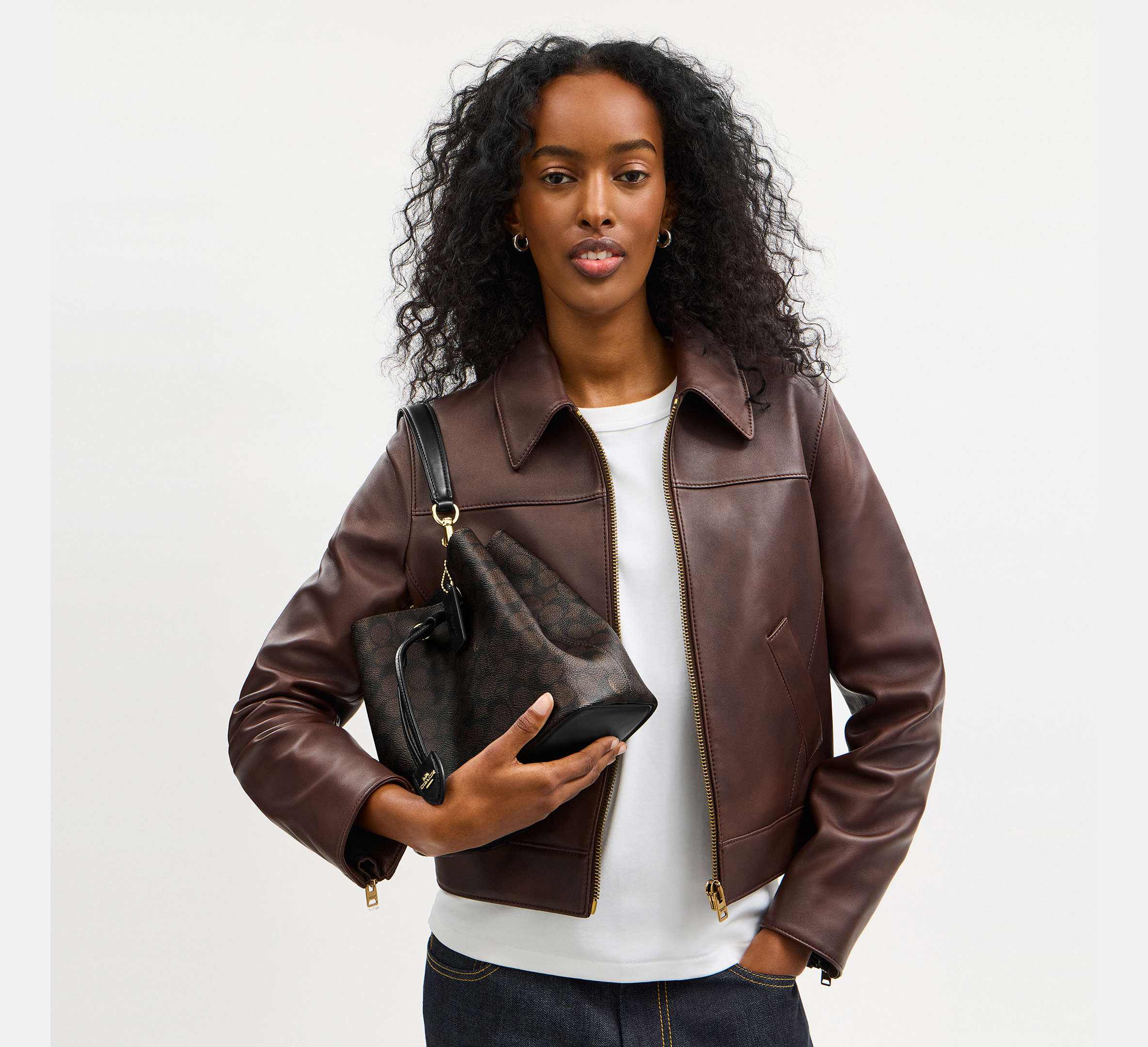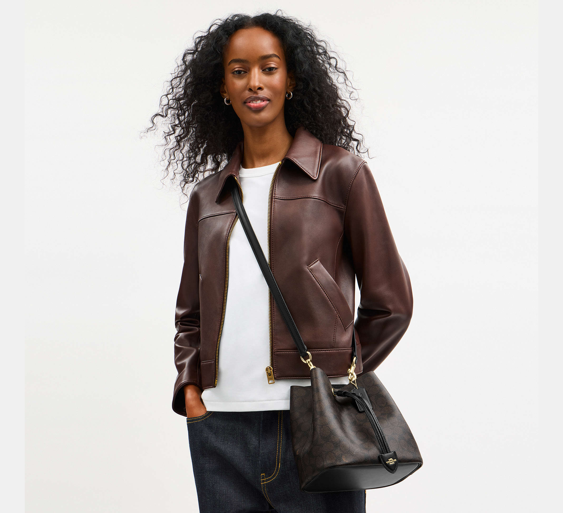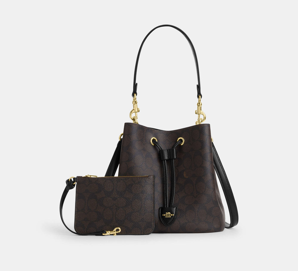 Coach Rowan Bucket Bag In Signature - Gold/Walnut/Black