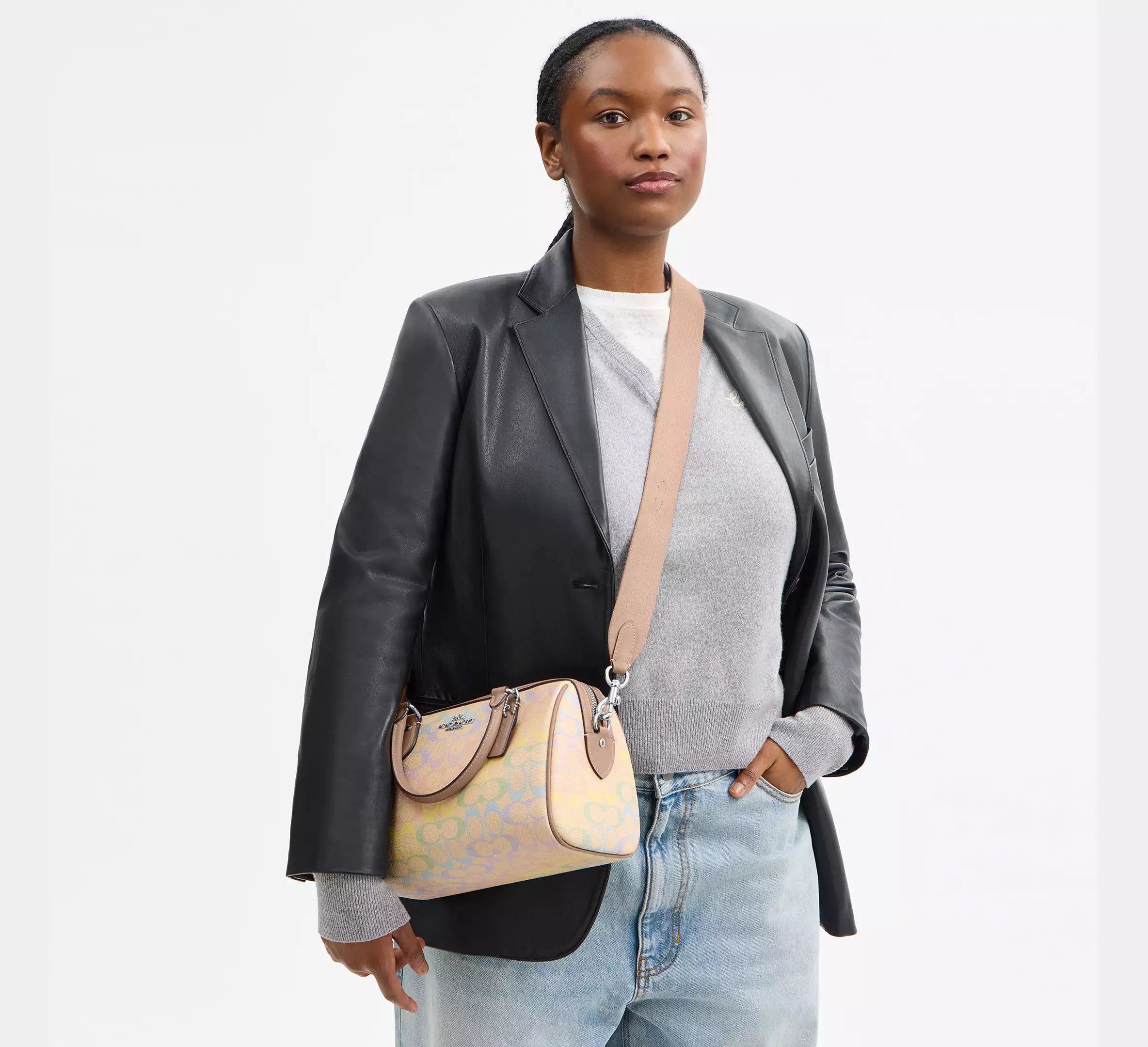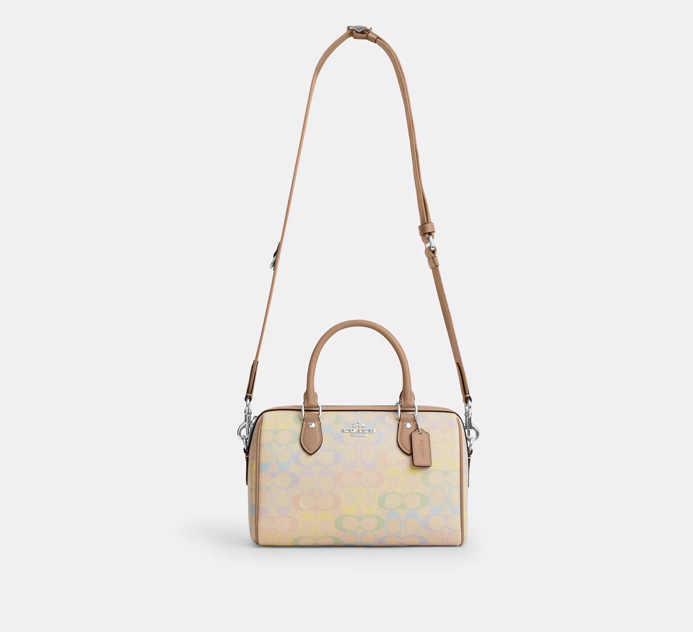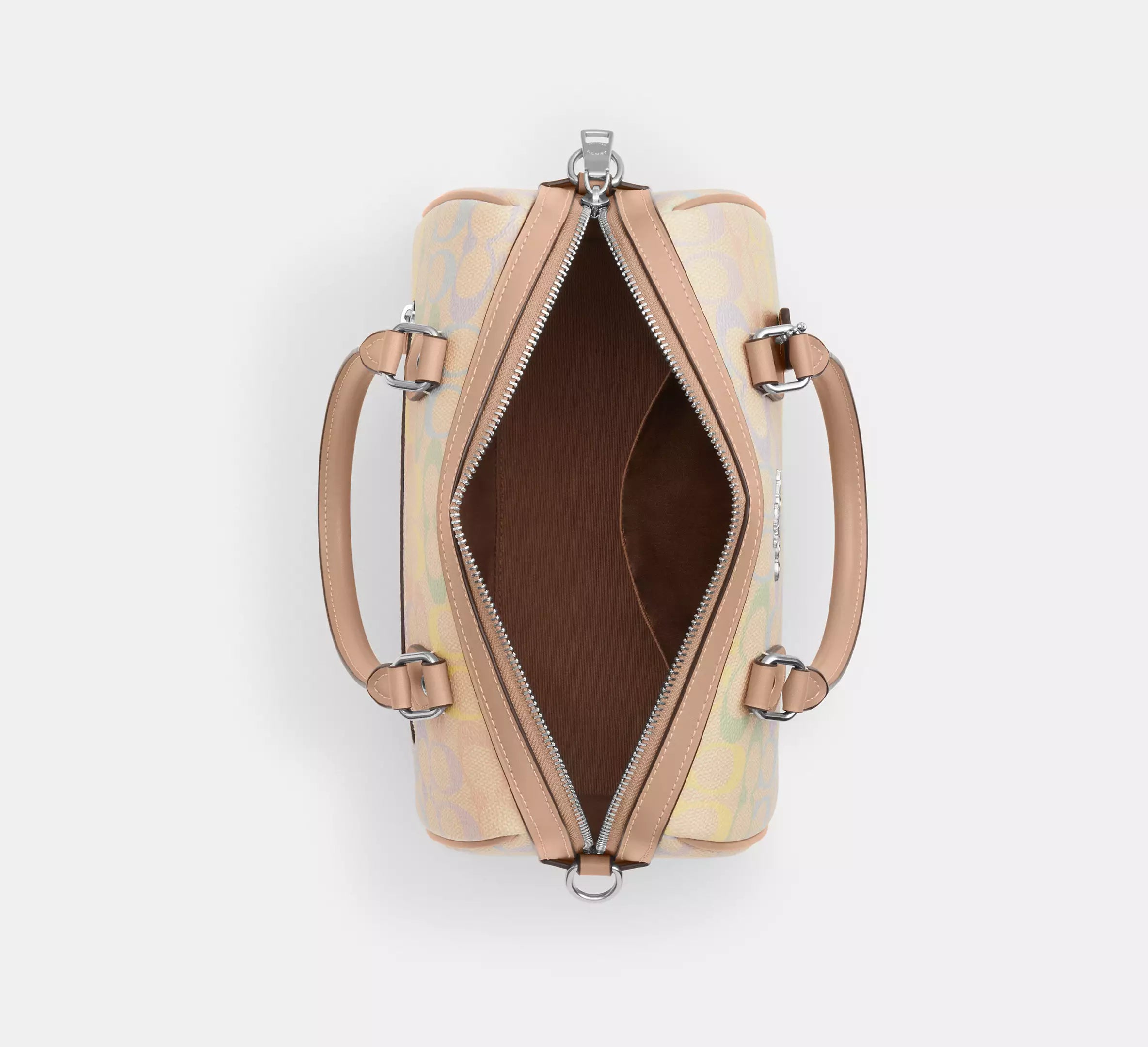 Coach Rowan Satchel Bag In Rainbow Signature - Silver/Sand Multi