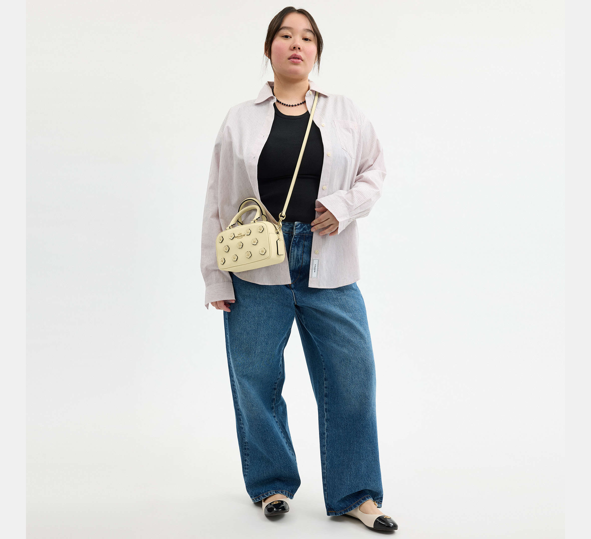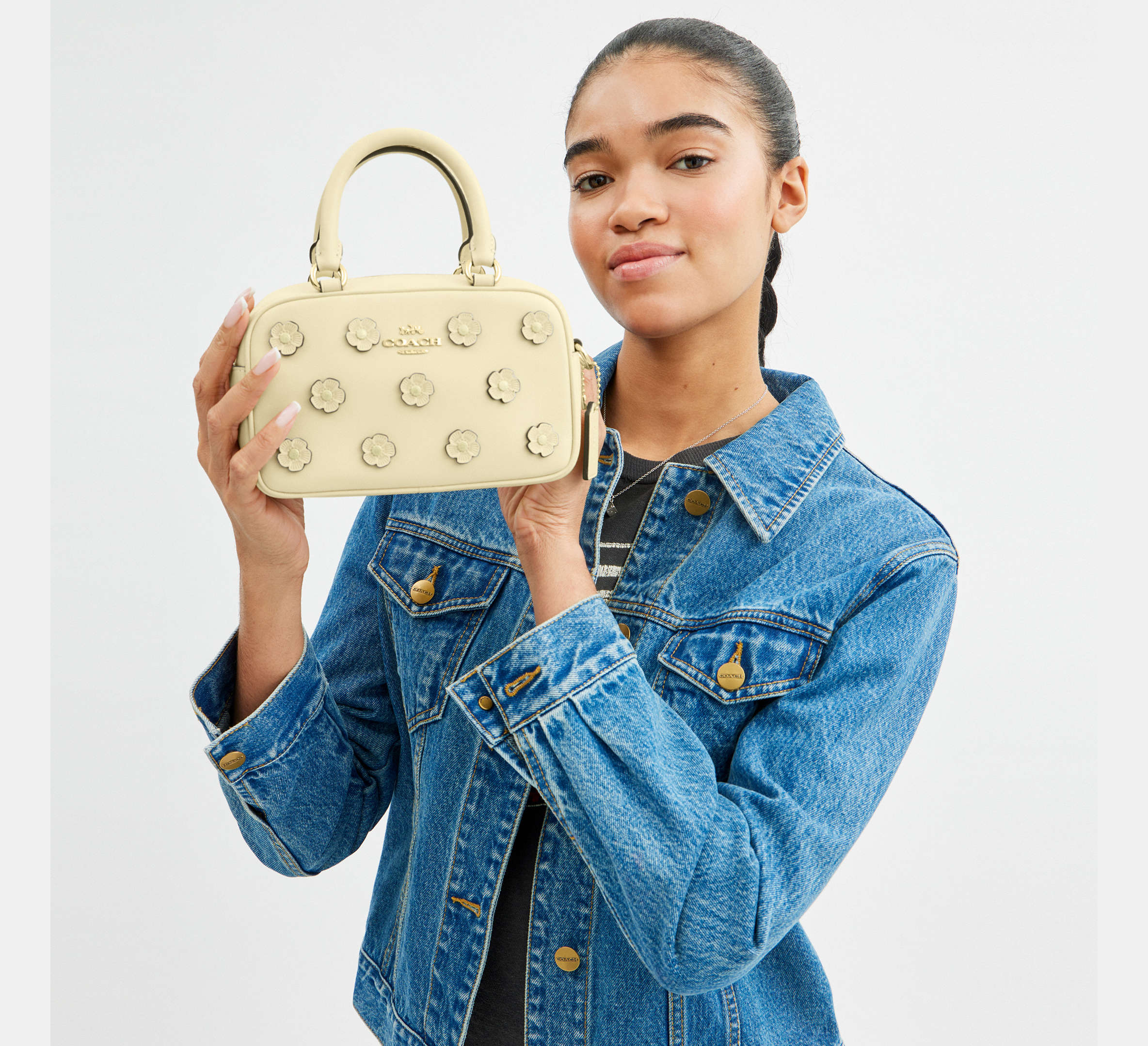 Coach Satchel Crossbody Bag - With Floral Applique - Im/Moonlight