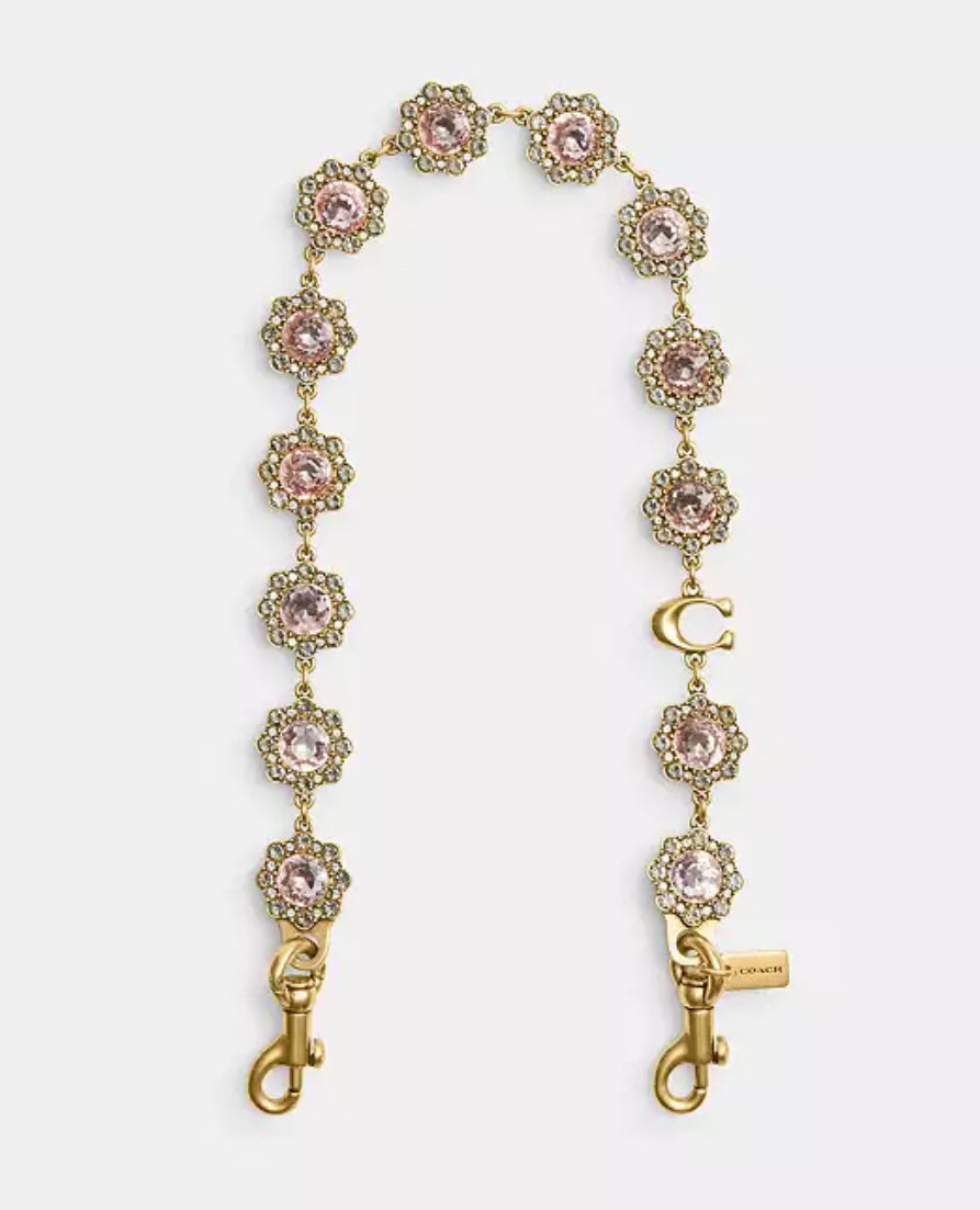 Işıltılı kristallerden oluşan çiçek motifleri ve Signature charm detayıyla zenginleştirilmiş, miras takılardan ilham alan bu kısa zincir askı; çantanıza anında şık ve gösterişli bir görünüm kazandırır. Değiştirilebilir tasarımı sayesinde iki adet kanca klipsi bulunur ve markanın en popüler çanta modellerine kolayca takılabilir.
