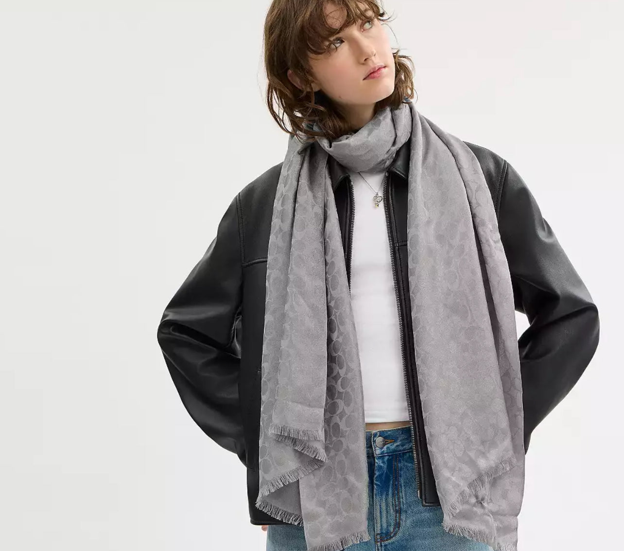 Coach Signature Metallic Oblong Scarf Gümüş Şal - HEMEN TESLİMDE