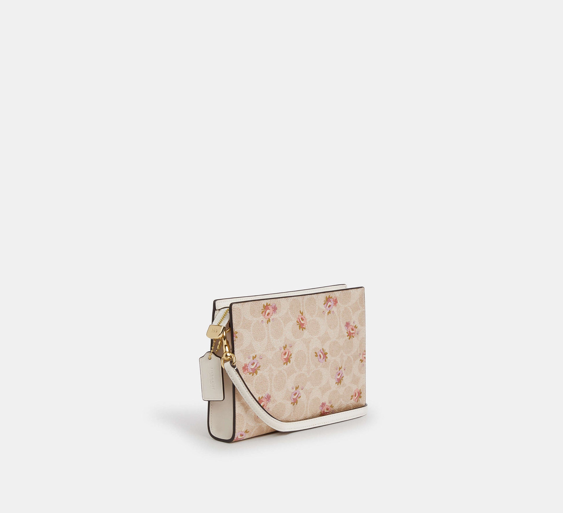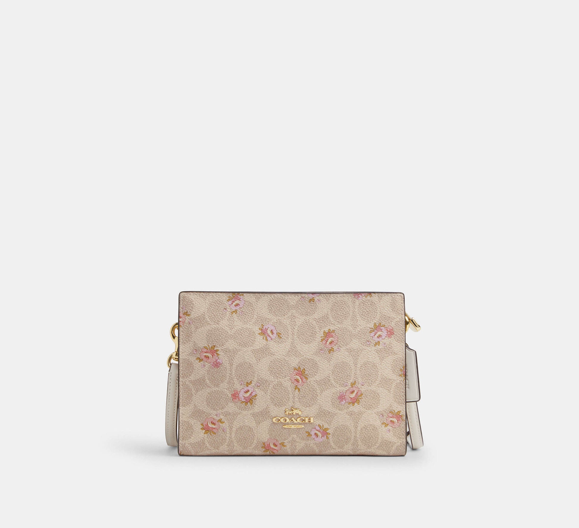 Coach Slim Crossbody Bag In Signature With Floral Print - Gold/Sand Multi