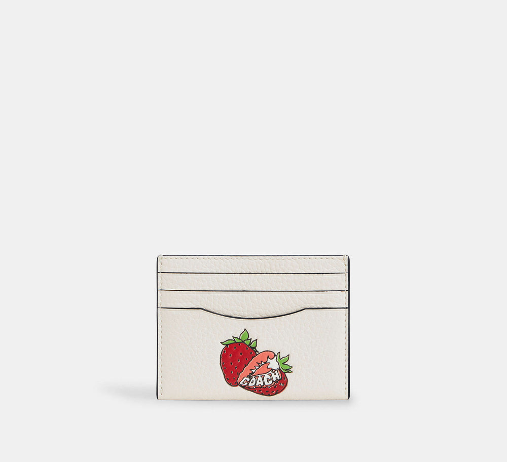 Coach Slim Id Card Case With Strawberry Graphic - Gold/Chalk Multi