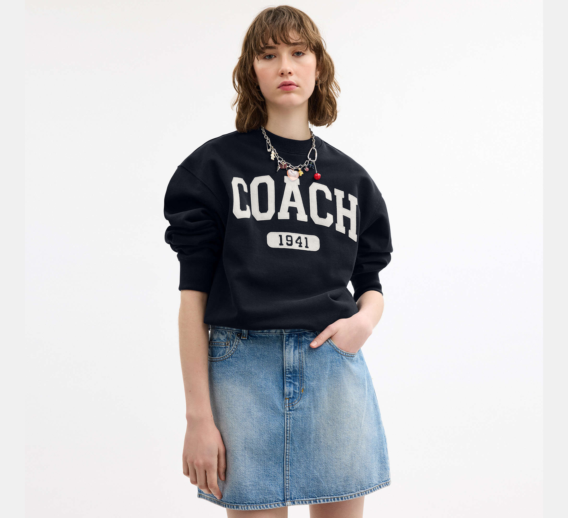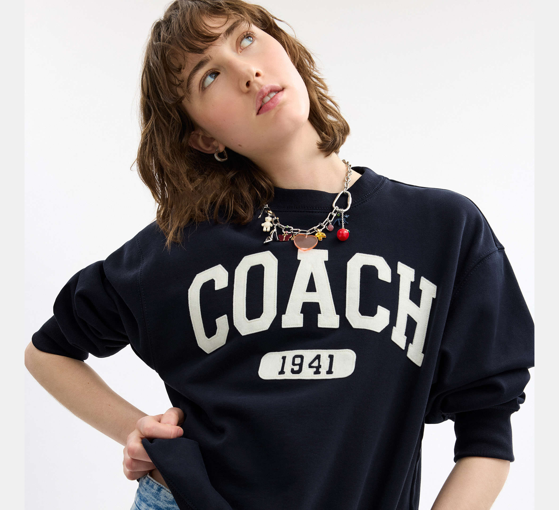Coach Sporty Signature Boyfriend Crewneck Navy Sweatshirt - HEMEN TESLİMDE