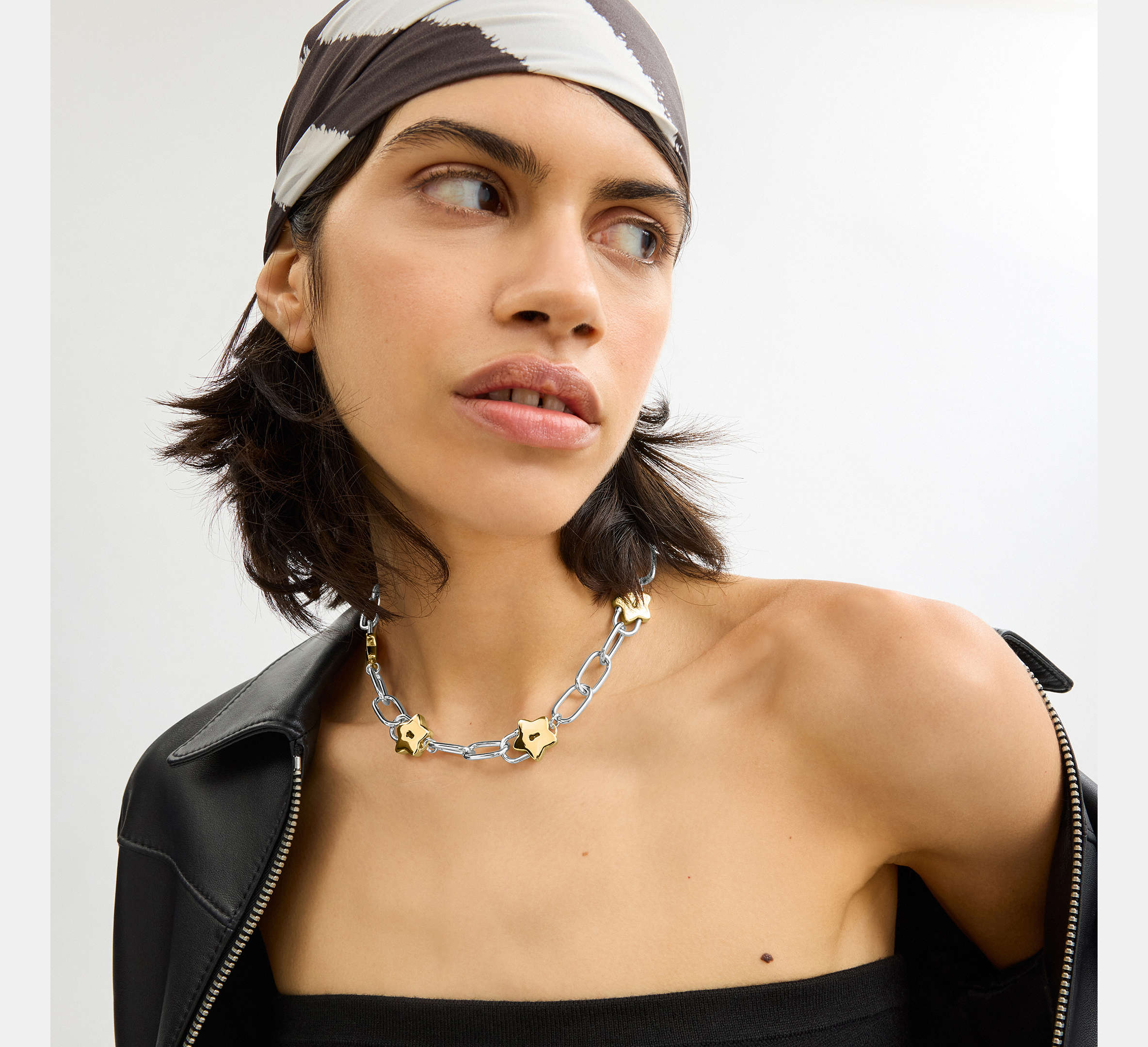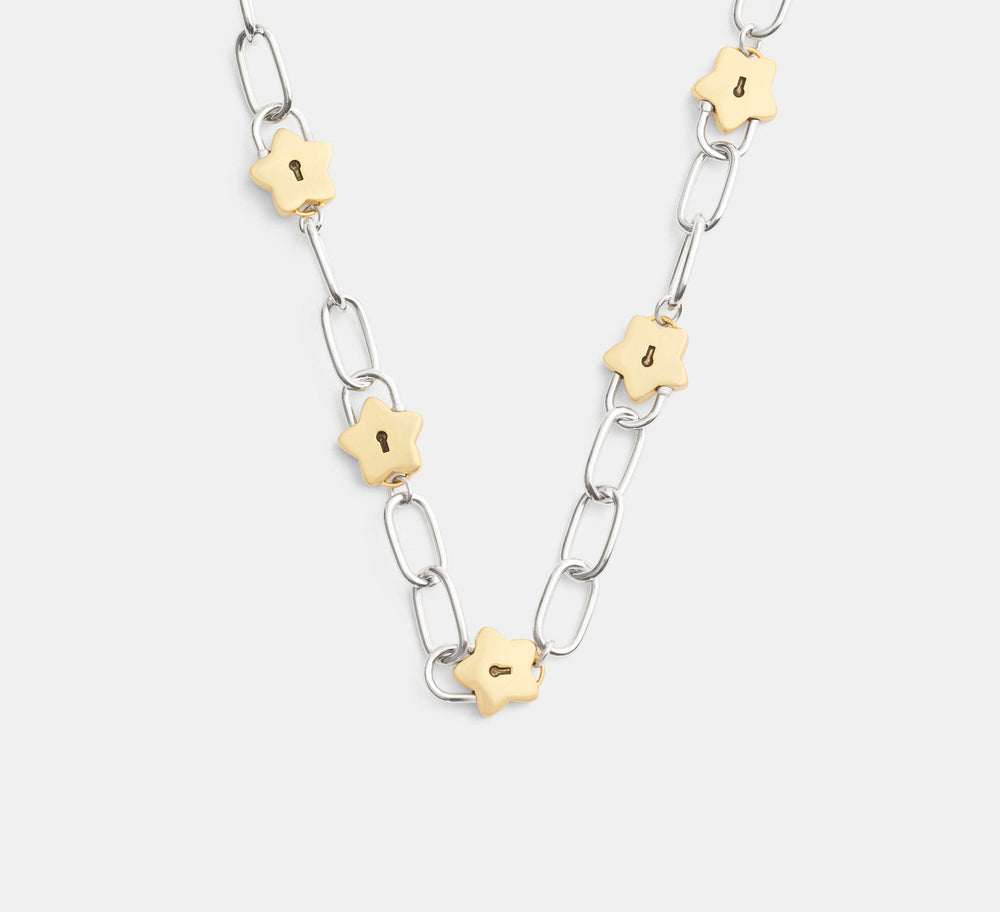 Coach Star Padlock Chain Link Necklace - Gold/Silver