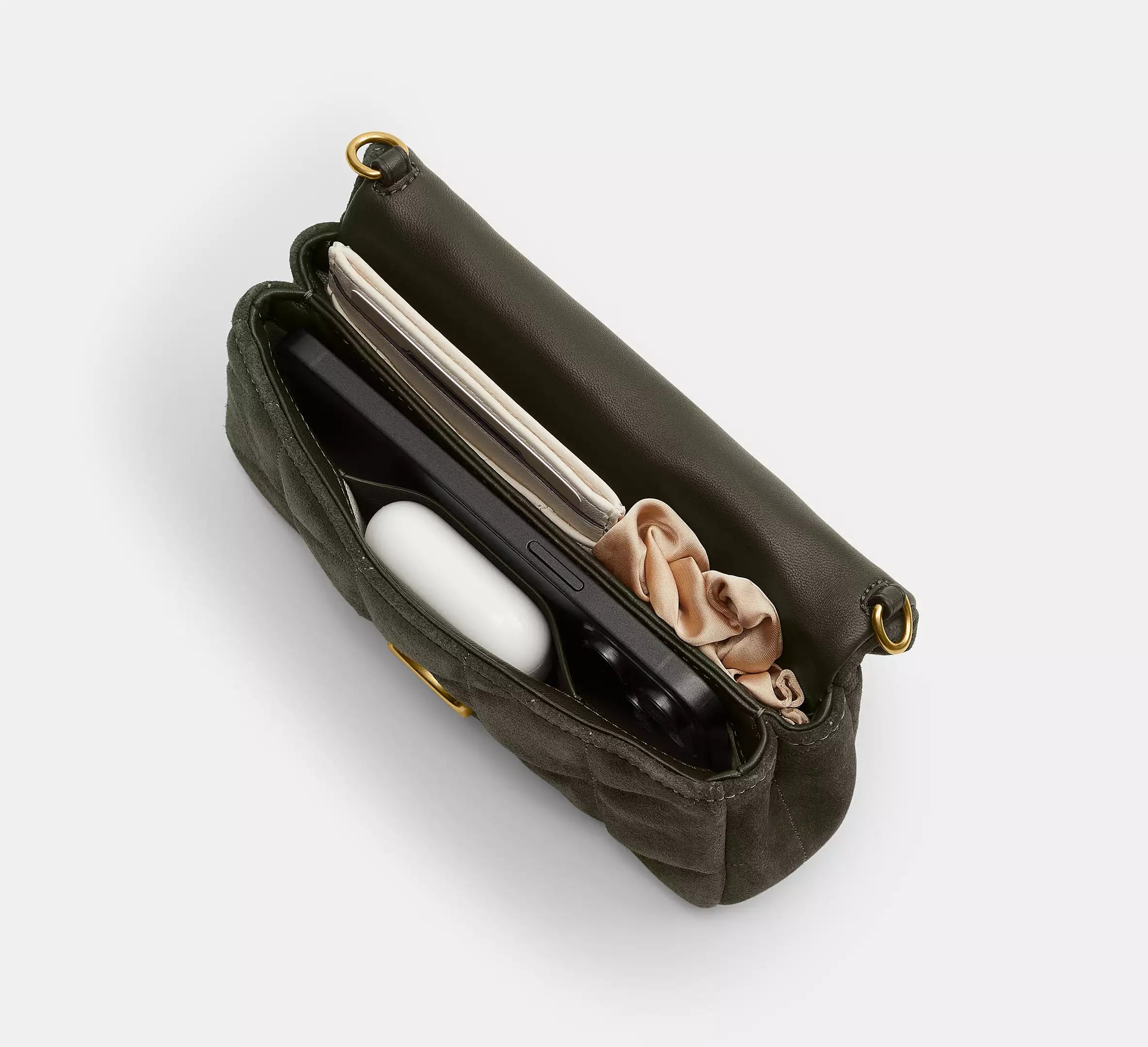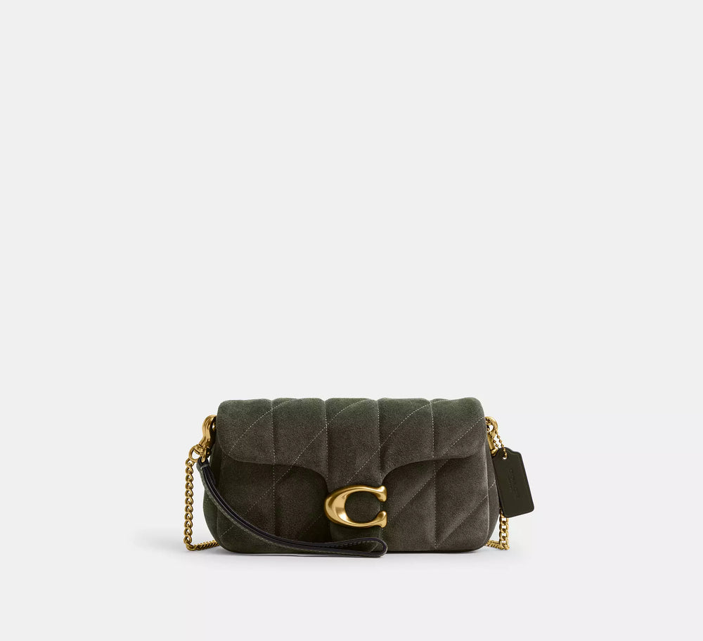 Coach Tabby Chain Crossbody Bag 19 With Quilting - suede/Brass/Olive