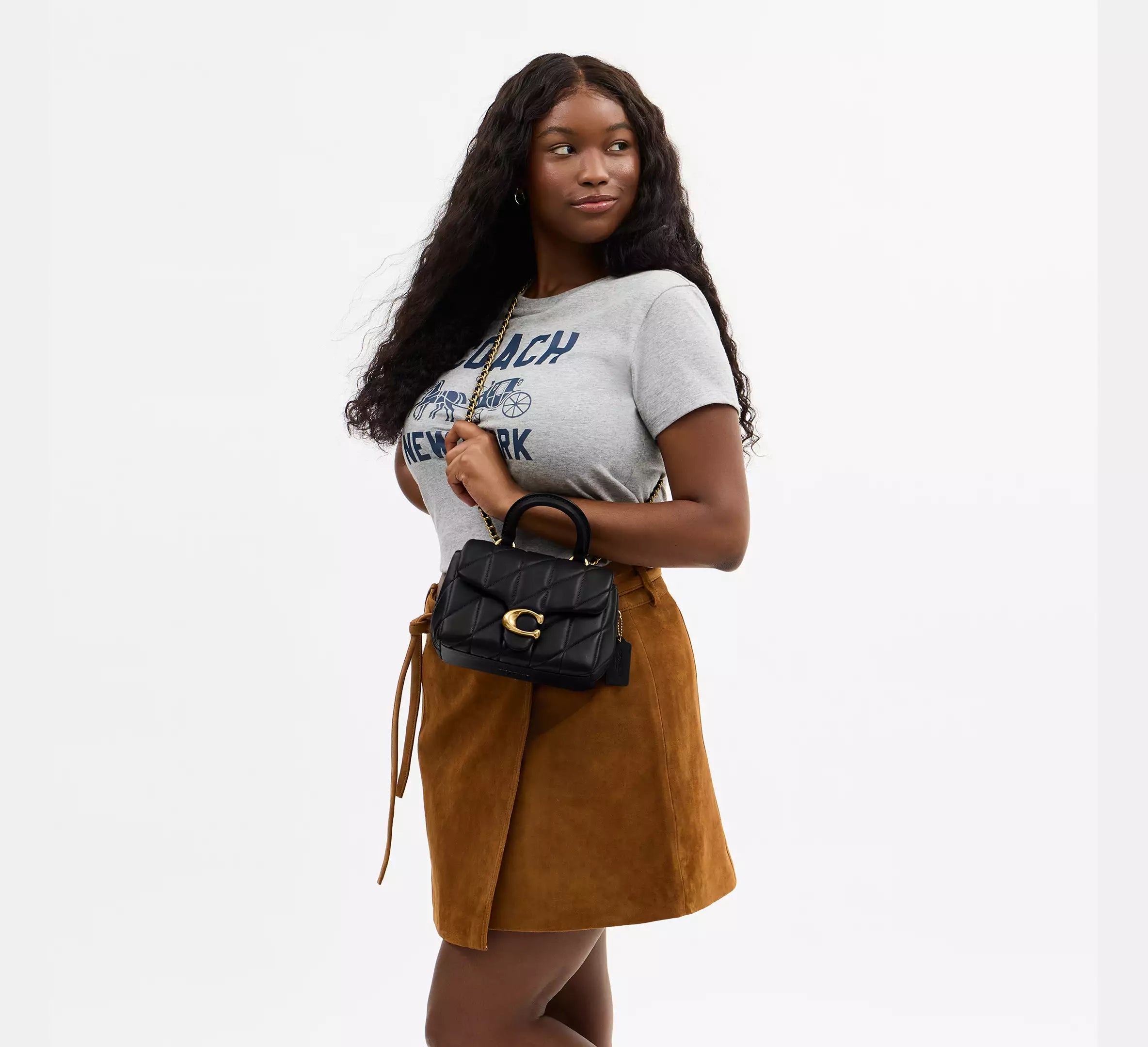 Coach Tabby Top Handle Bag With Quilting - Brass/Black