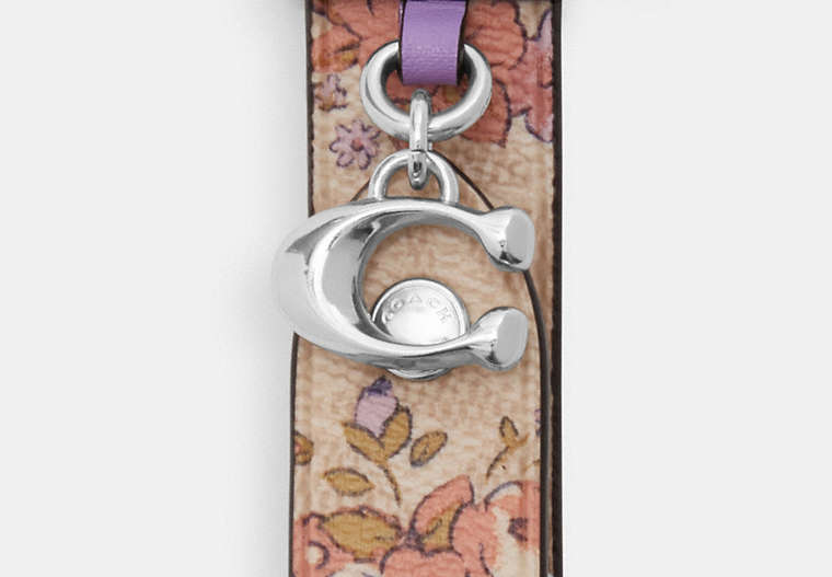Coach Trigger Snap Bag Charm With Floral Print - Silver/Sand Multi