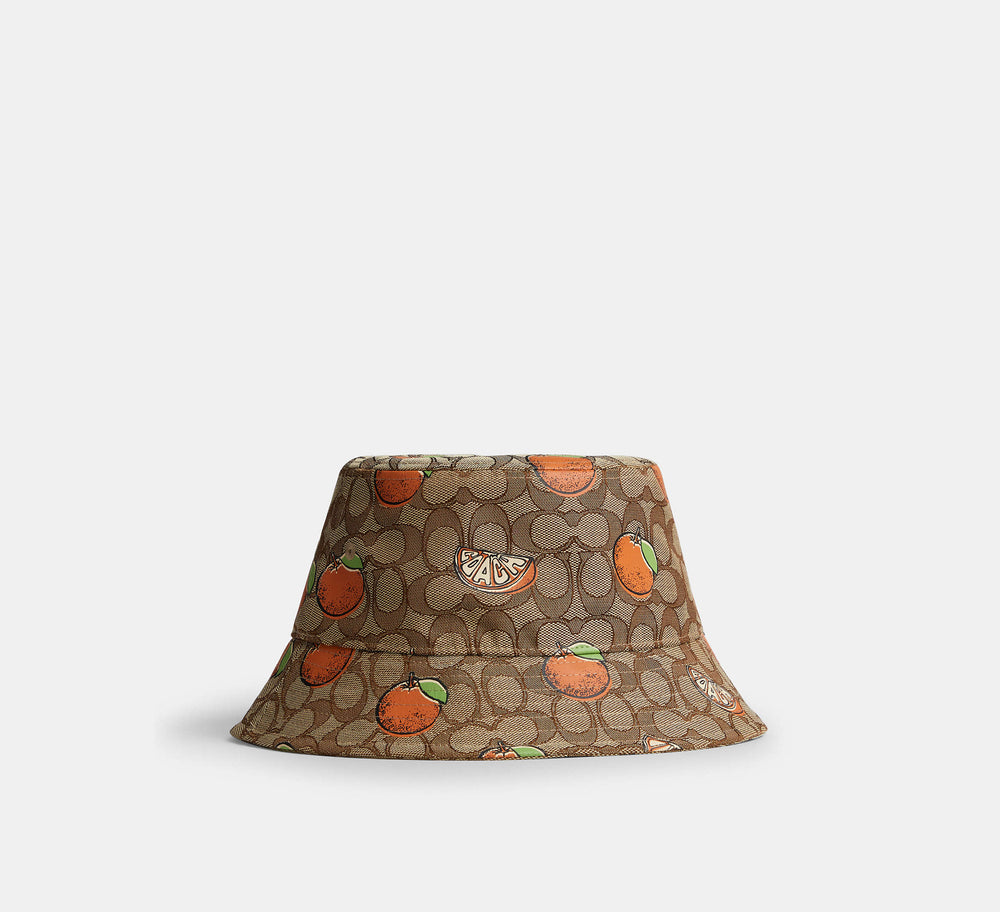 Coach Women's Signature Retro Orange Print Bucket Hat - Tan/Orange
