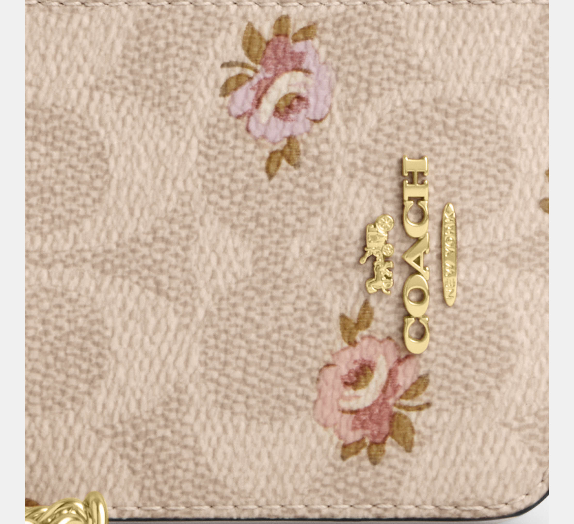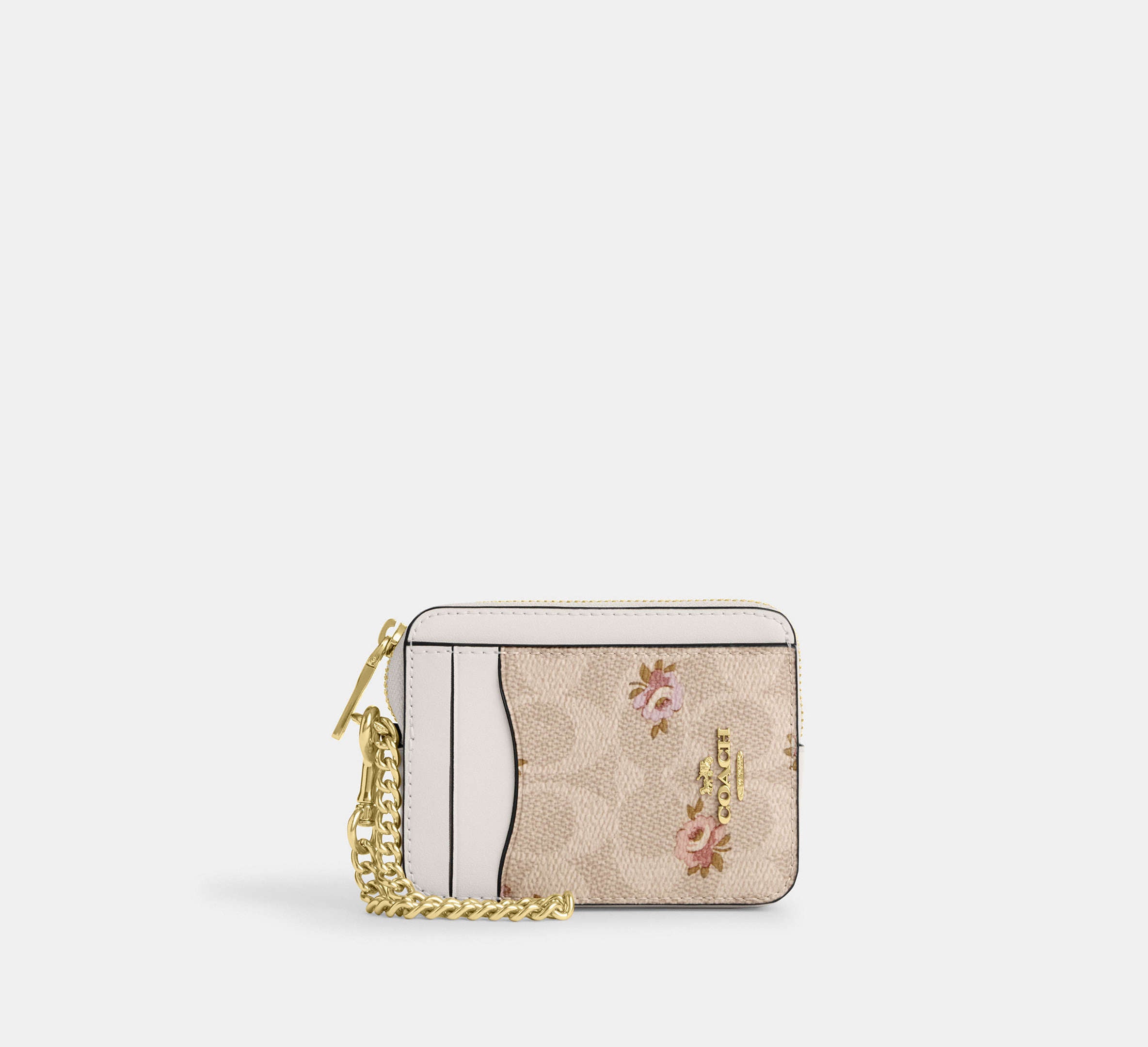 Coach Zip Card Case In Signature Canvas With Floral Print - Gold/Sand Multi
