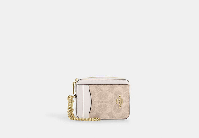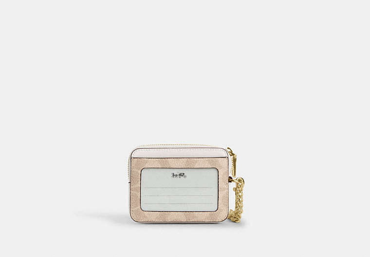 Coach Zip Card Case In Signature - Gold/Sand/Chalk