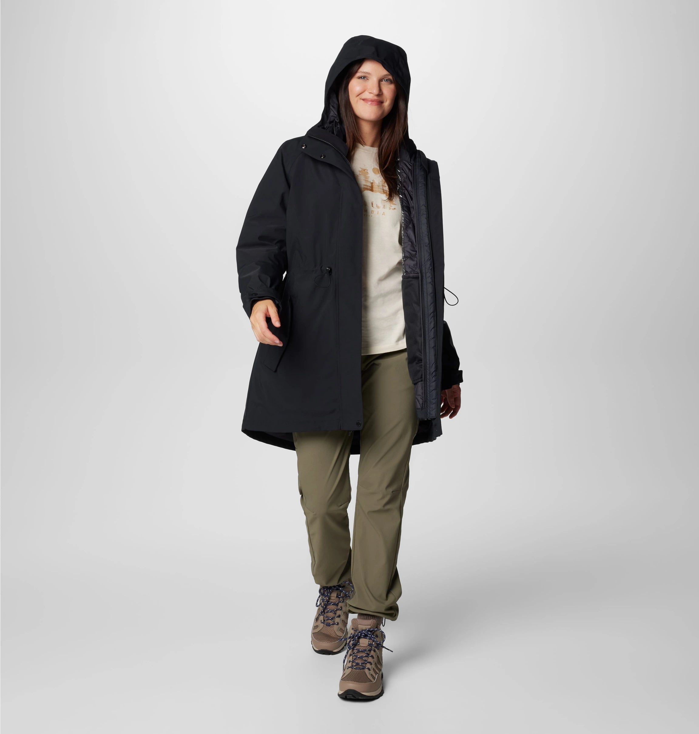 Ayarlanabilir kapüşon ve manşetler, rüzgâr ve yağmuru dışarıda tutar.