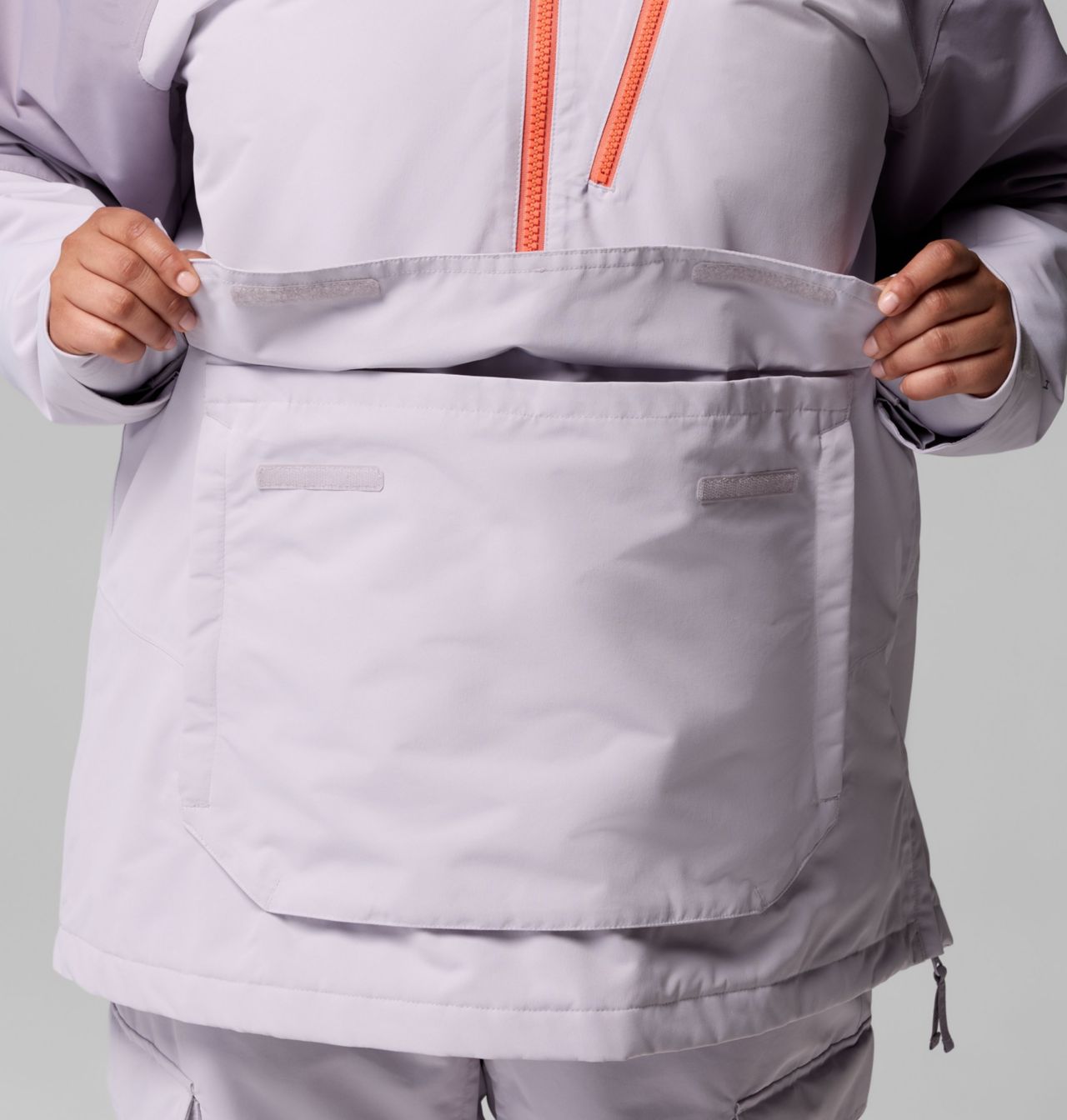 Geriye sabitlenebilir toz eteği, rüzgarı ve karı dışarıda tutar.