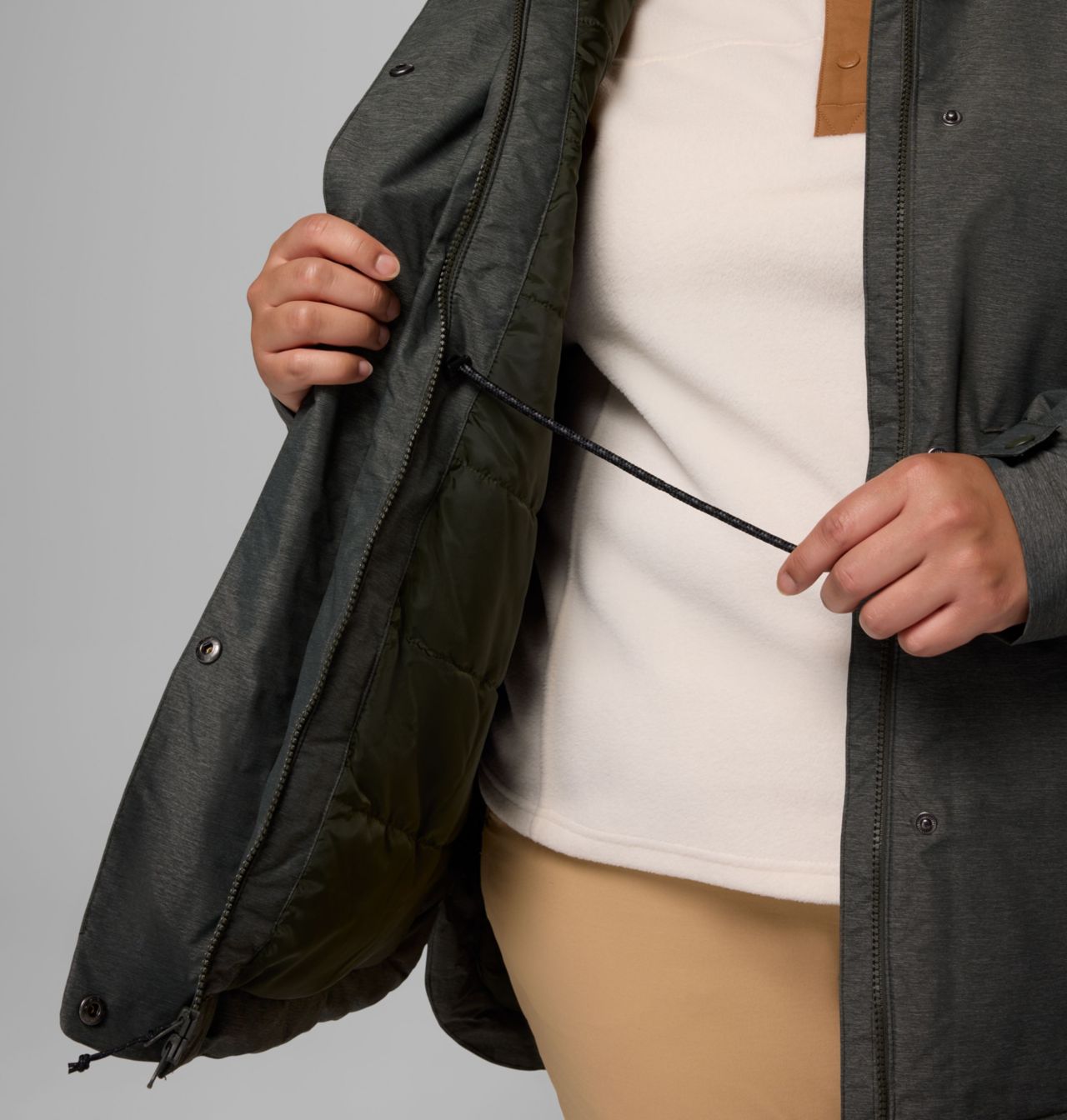 Ayarlanabilir ipli bel kısmı, çok yönlü ve rahat bir uyum sağlar.