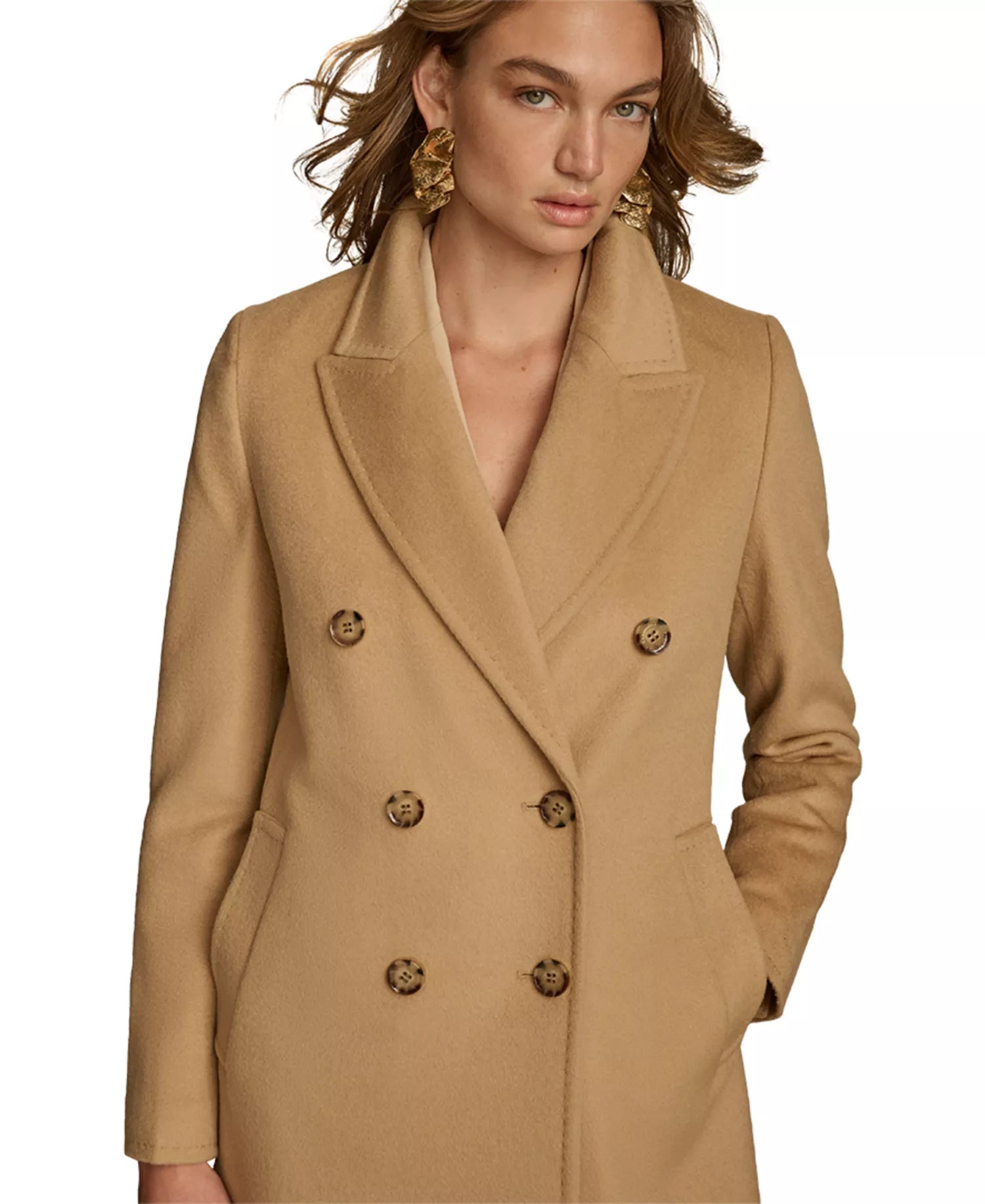 Donna Karan New York Women's Double-Breasted Reefer Coat - Camel