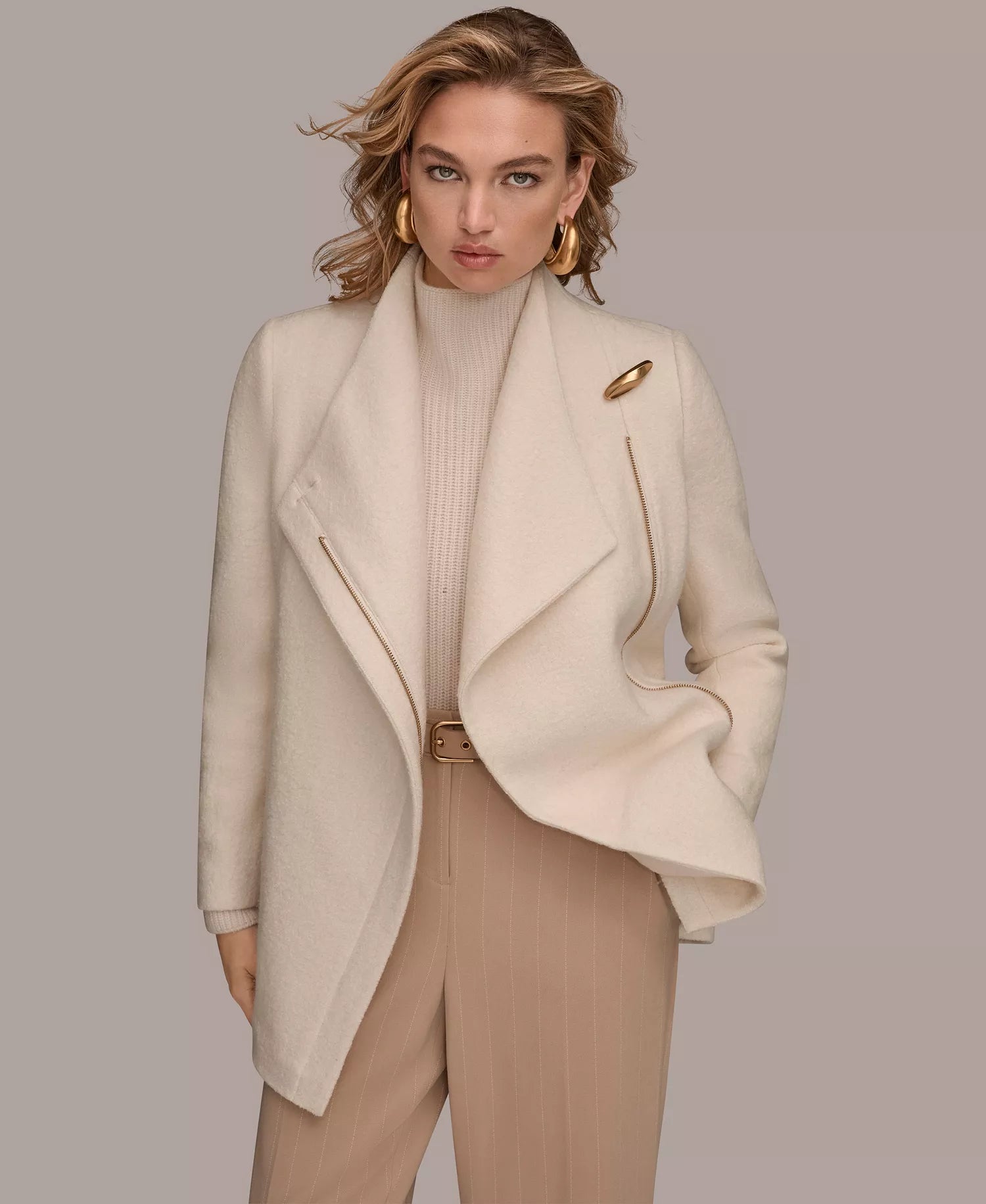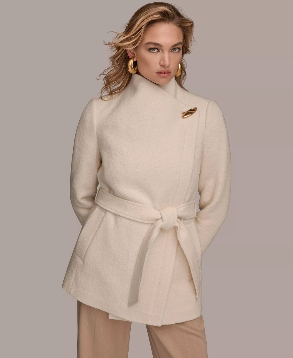 Donna Karan New York Women's Wing Collar Belted Coat - Ivory