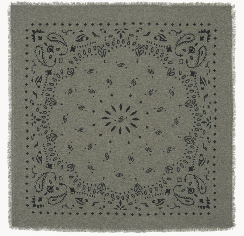 Kujten- Bandana Hachiko Large Printed Cashmere Bandana-Marl khaki
